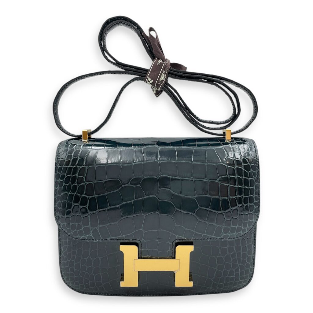The iconic Kate bag in shiny crocodile-embossed leather, featuring the Cassandre logo and chain tassel.