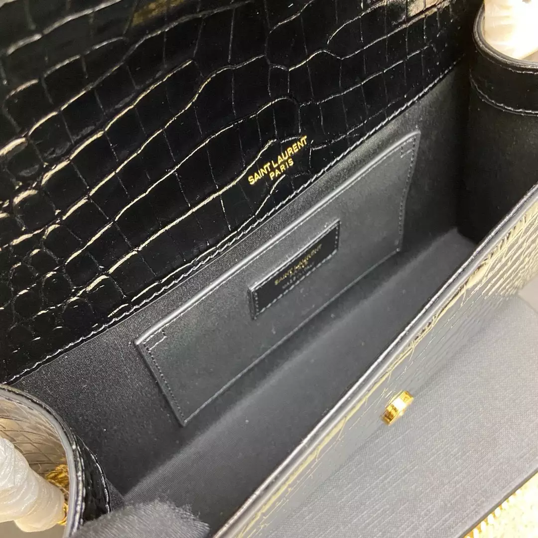 #SaintLaurent #KateBag #CrocodileEmbossed #ShinyLeather #CassandreLogo #ChainTassel #DesignerHandbag #LuxuryFashion #FashionAccessories #IconicBag