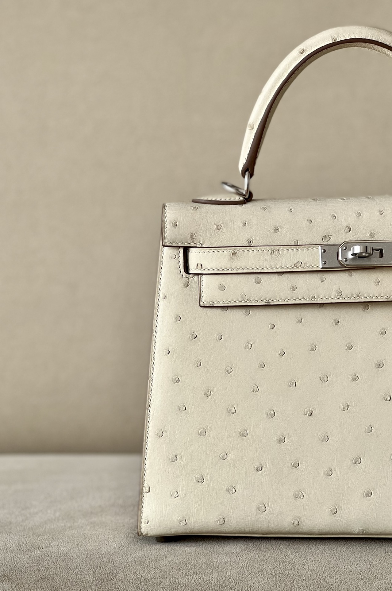 Be the first to review “Kelly 25 Ostrich Parchemin (3C) Palladium Hardware”