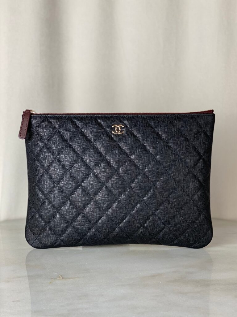 Includes lock, two keys, clochette, clochette dust bag, ribbon, care booklet, raincoat, felt protector, dust bag, and box .