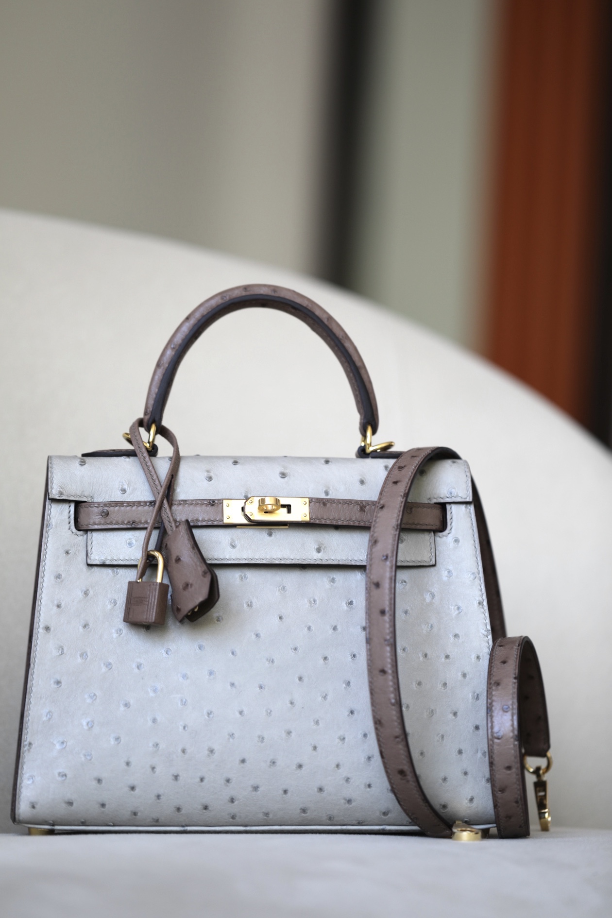 Be the first to review “Kelly HSS 25 Ostrich Etoupe(18) and Gris Perle(80) Gold Hardware”