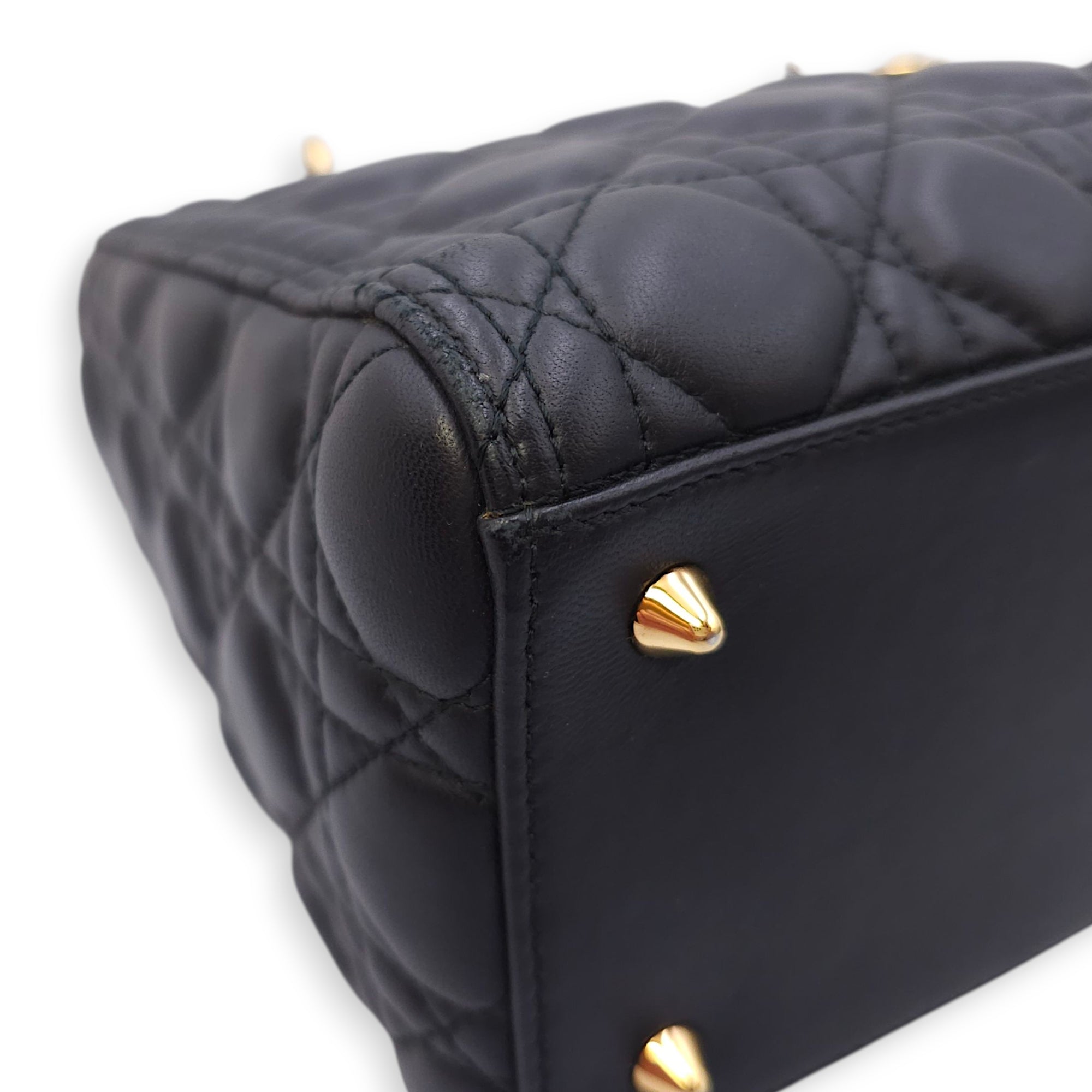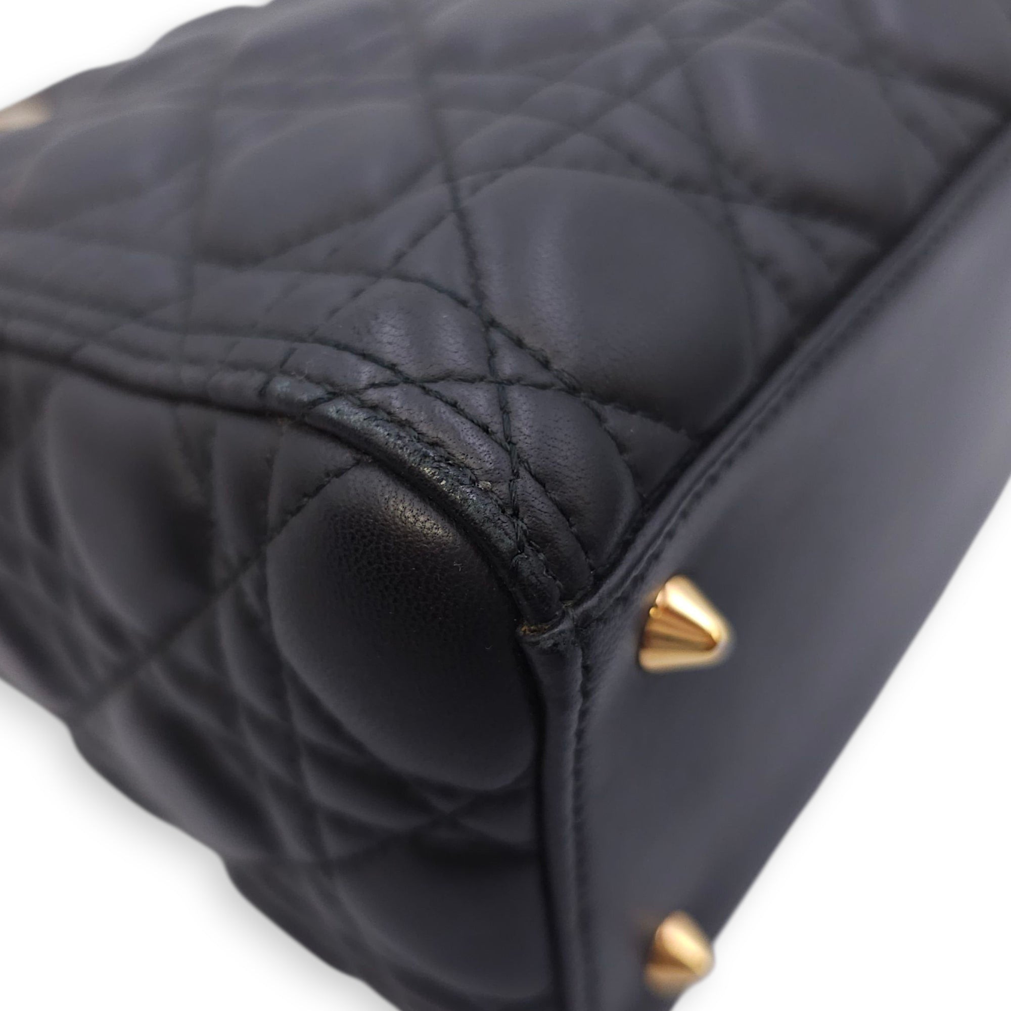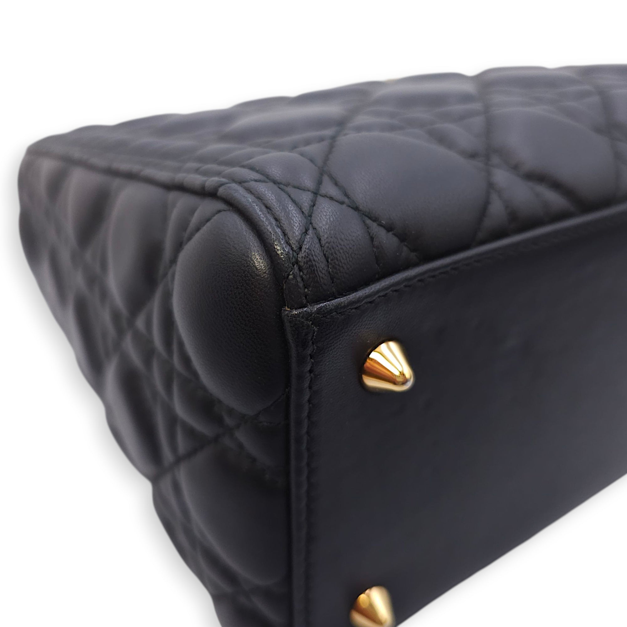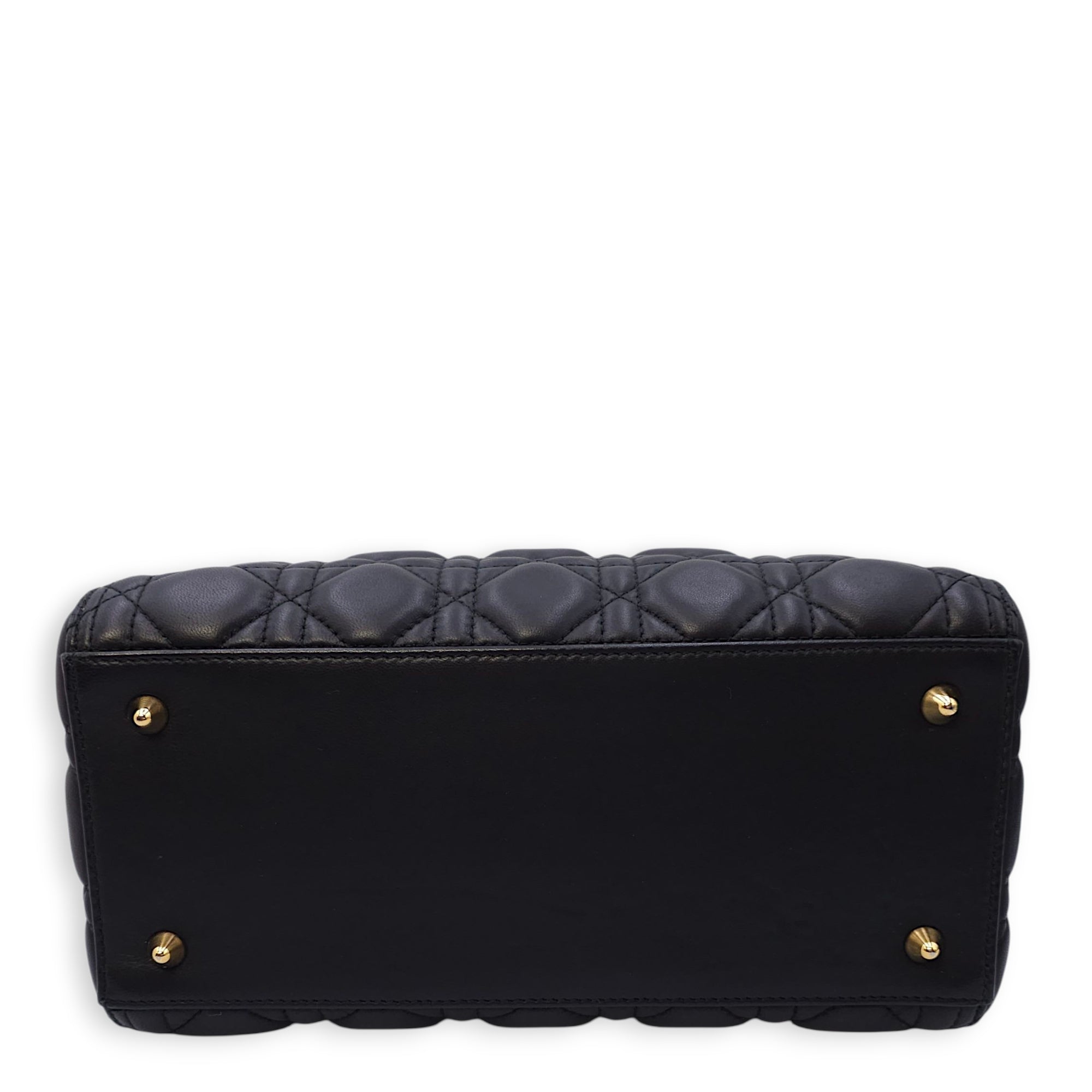 Lady Dior Medium Black Top Handle Bag in Lambskin, Gold hardware
