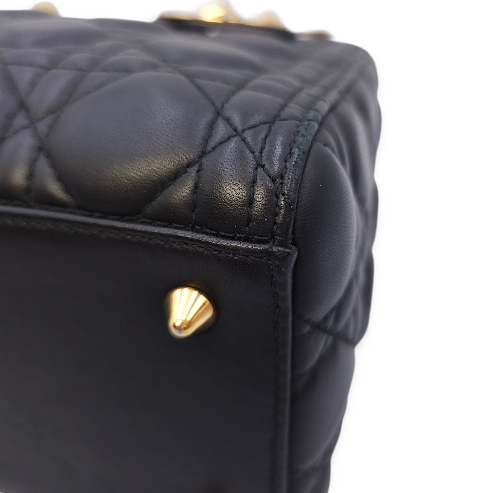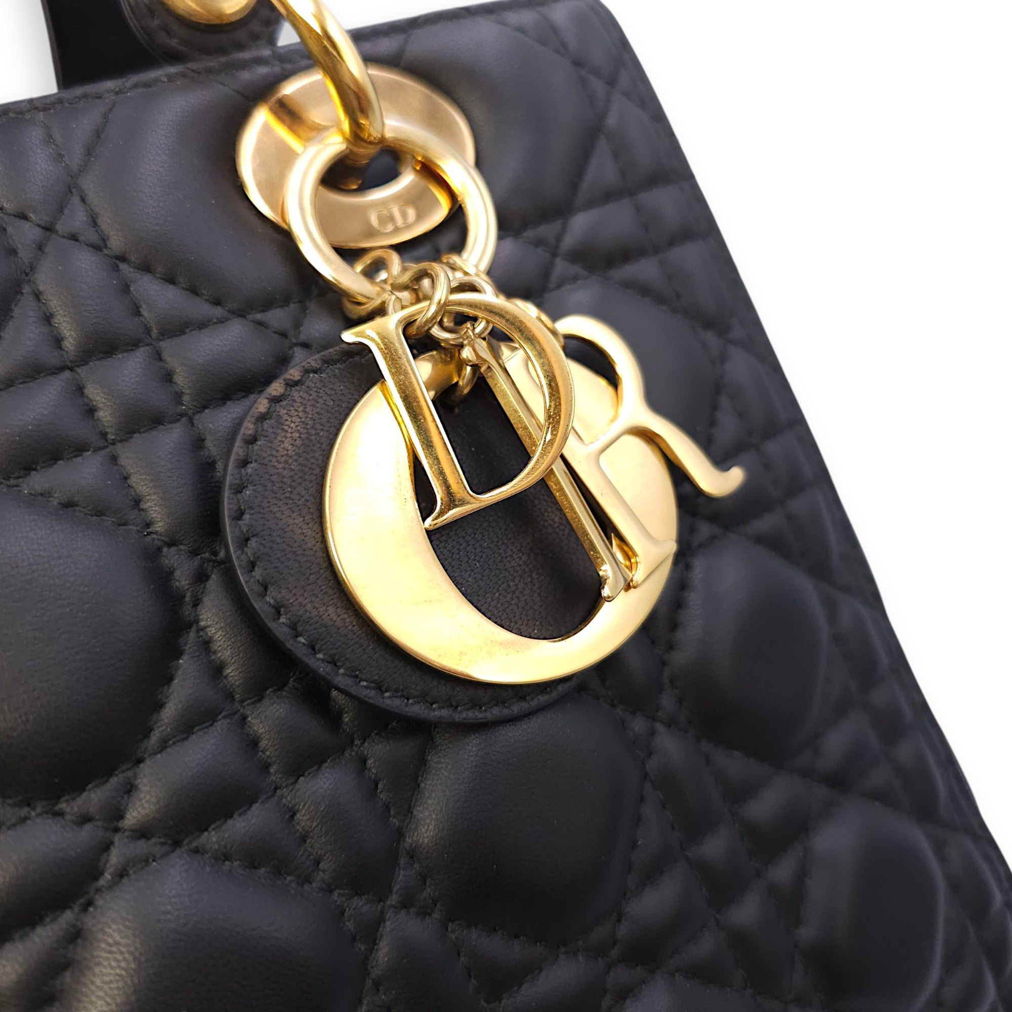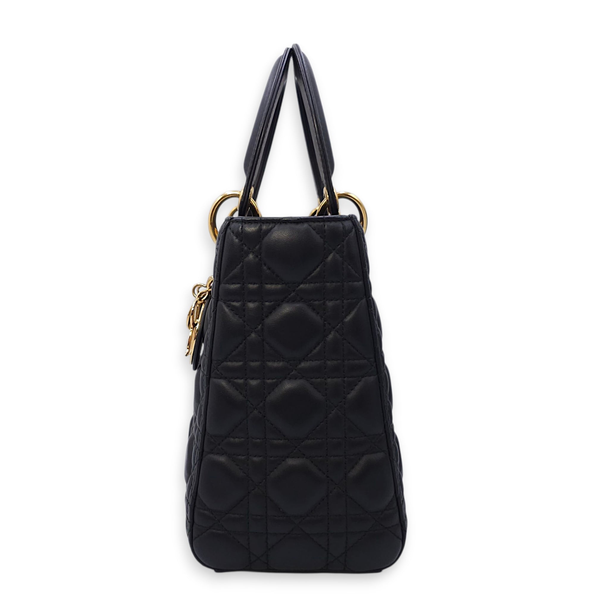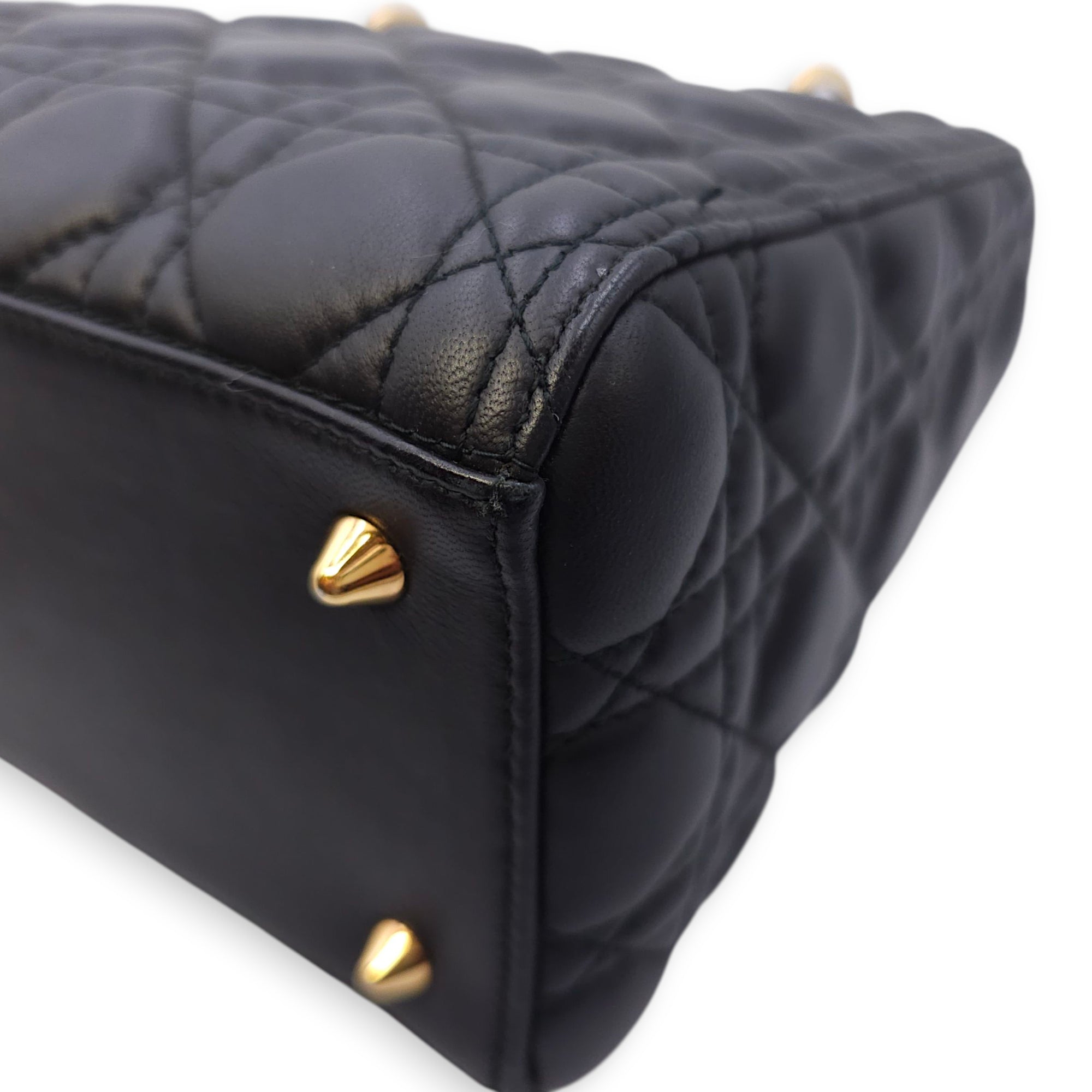 Lady Dior Medium Black Top Handle Bag in Lambskin, Gold hardware