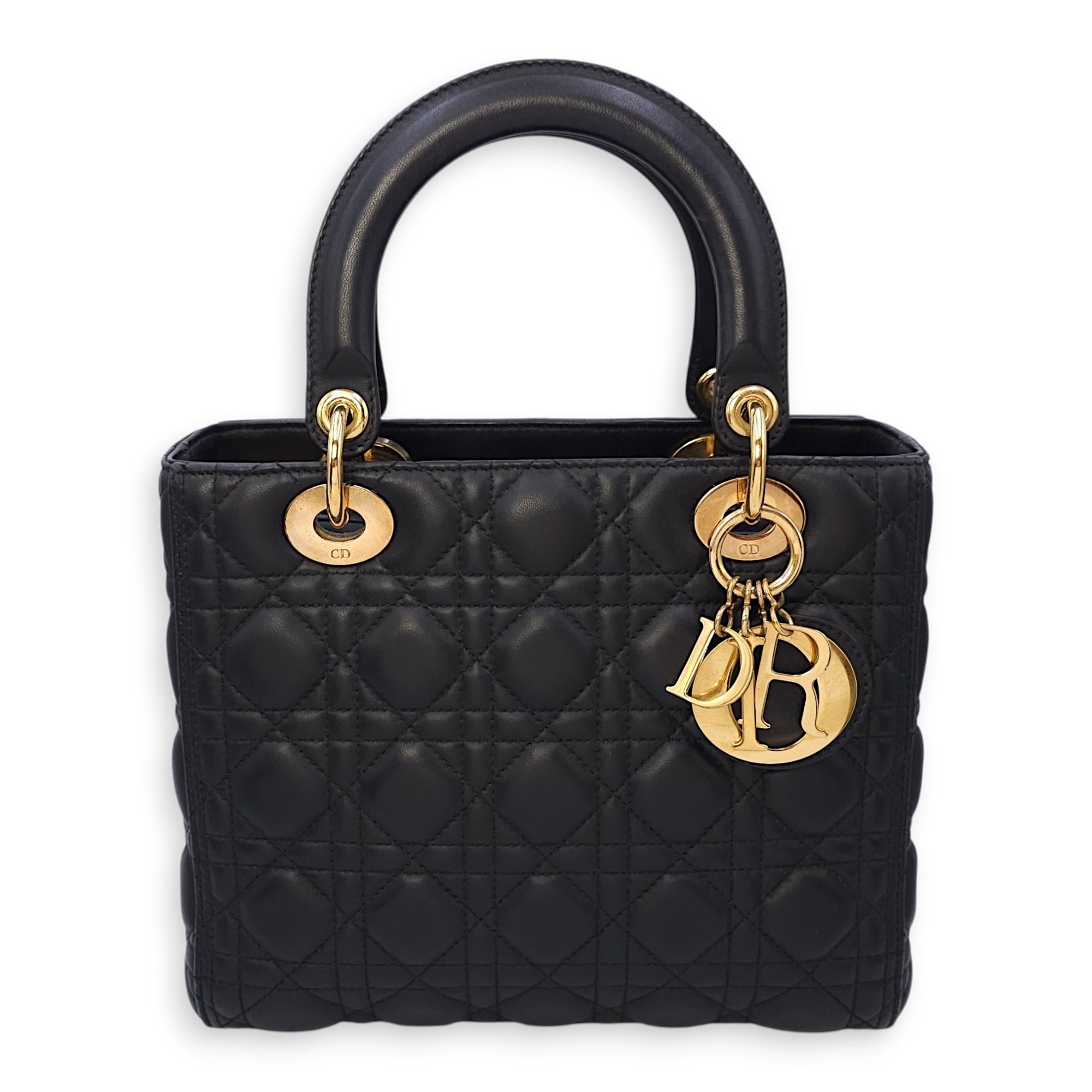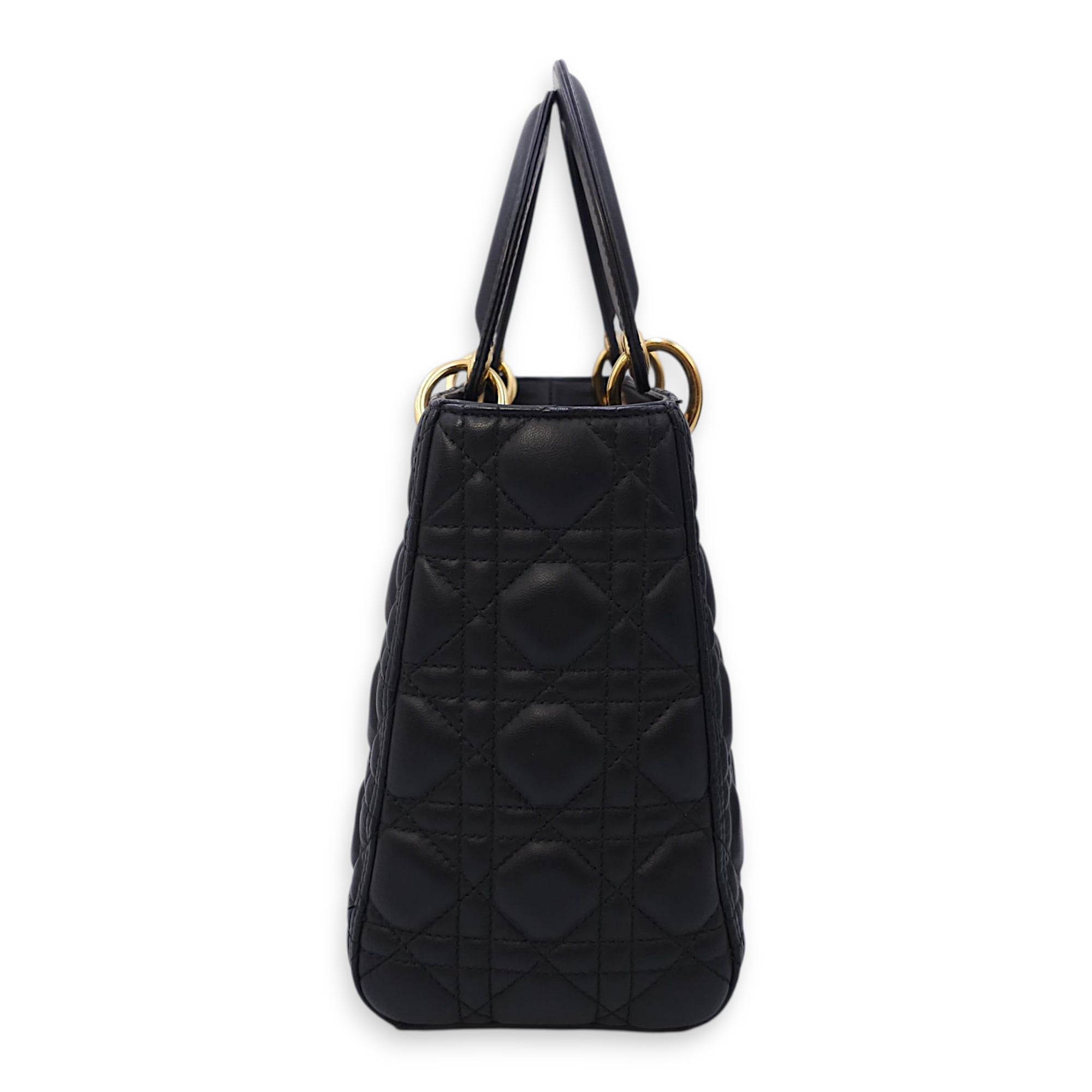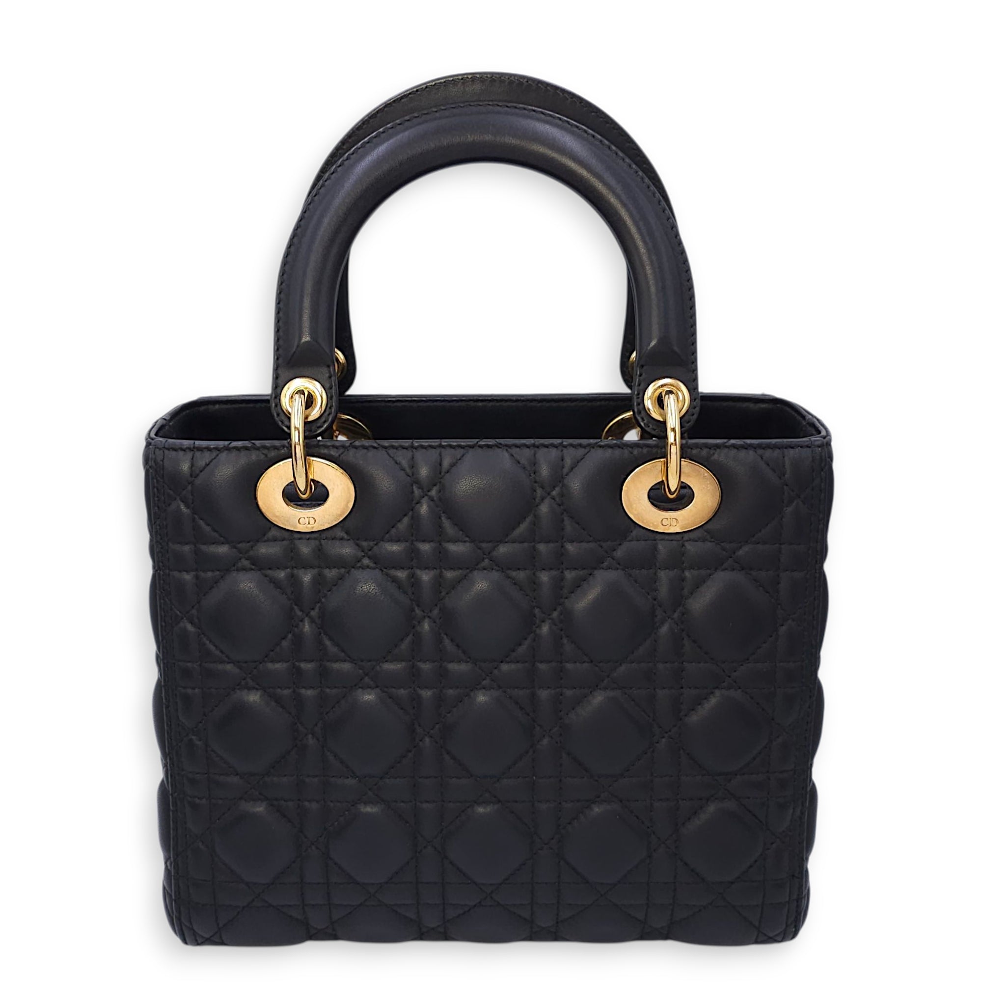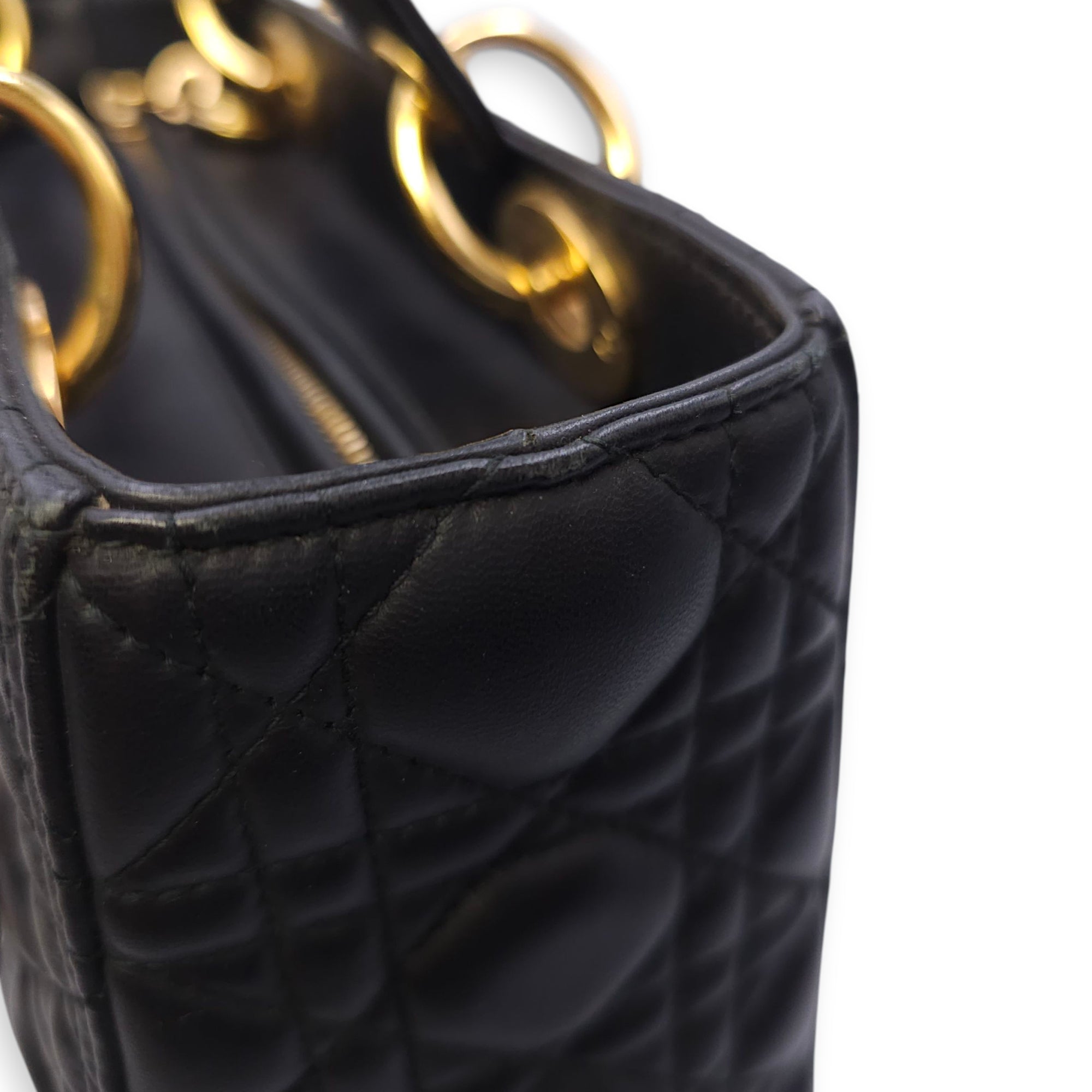 Lady Dior Medium Black Top Handle Bag in Lambskin, Gold hardware