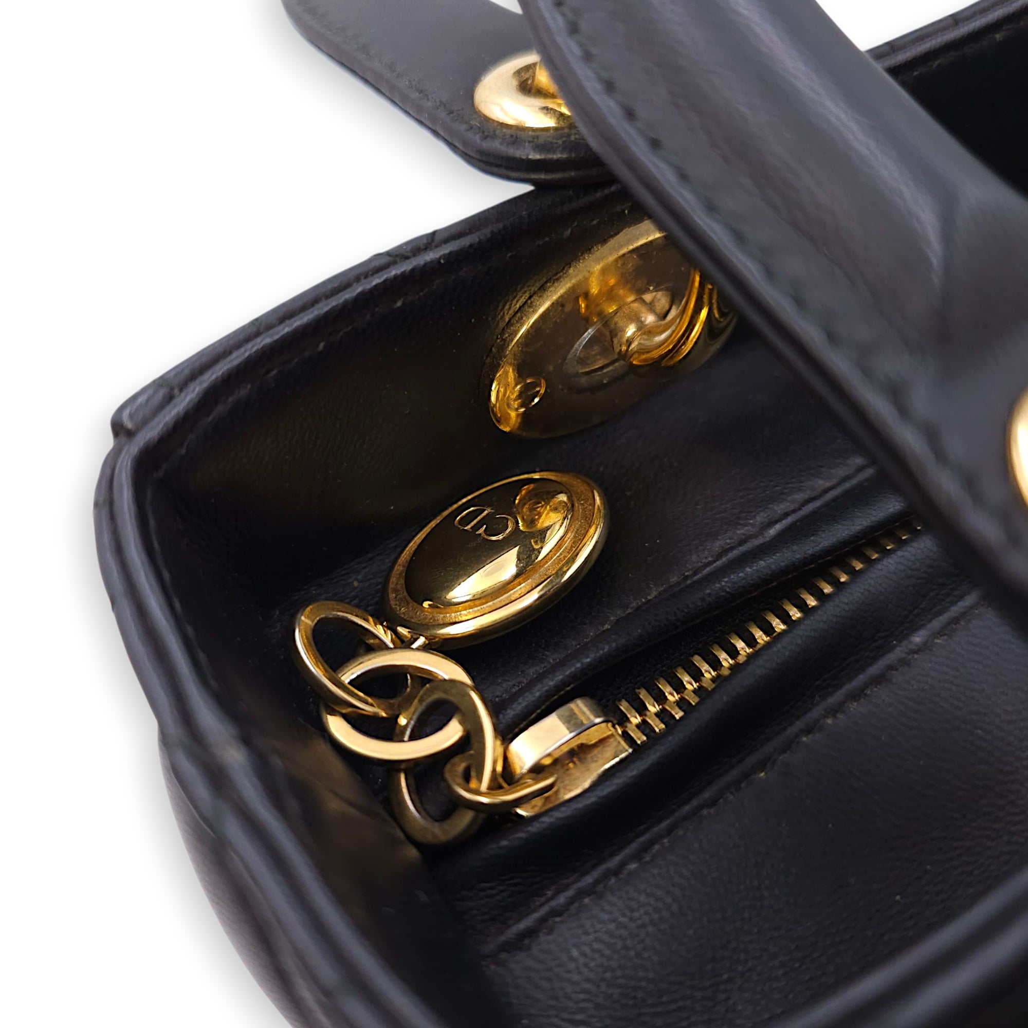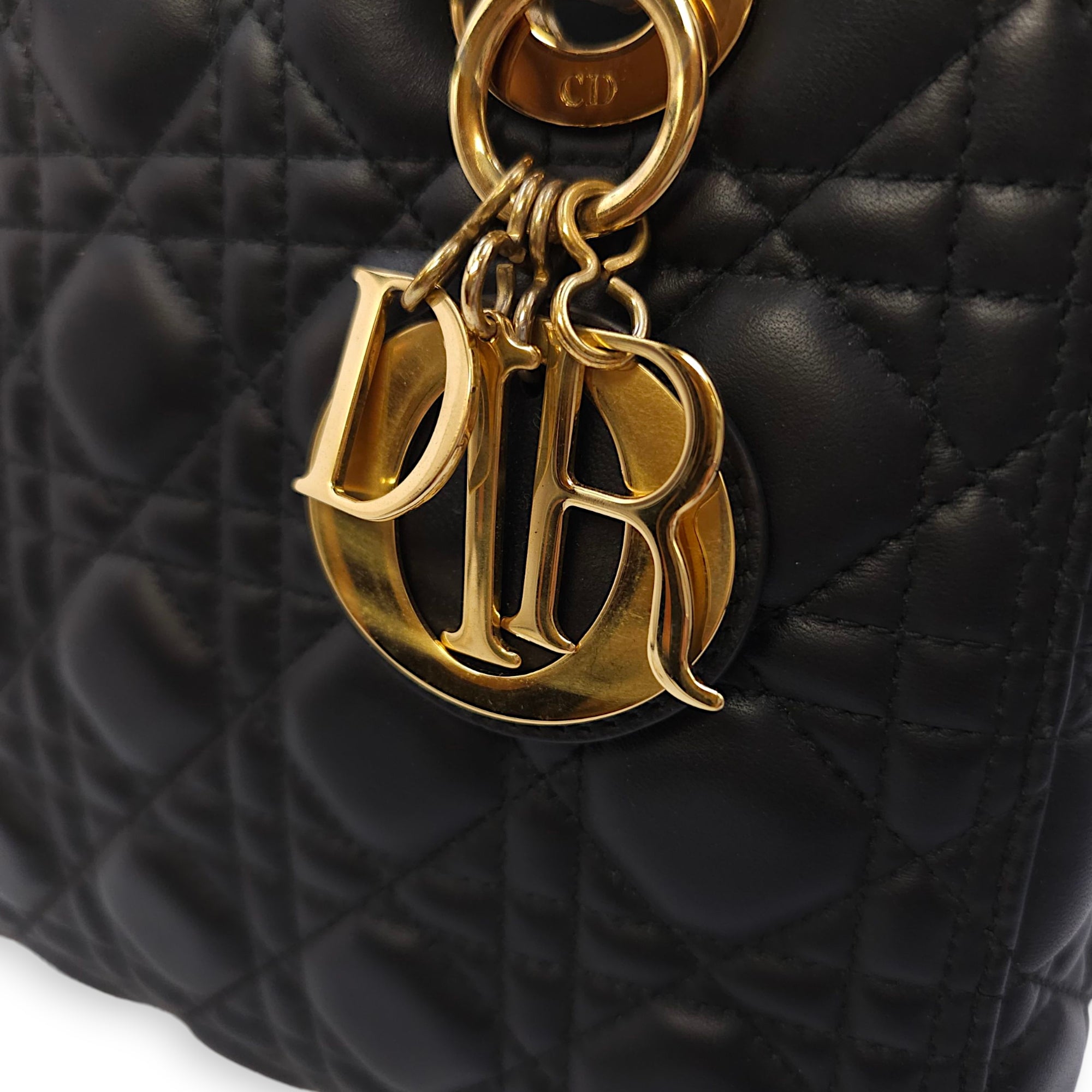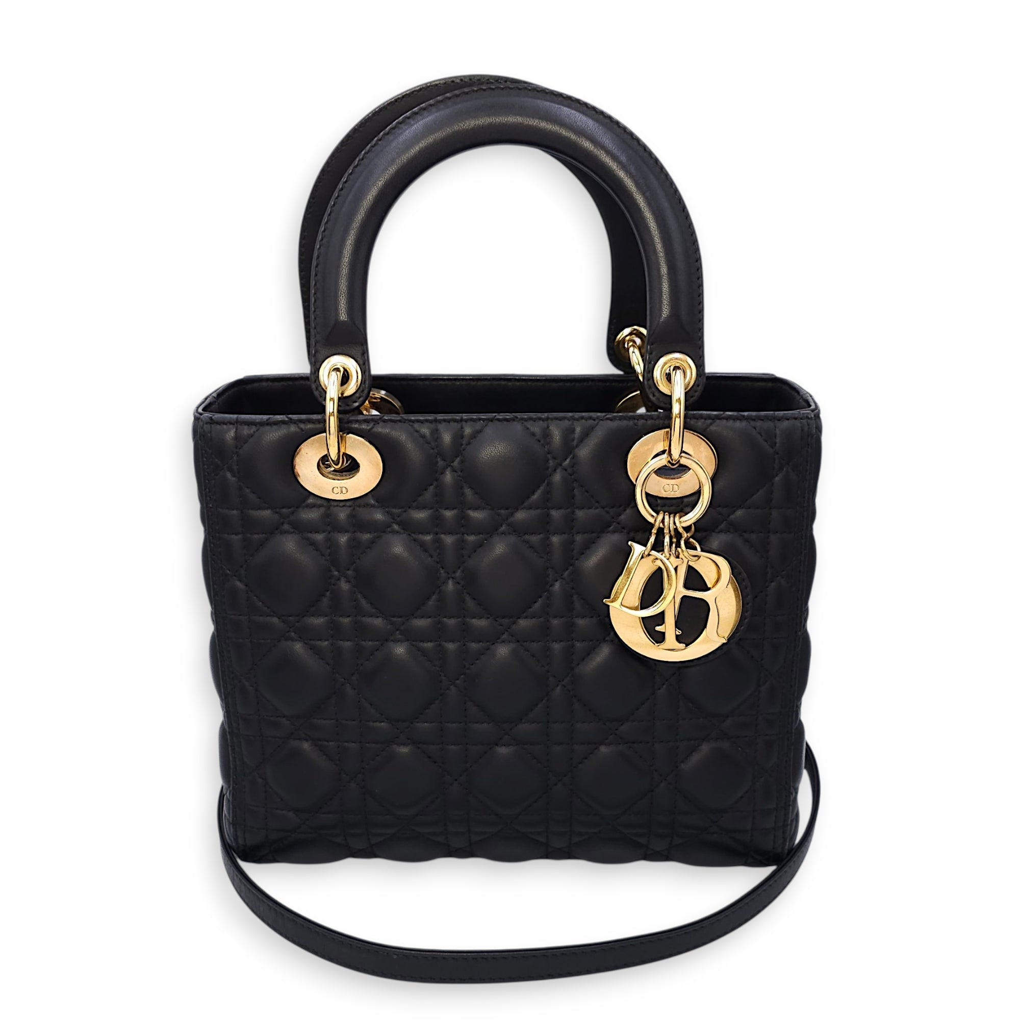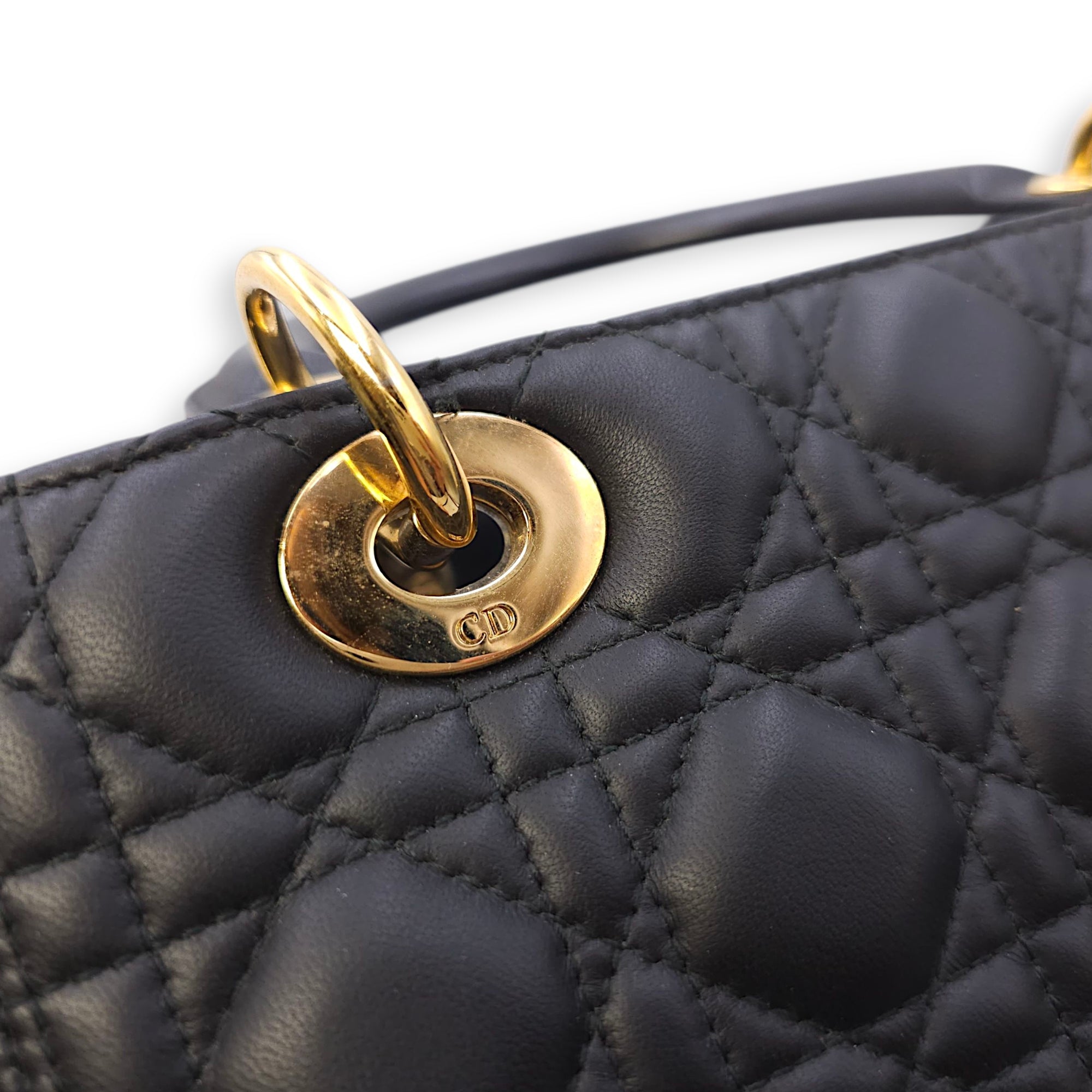 Lady Dior Medium Black Top Handle Bag in Lambskin, Gold hardware