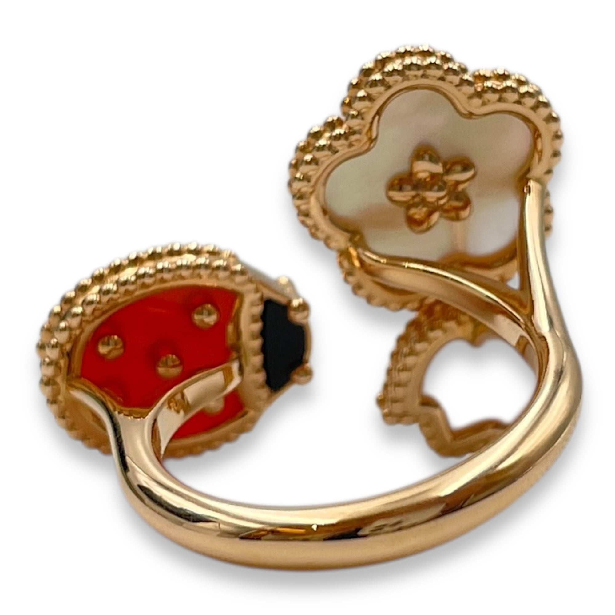 Lucky Spring 56 Between the Finger Ring in Red/White, Carnelian/Mother-of-Pearl, Rose Gold Hardware