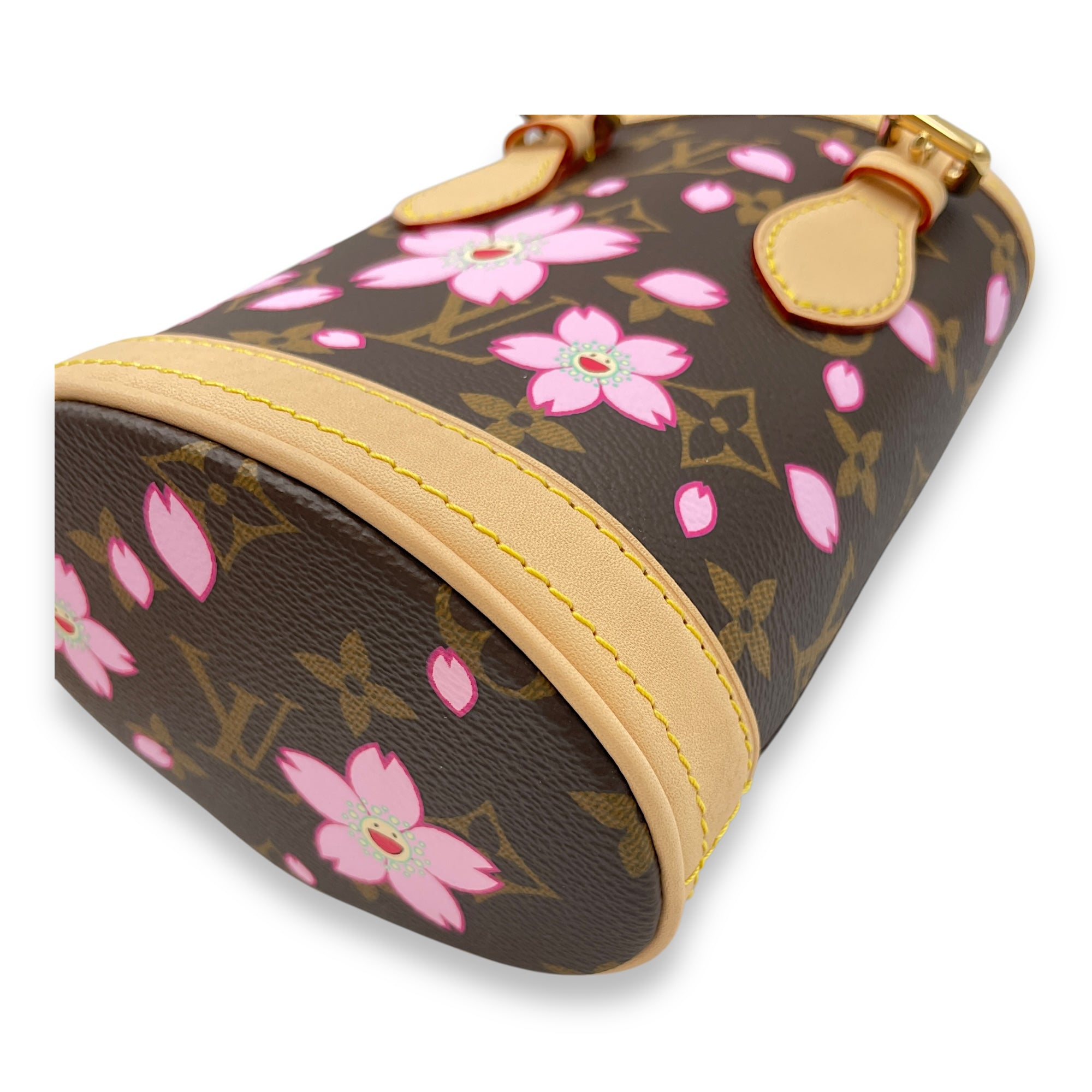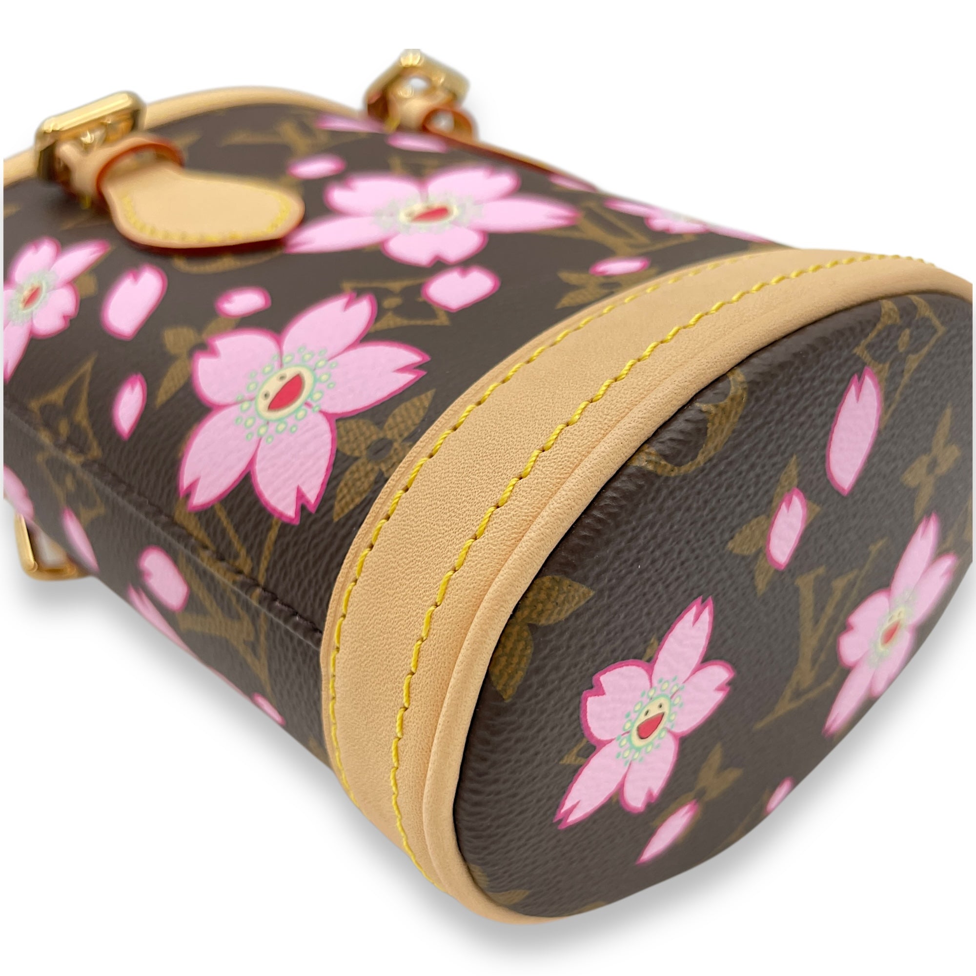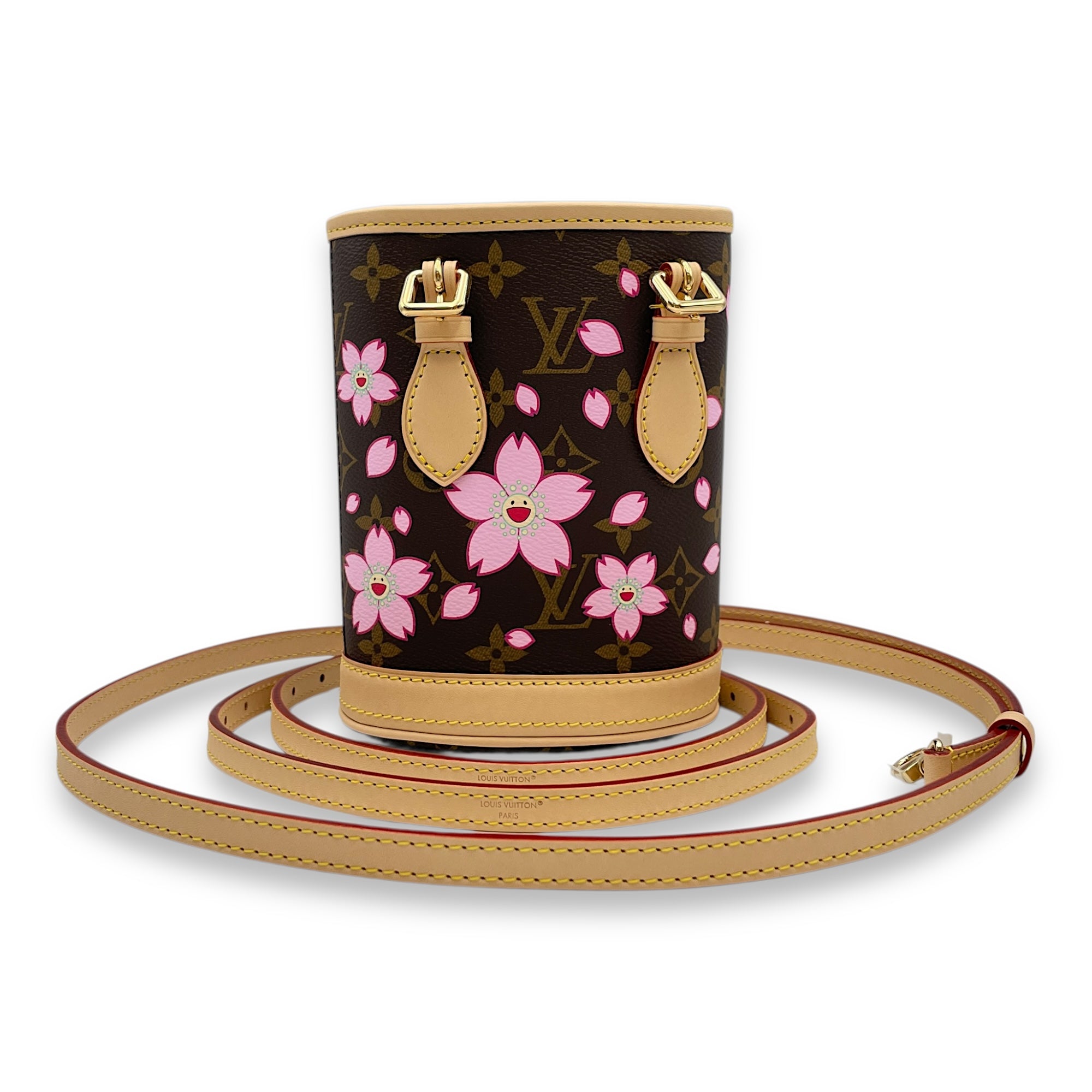 LV x TM Nano Brown Bucket Bag in Canvas, Gold hardware