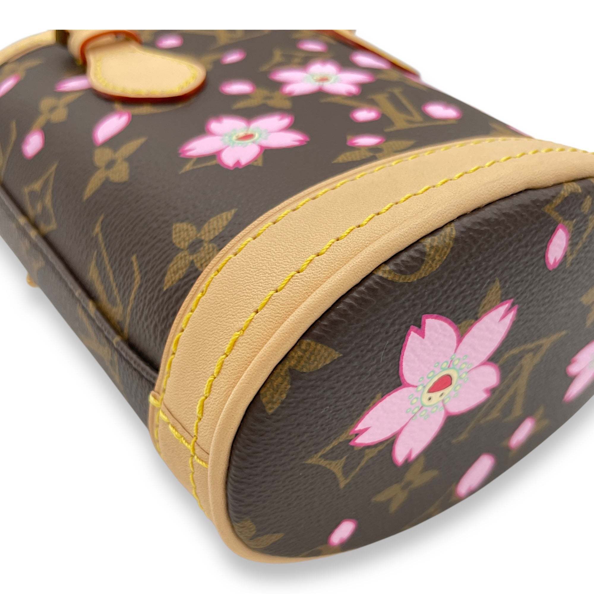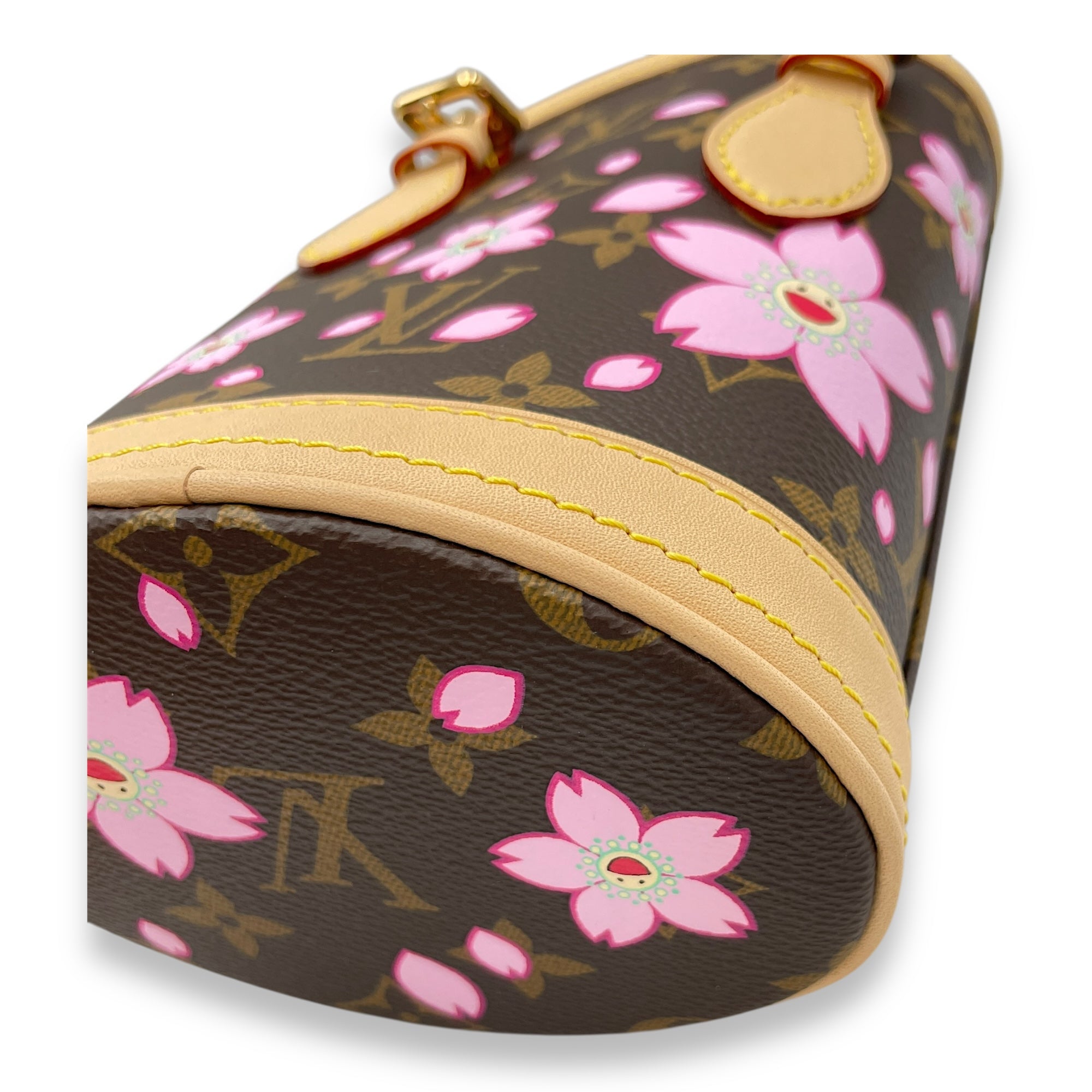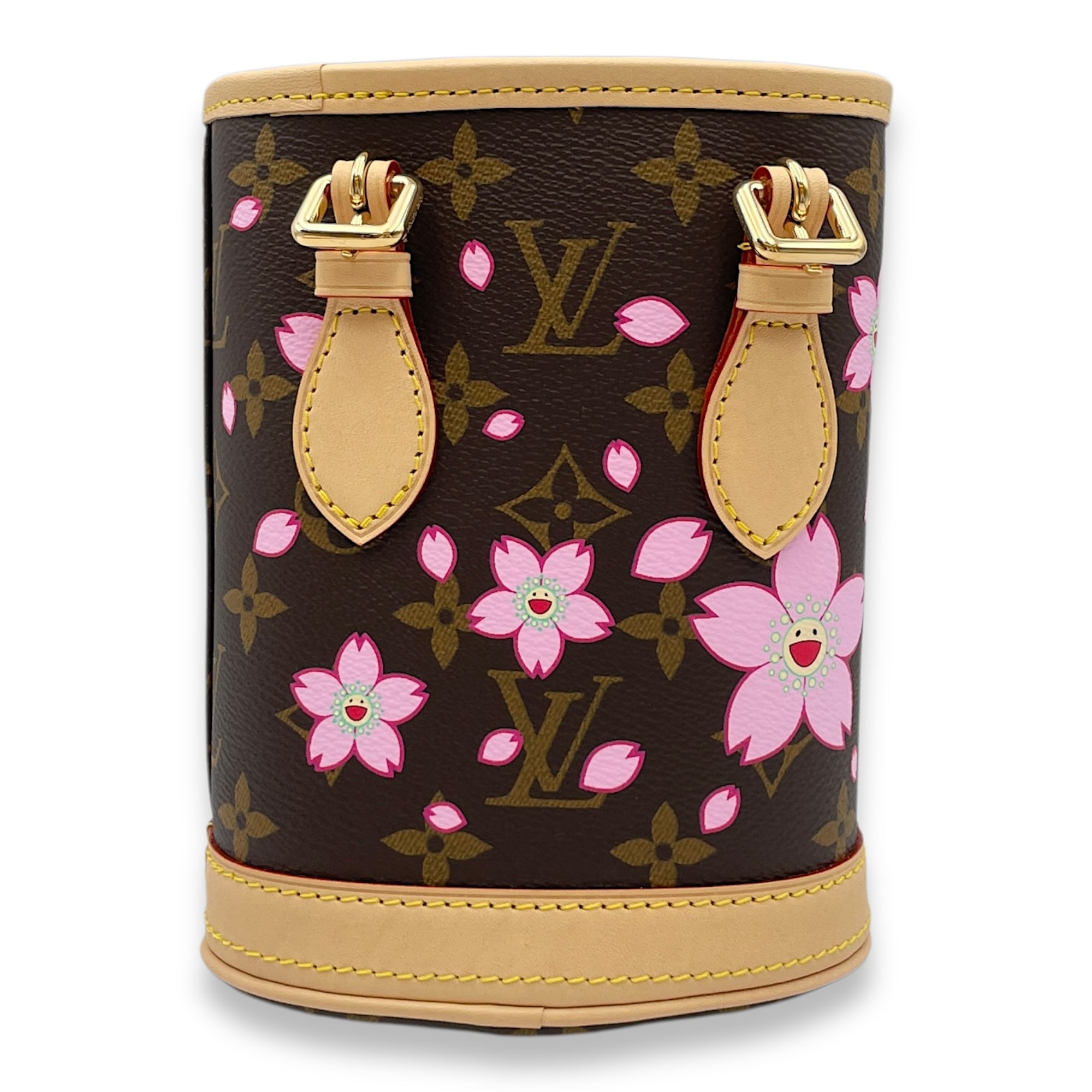 LV x TM Nano Brown Bucket Bag in Canvas, Gold hardware
