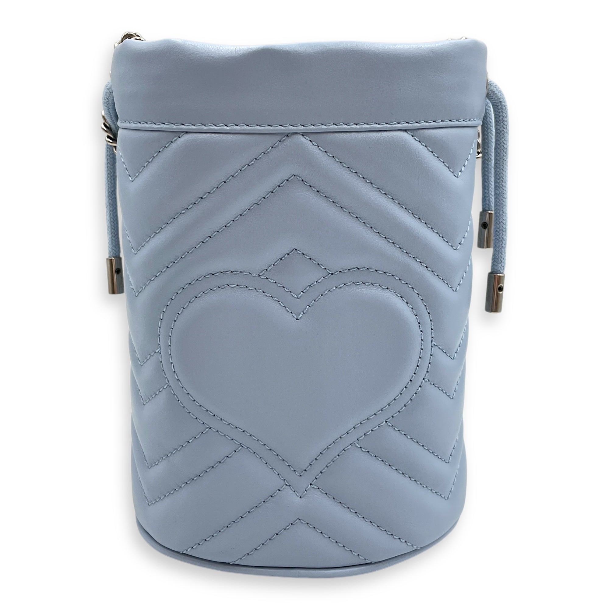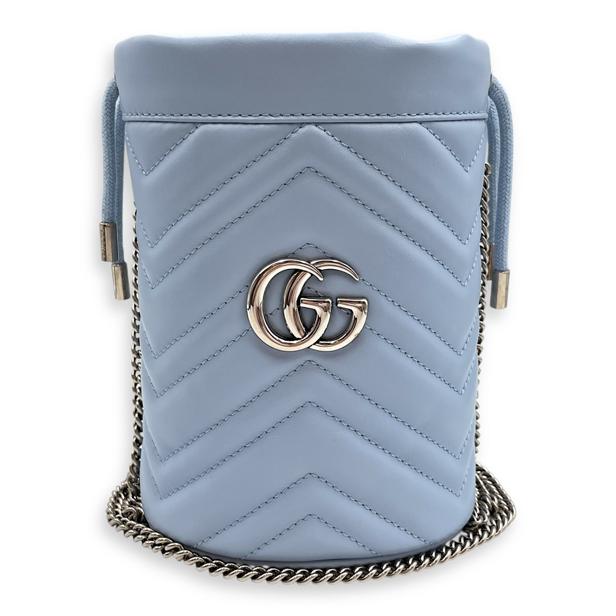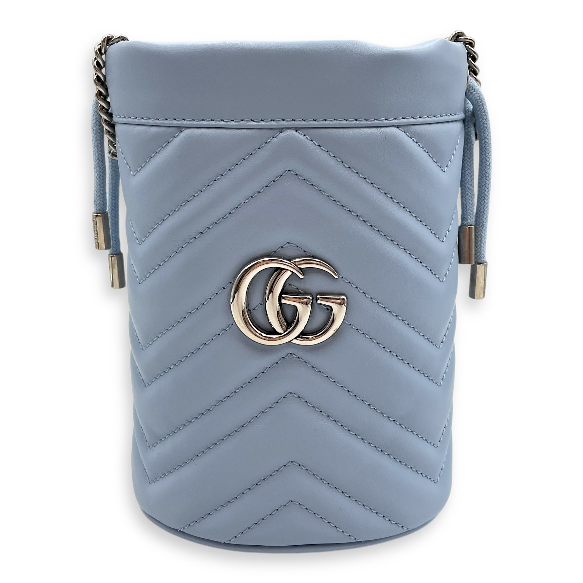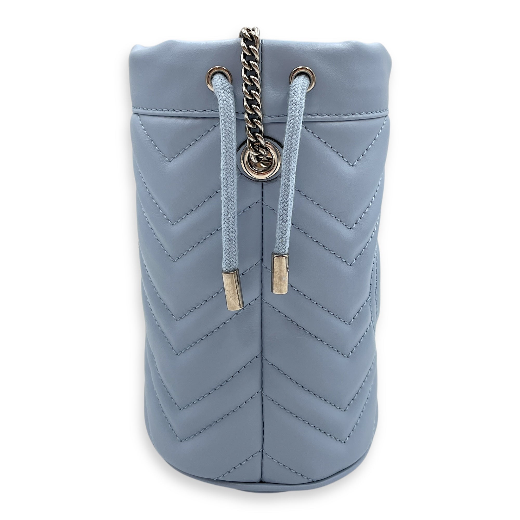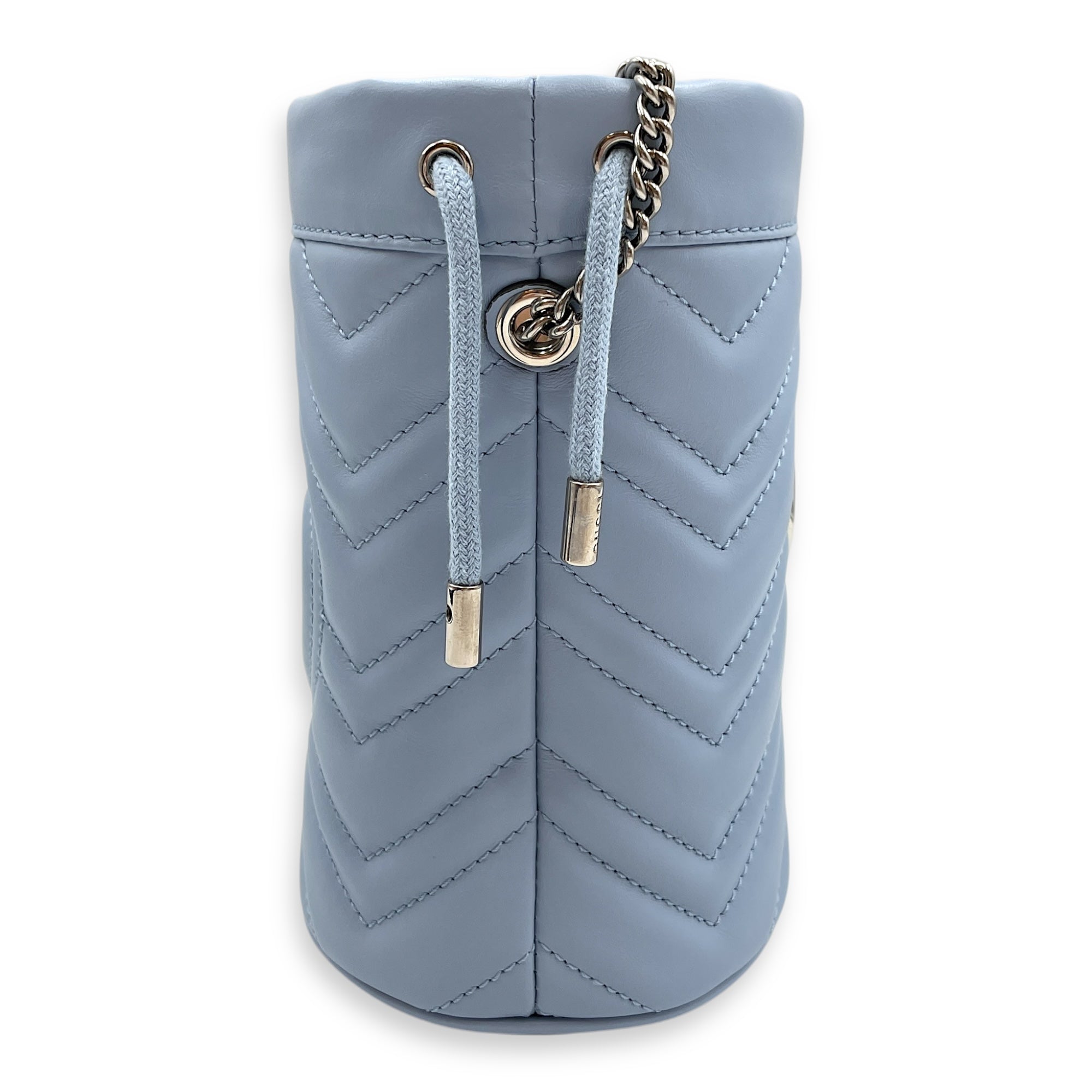 Marmont Bucket Mini Light Blue Bucket Bag in Calfskin, Silver hardware