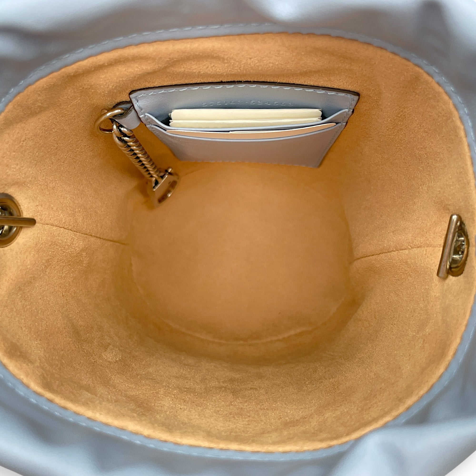 Be the first to review “Marmont Bucket Mini Light Blue Bucket Bag in Calfskin, Silver hardware”