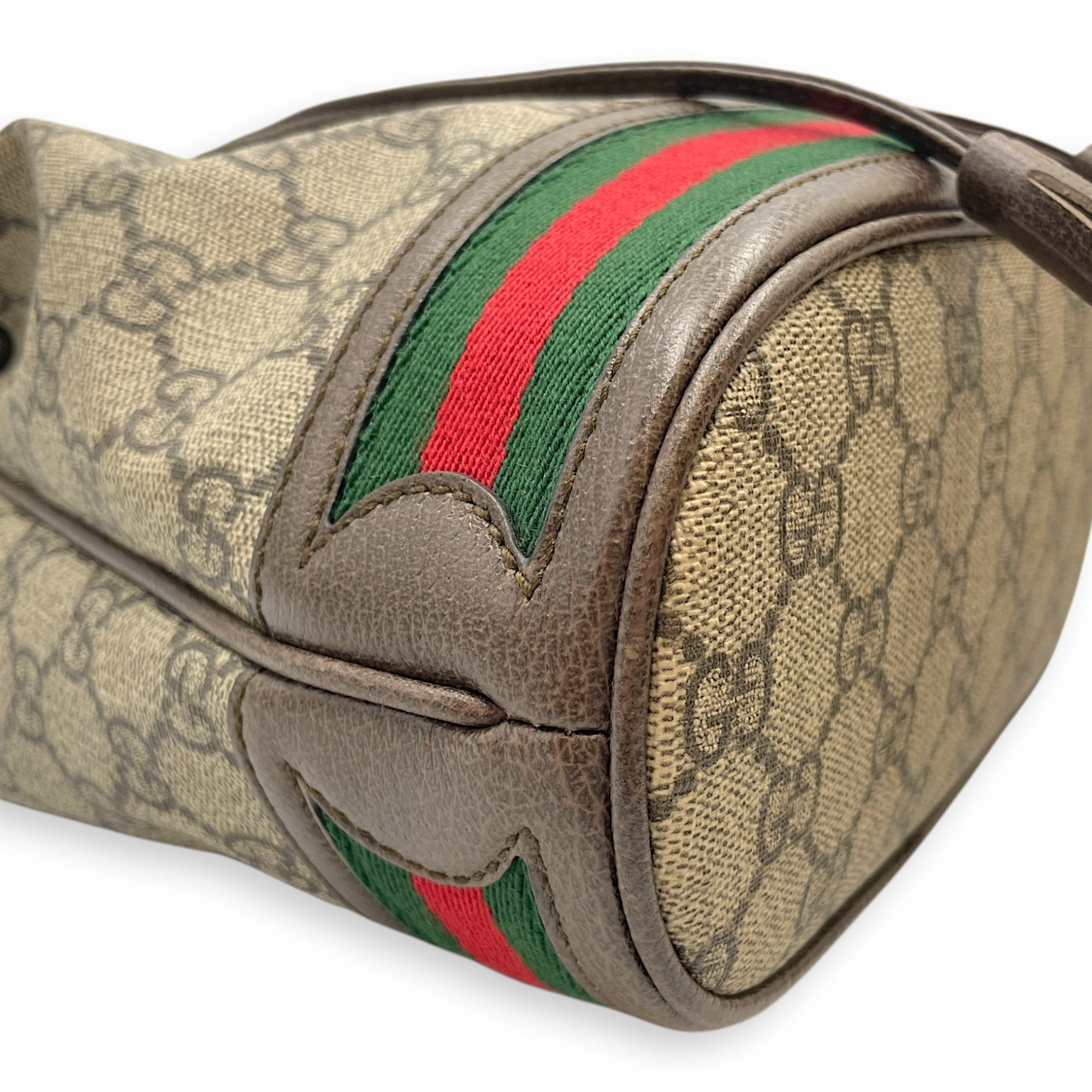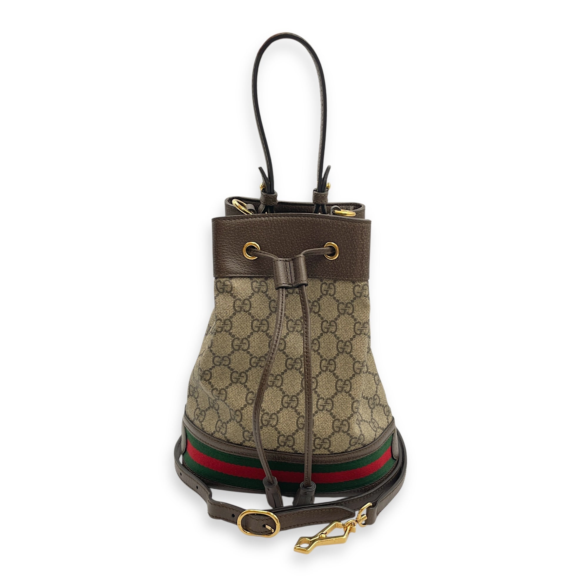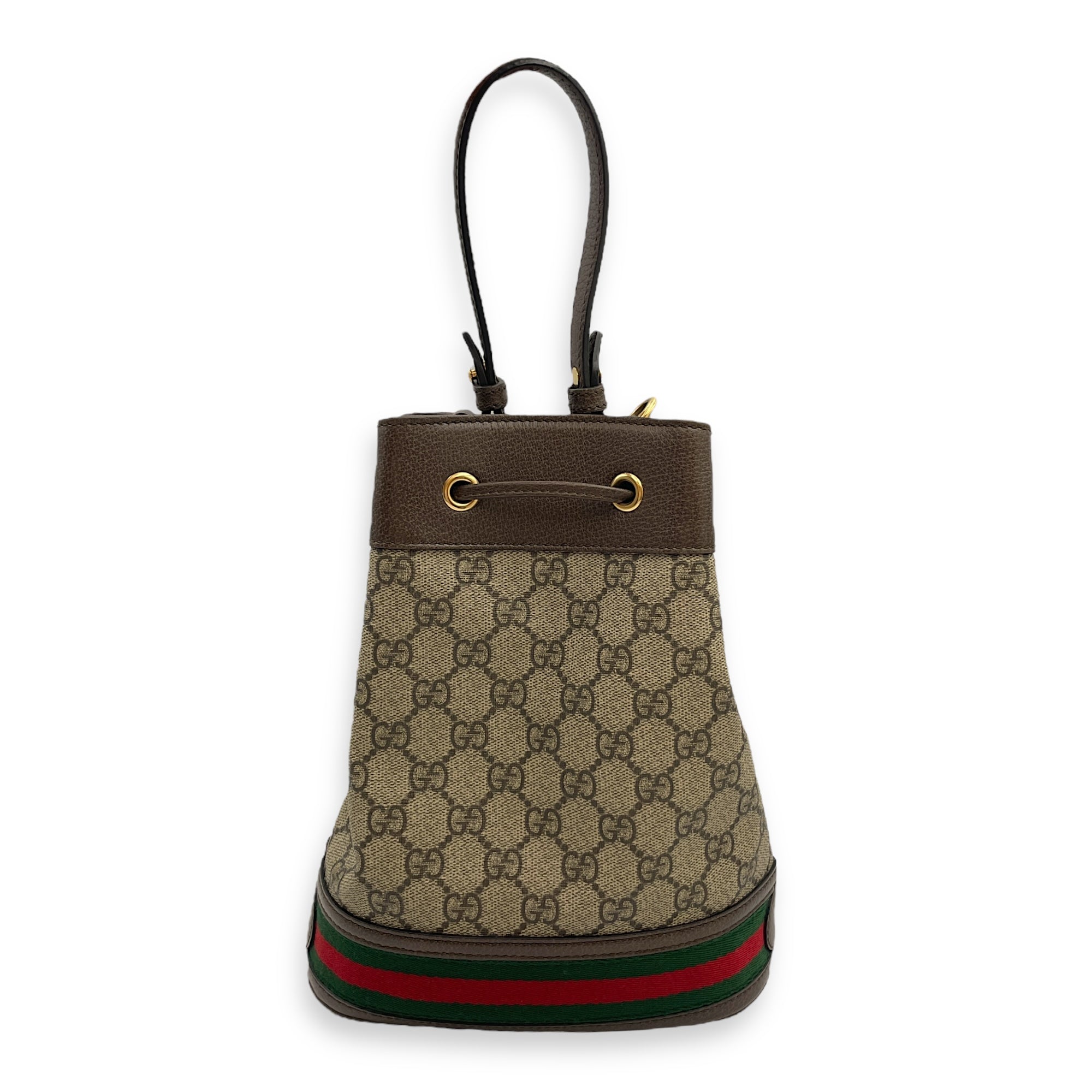 Be the first to review “Ophidia Small Brown Bucket Bag in Canvas, Gold hardware”