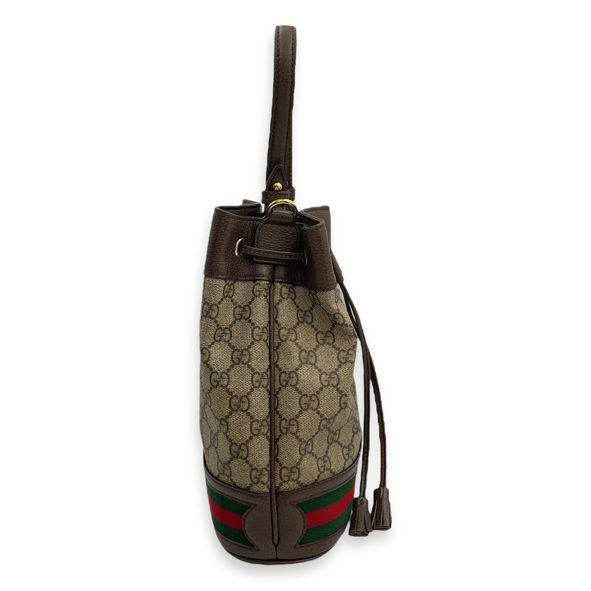 Ophidia Small Brown Bucket Bag in Canvas, Gold hardware