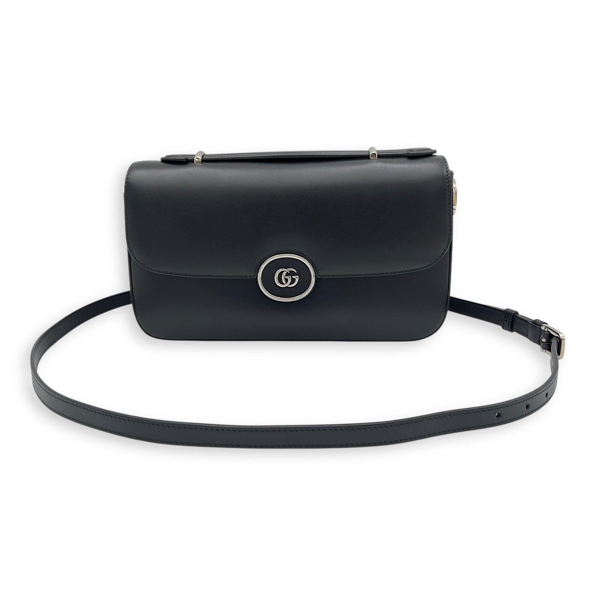 Petite GG Small Black Crossbody Bag in Calfskin, Silver hardware