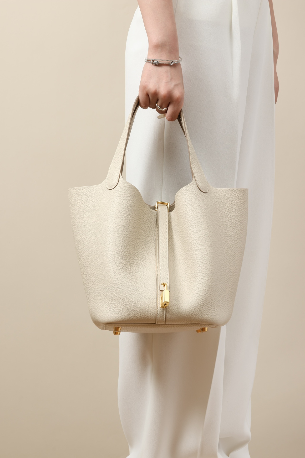 Be the first to review “Picotin Lock 22 Taurillon Craie(10) Gold Hardware”
