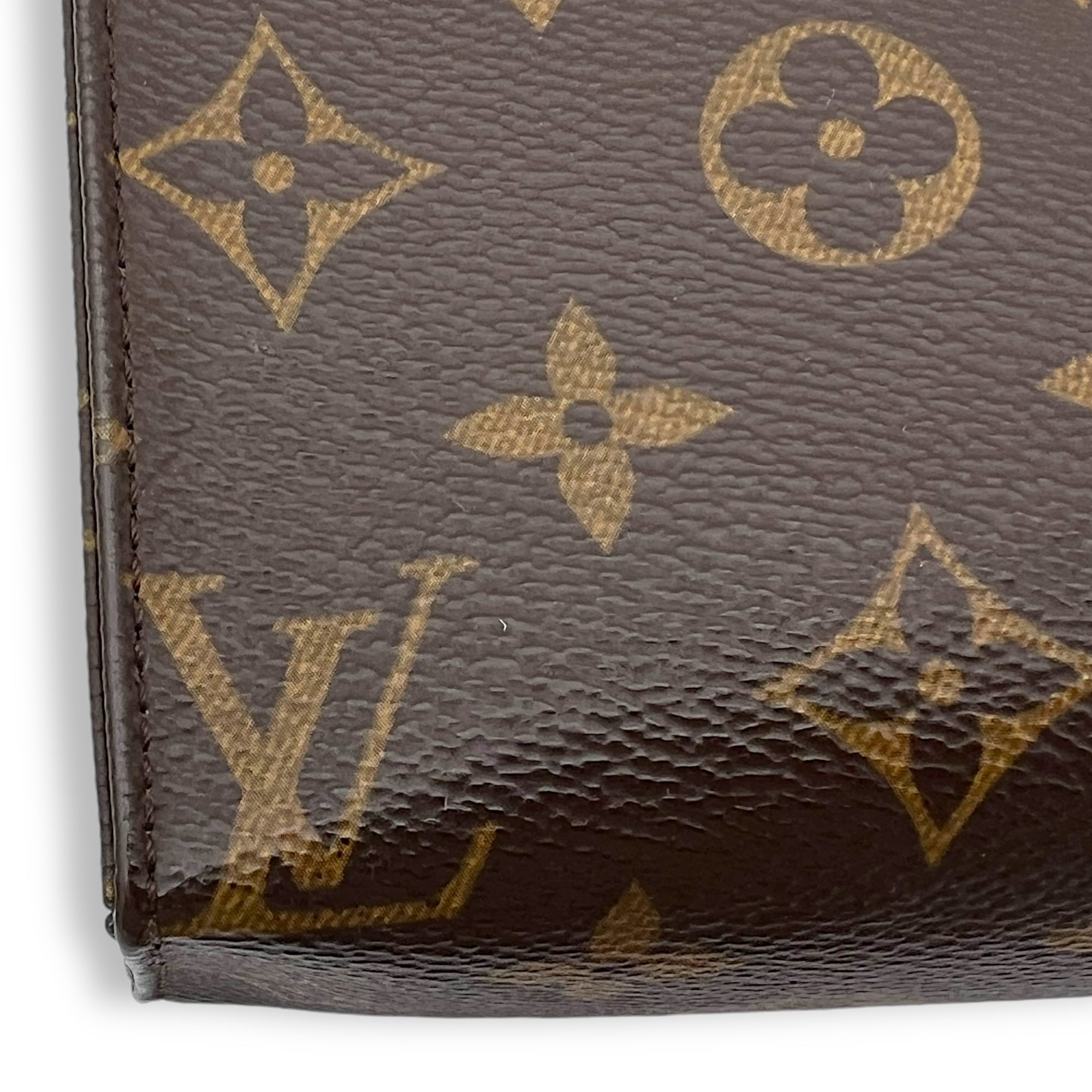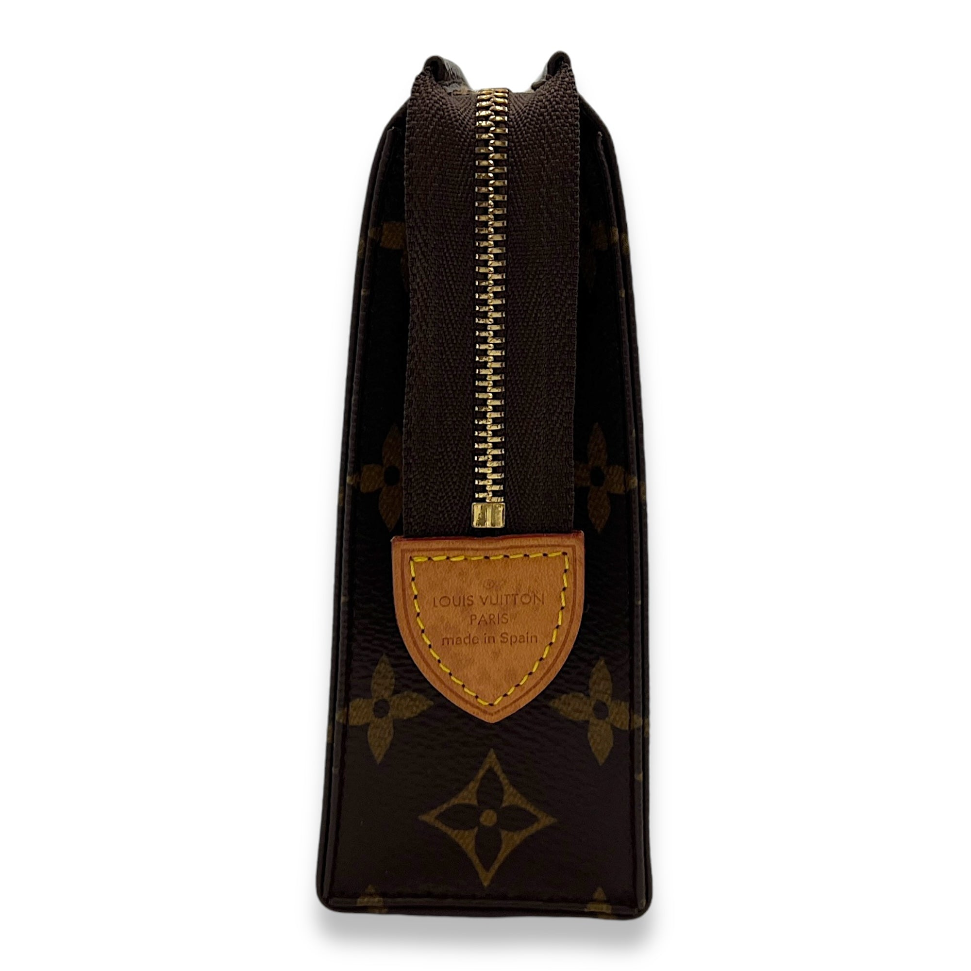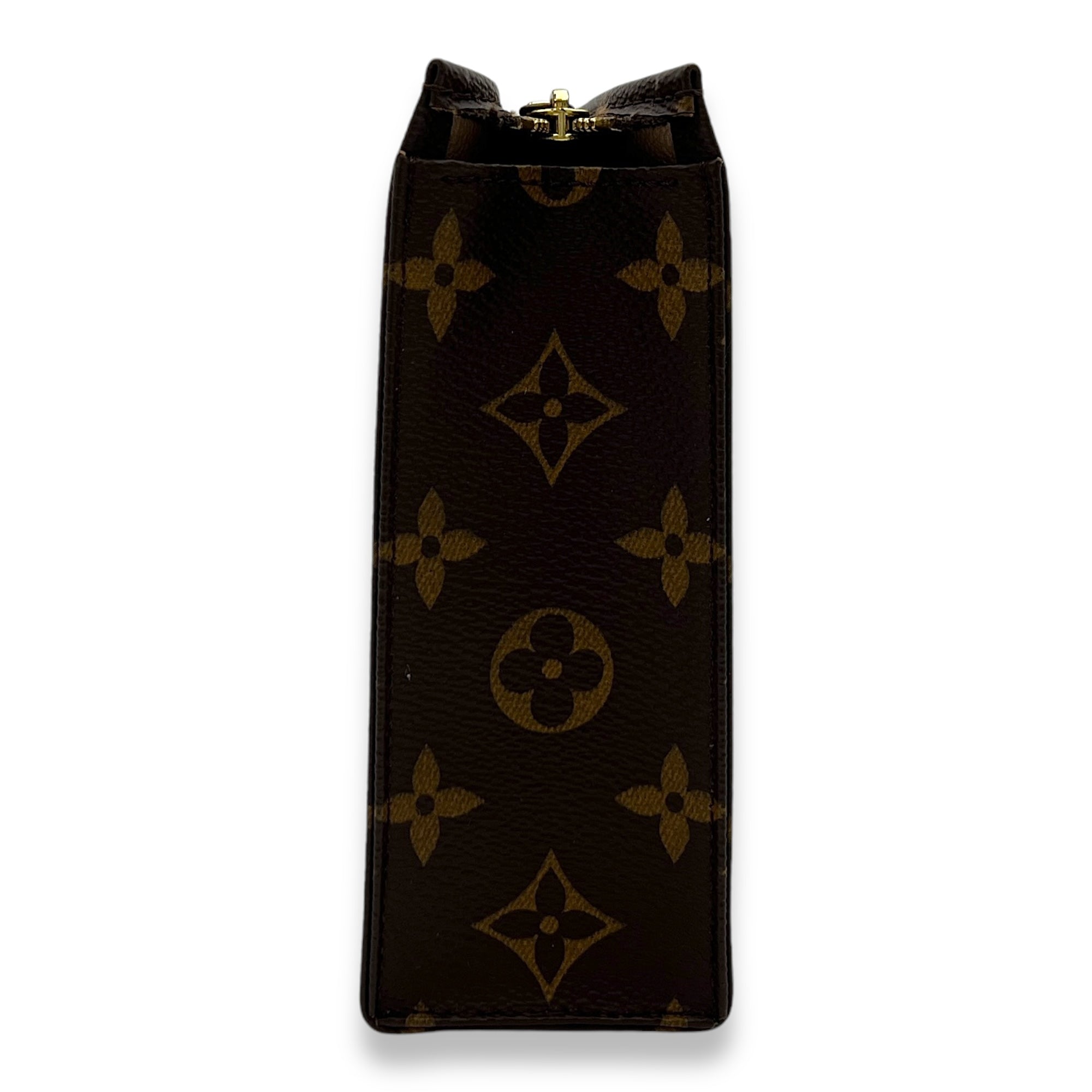 Pochette Toilette 19 Brown Pouch in Monogram Coated Canvas, Gold hardware