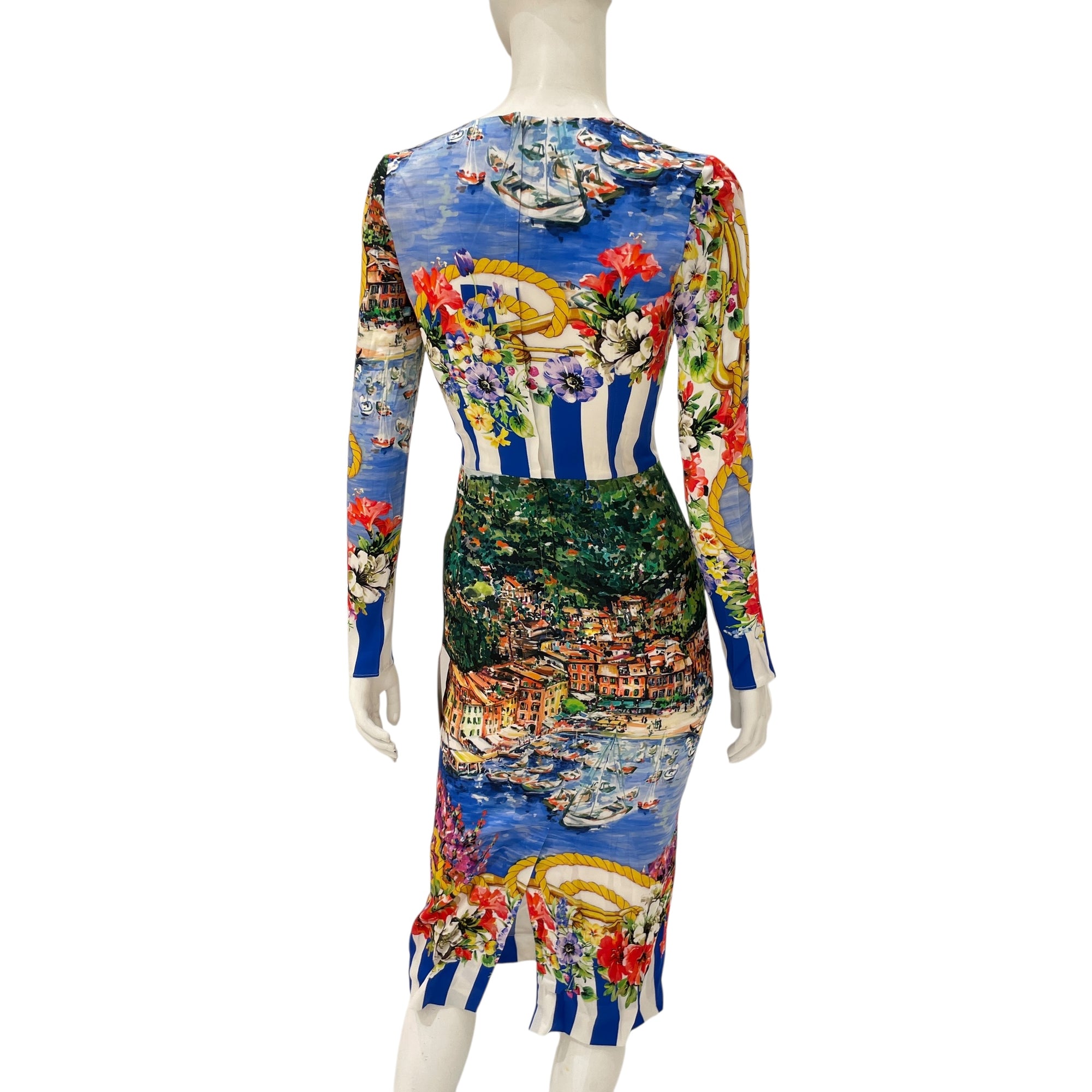 Portofino Printed Silk-Blend Midi Dress 38 Multi-colour Ready-To-Wear , Silver hardware
