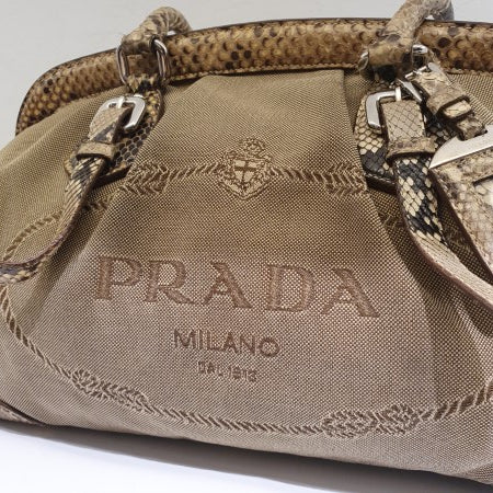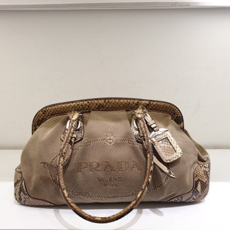 Be the first to review “Prada Beige Jacquard Python Handbag”