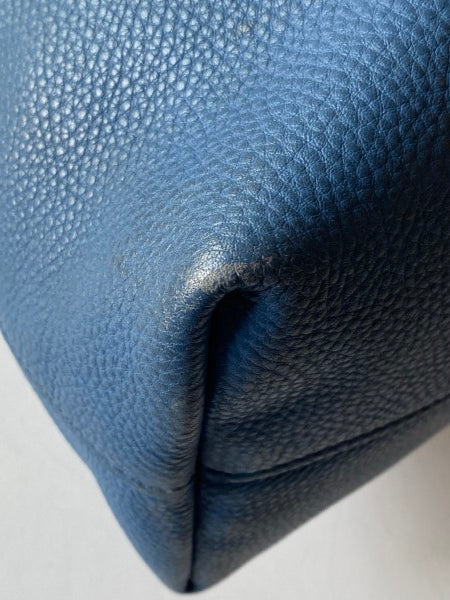 Prada Blue Vitello Daino Vertical Convertible Tote Bag