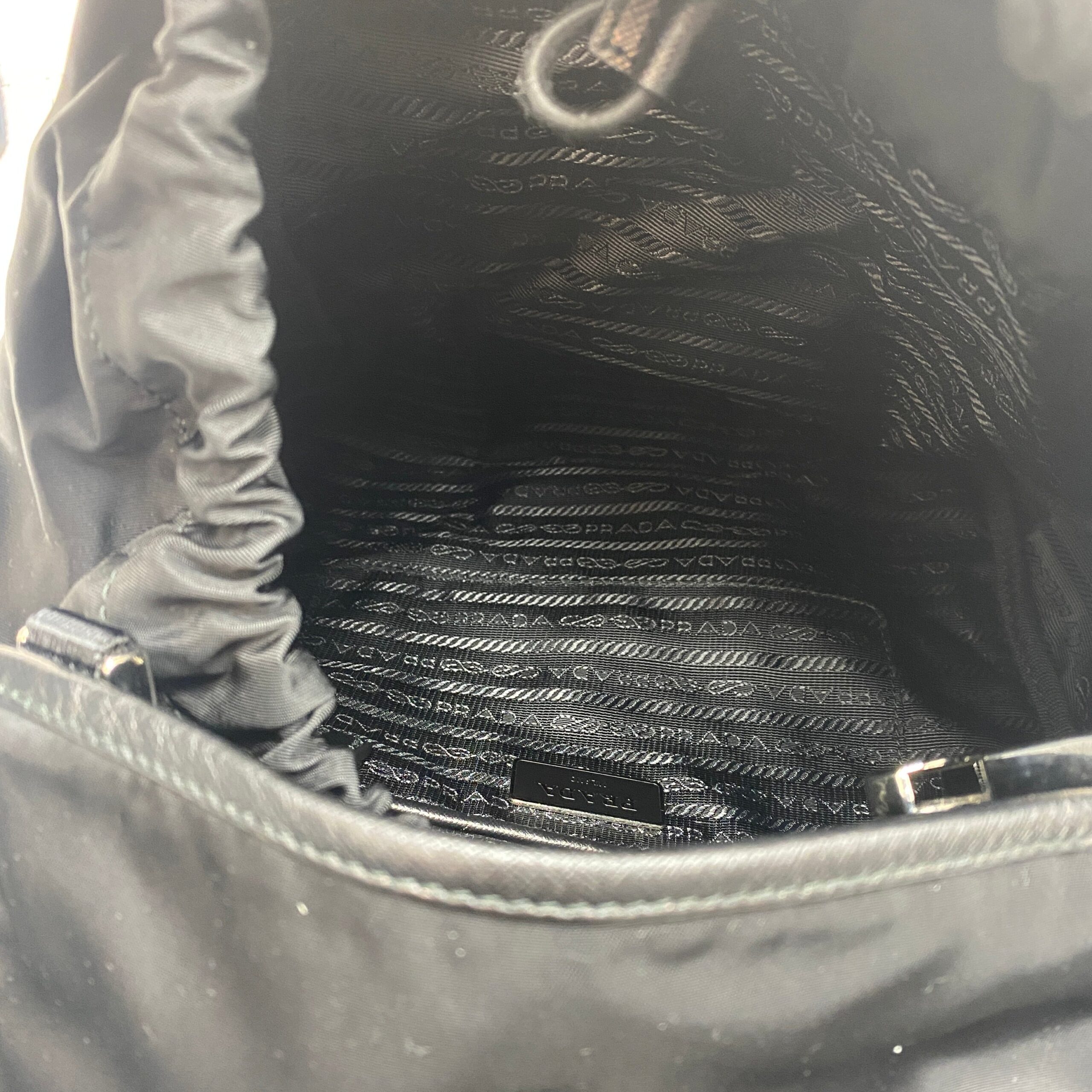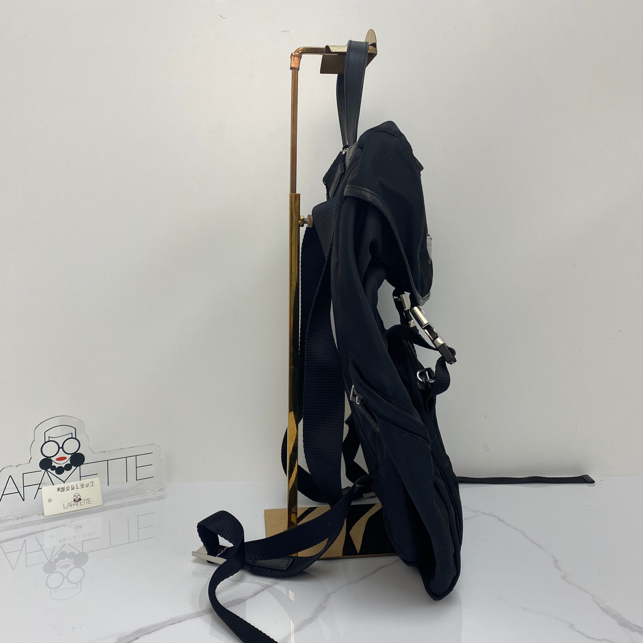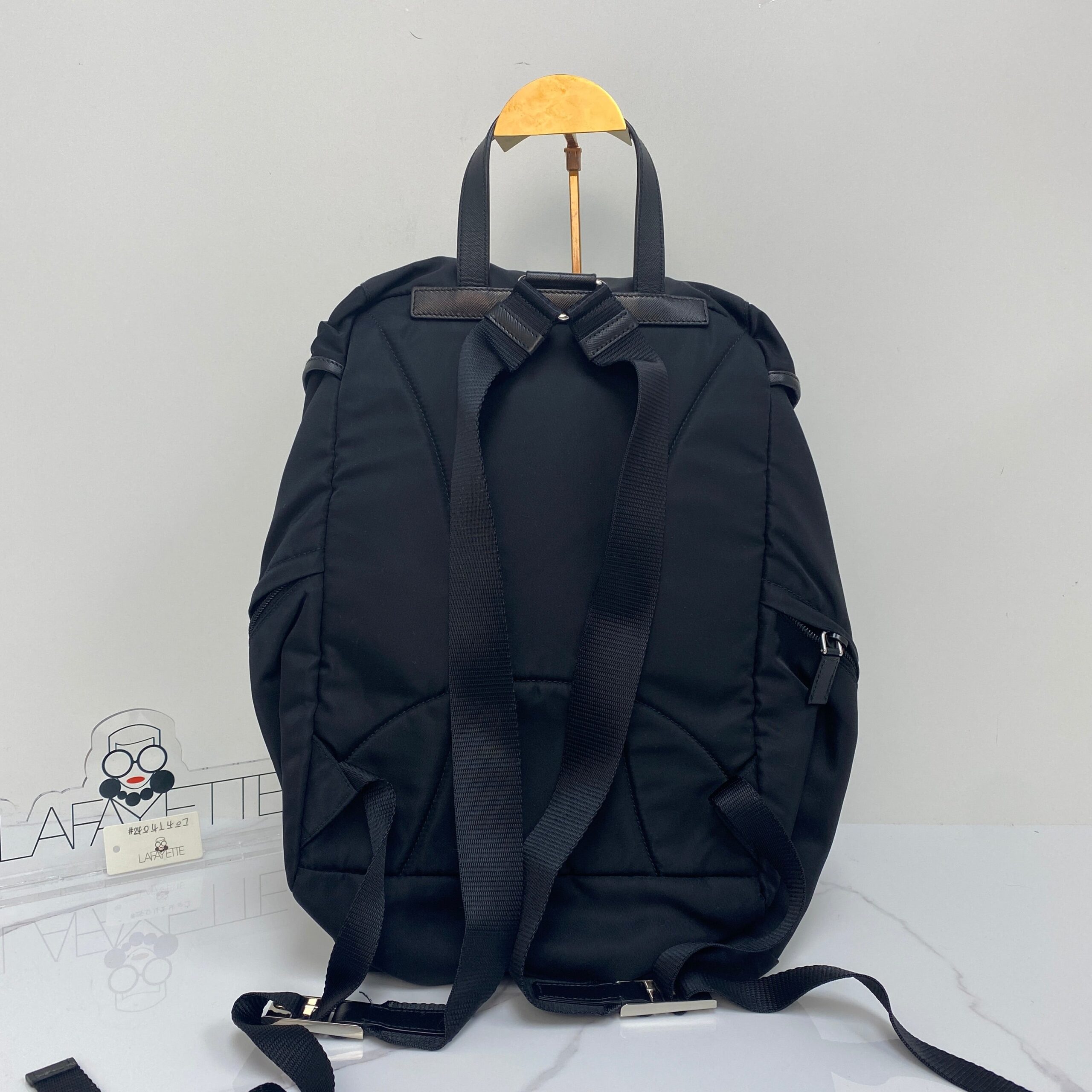 This Prada nylon backpack has evolved since the eighties and now incorporates Re-Nylon, crafted from recycled materials such as ocean plastics and textile fibers. Complemented by traditional Saffiano leather with its distinct texture and finish, the design includes a compact flap structure and a prominent front pocket, adorned with the iconic enameled metal triangle logo.