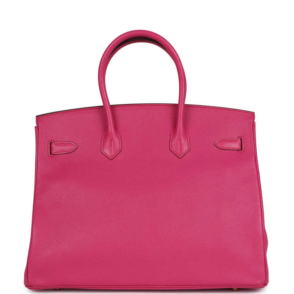 Pre-owned Hermes Birkin 35 Rose Shocking Chevre Mysore Gold Hardware Shop for an authentic pre-owned Hermes Birkin 35 in Rose Shocking chevre mysore leather with gold hardware in excellent condition at Madison Avenue Couture.