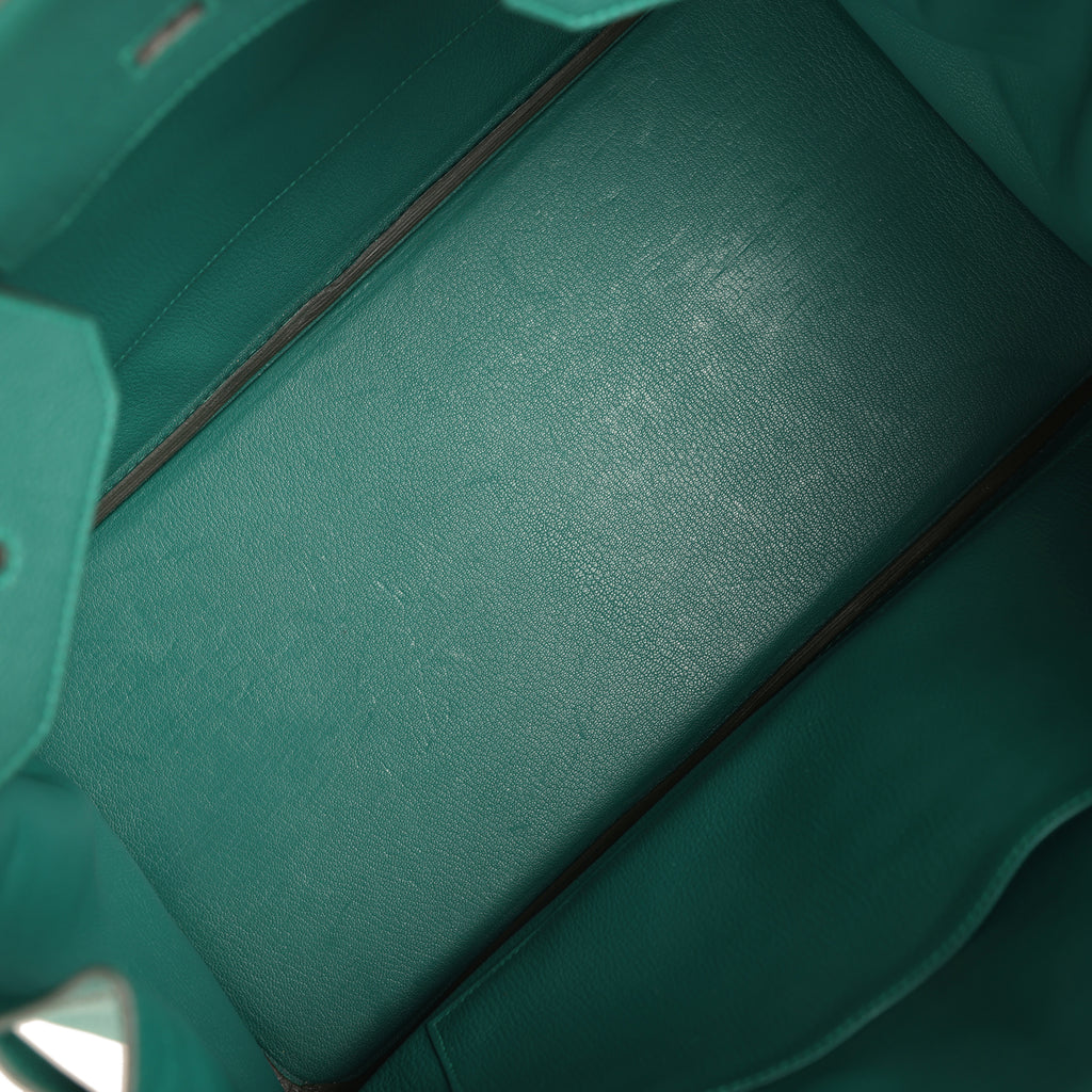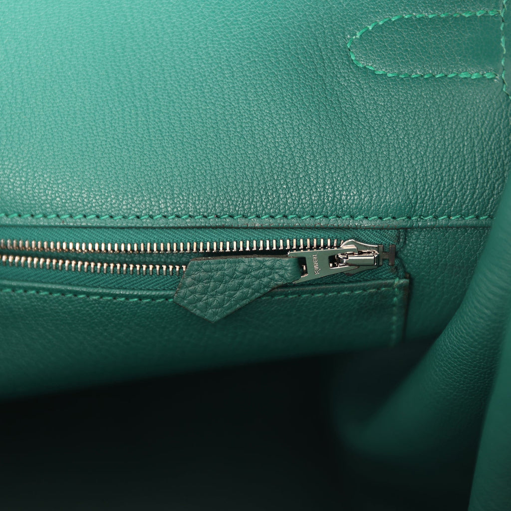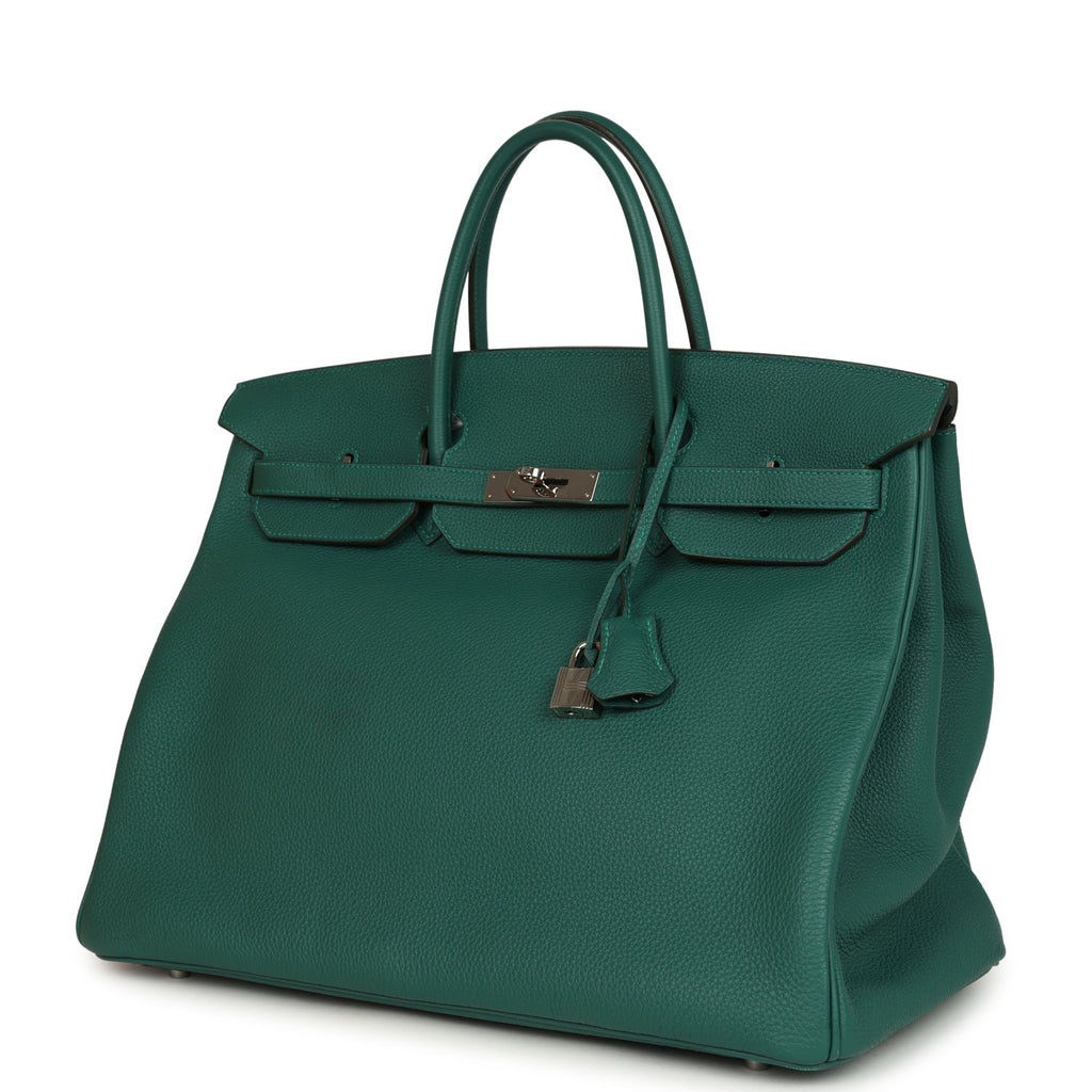 Pre-owned Hermes Birkin 40 Malachite Togo Palladium Hardware Shop for an authentic pre-owned Hermes Birkin 40 in Malachite togo leather with palladium hardware in excellent condition at Madison Avenue Couture.