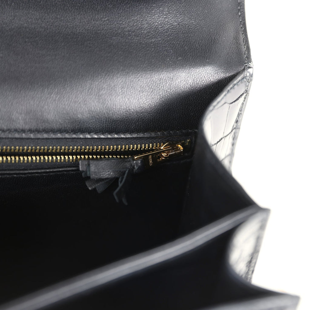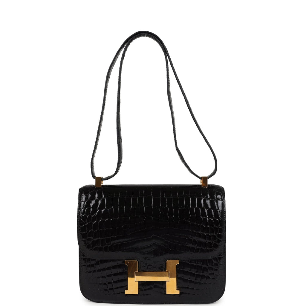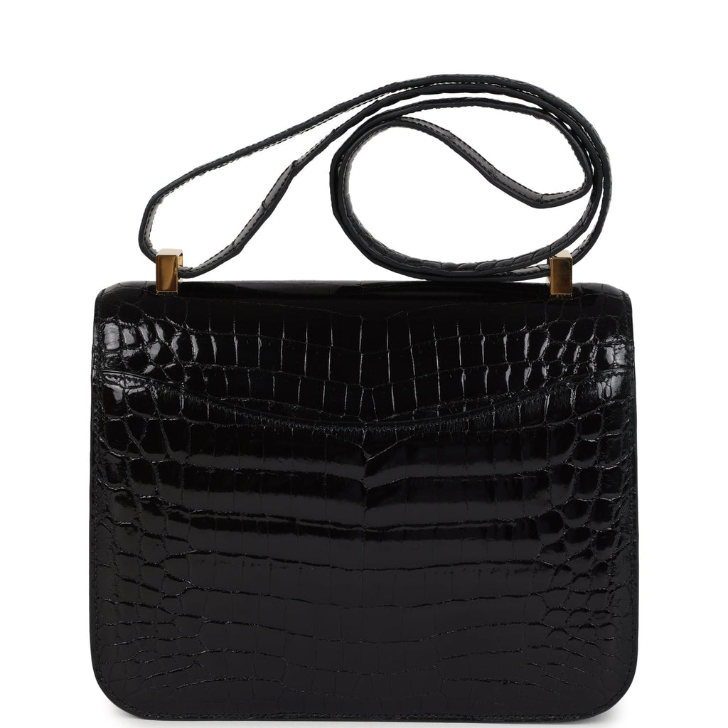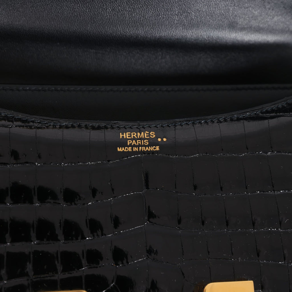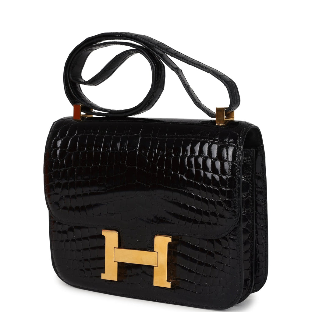 Pre-owned Hermes Constance 24 Black Shiny Niloticus Crocodile Gold Hardware Shop for an authentic pre-owned Hermes Constance 24 is in Black Shiny Niloticus Crocodile with gold hardware in excellent condition at Madison Avenue Couture.
