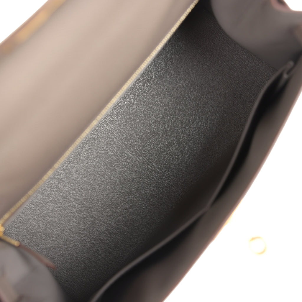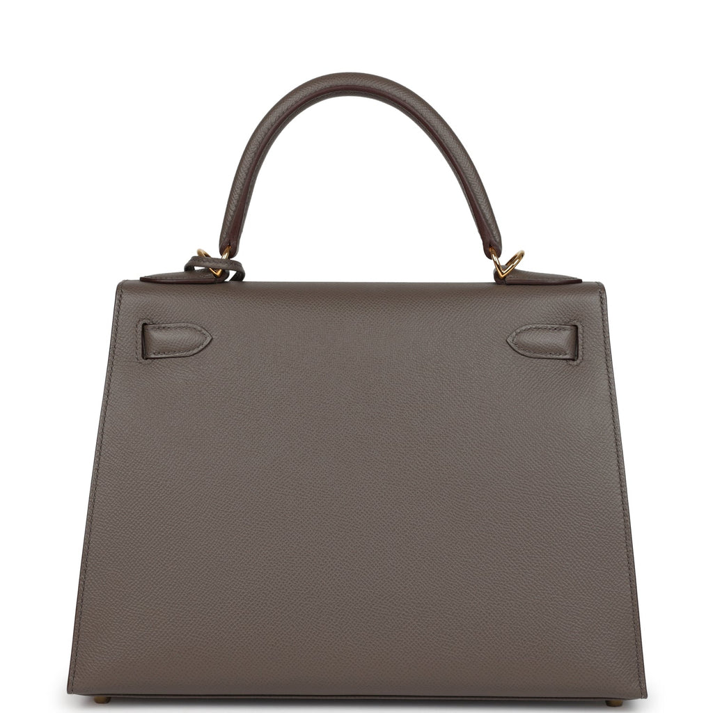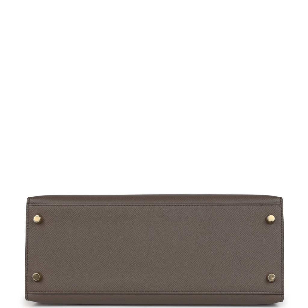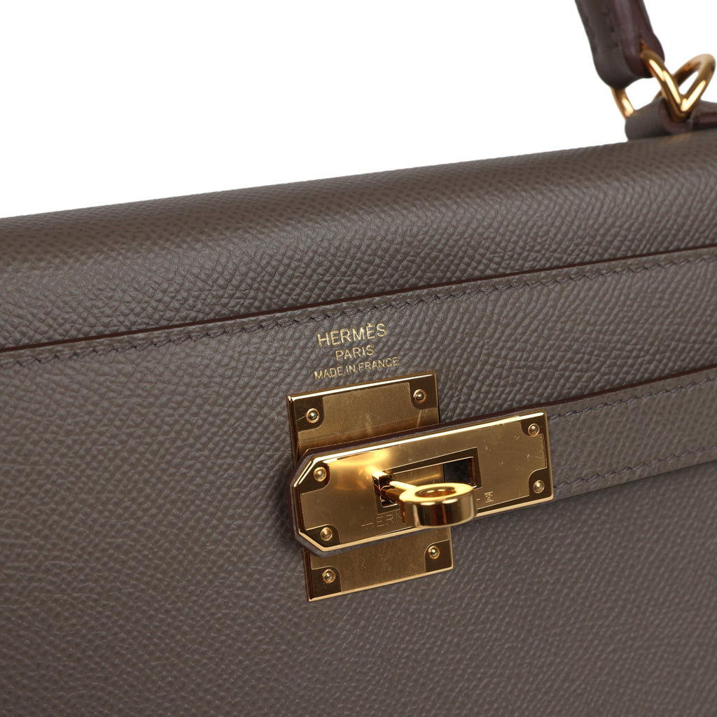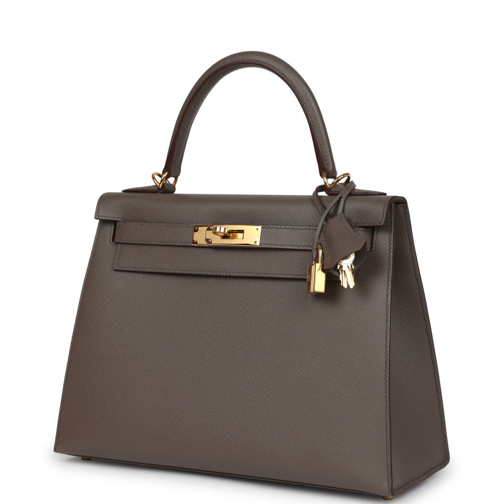 Pre-owned Hermes Kelly Sellier 28 Etain Epsom Gold Hardware Shop for an authentic pre-owned Hermes Kelly Sellier 28 in Etain epsom leather with gold hardware in mint condition at Madison Avenue Couture.