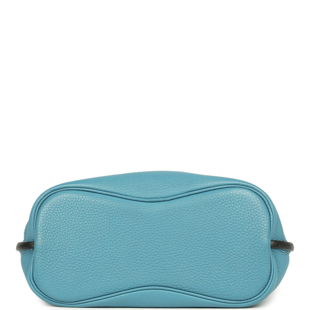 This Hermes So Kelly 22 bag is in Bleu Jean togo leather with Palladium Hardware, featuring contrast stitching, front pull straps that attach to a toggle, and an adjustable double loop shoulder strap with a palladium buckle.The interior is lined in Bleu Jean chevre leather and has one zip pocket with Hermes engraved pull; pocket on opposite side.Collection: O Square (2011) Origin: FranceCondition: Pre-owned; Excellent – This bag retains its shape structure. There is partial plastic on the hardware. The exposed hardware has moderate scratches throughout. The exterior leather has light scuffing around the two front bottom corners and one of the back corners. Some of the exterior contrast stitching on the shoulder strap is discolored. The interior leather has light press markings and scratches to the interior base.Accompanied by: Hermes dustbagMeasurements: 9″ width x 11.5″ height x 4″ depth; 13″-16″ adjustable handle drop