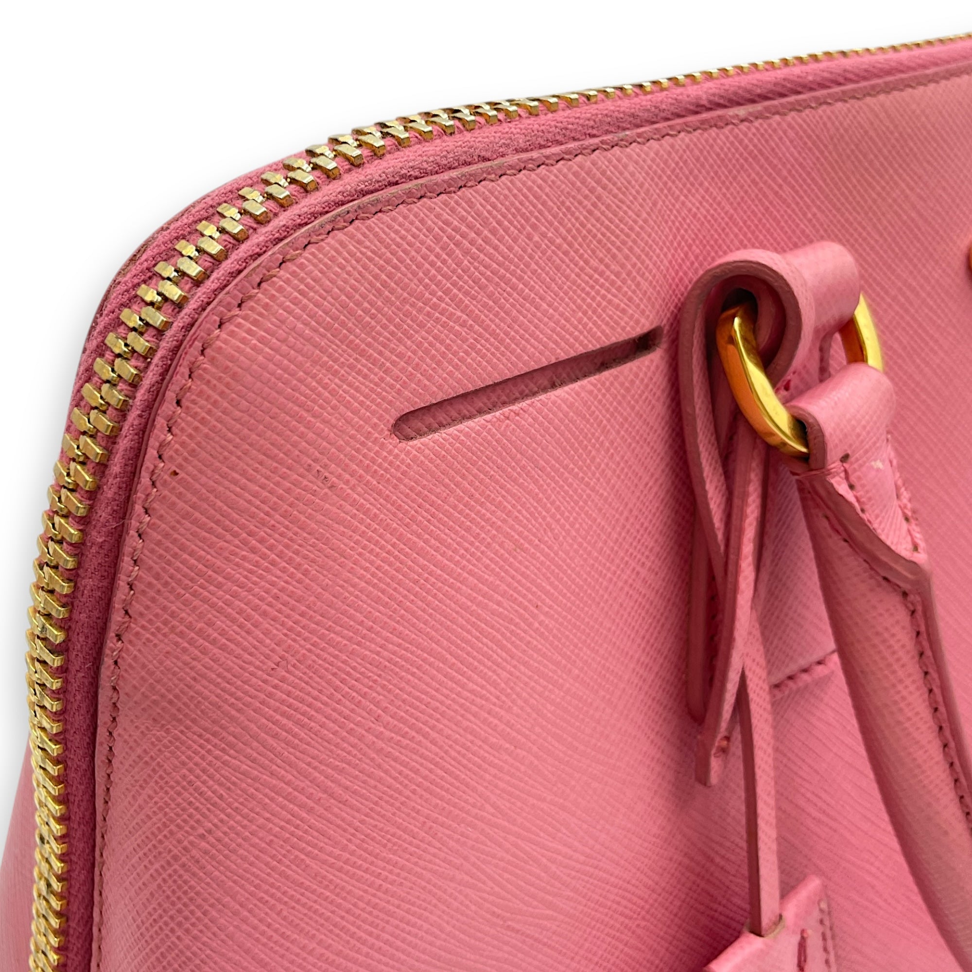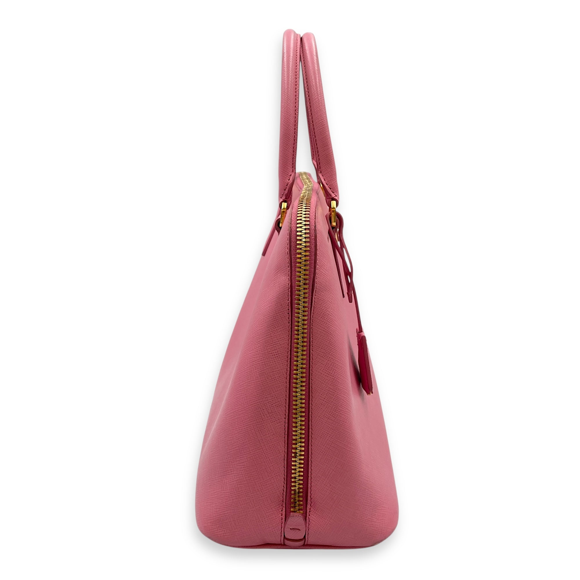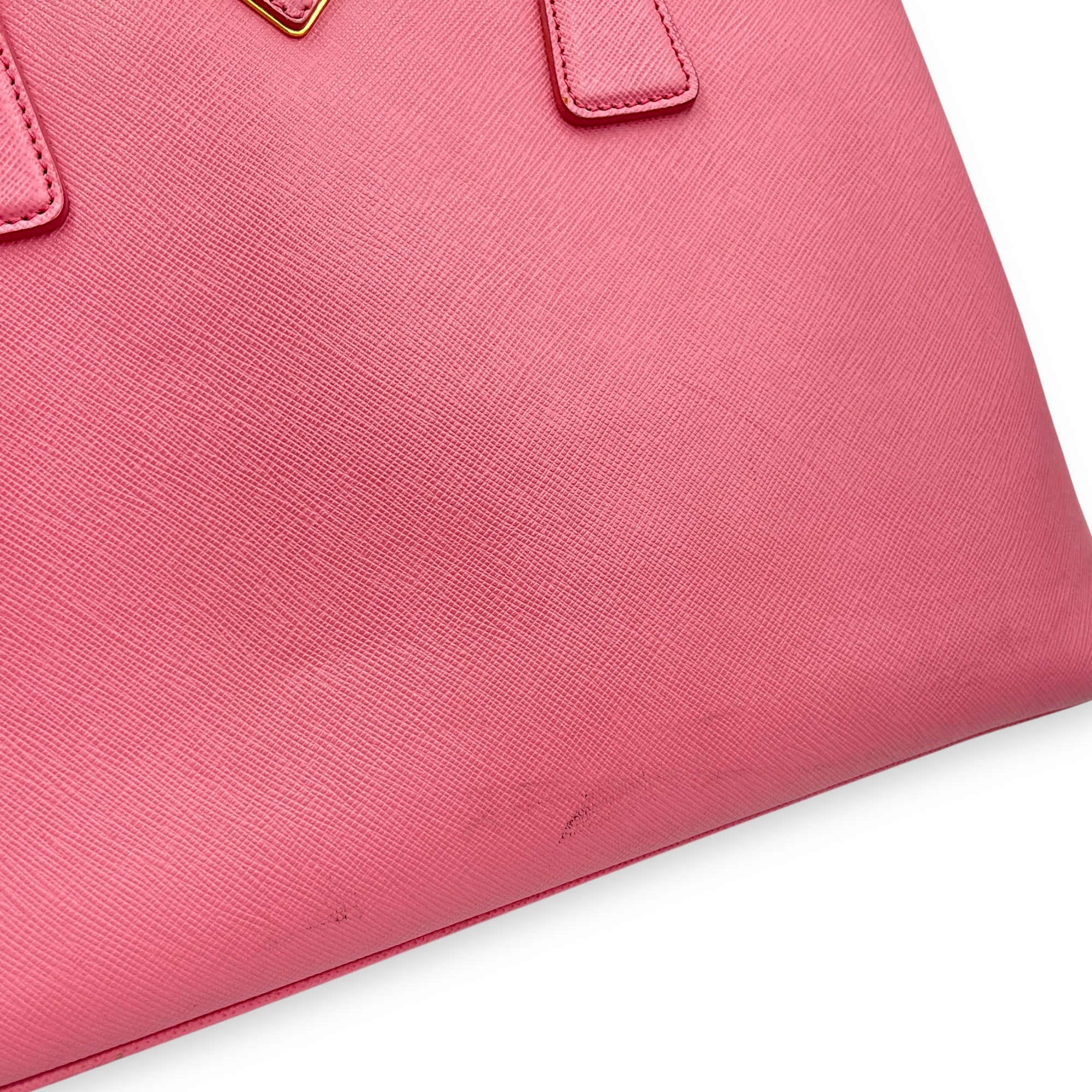 Promenade Pink Top Handle Bag in Saffiano Leather, Gold hardware