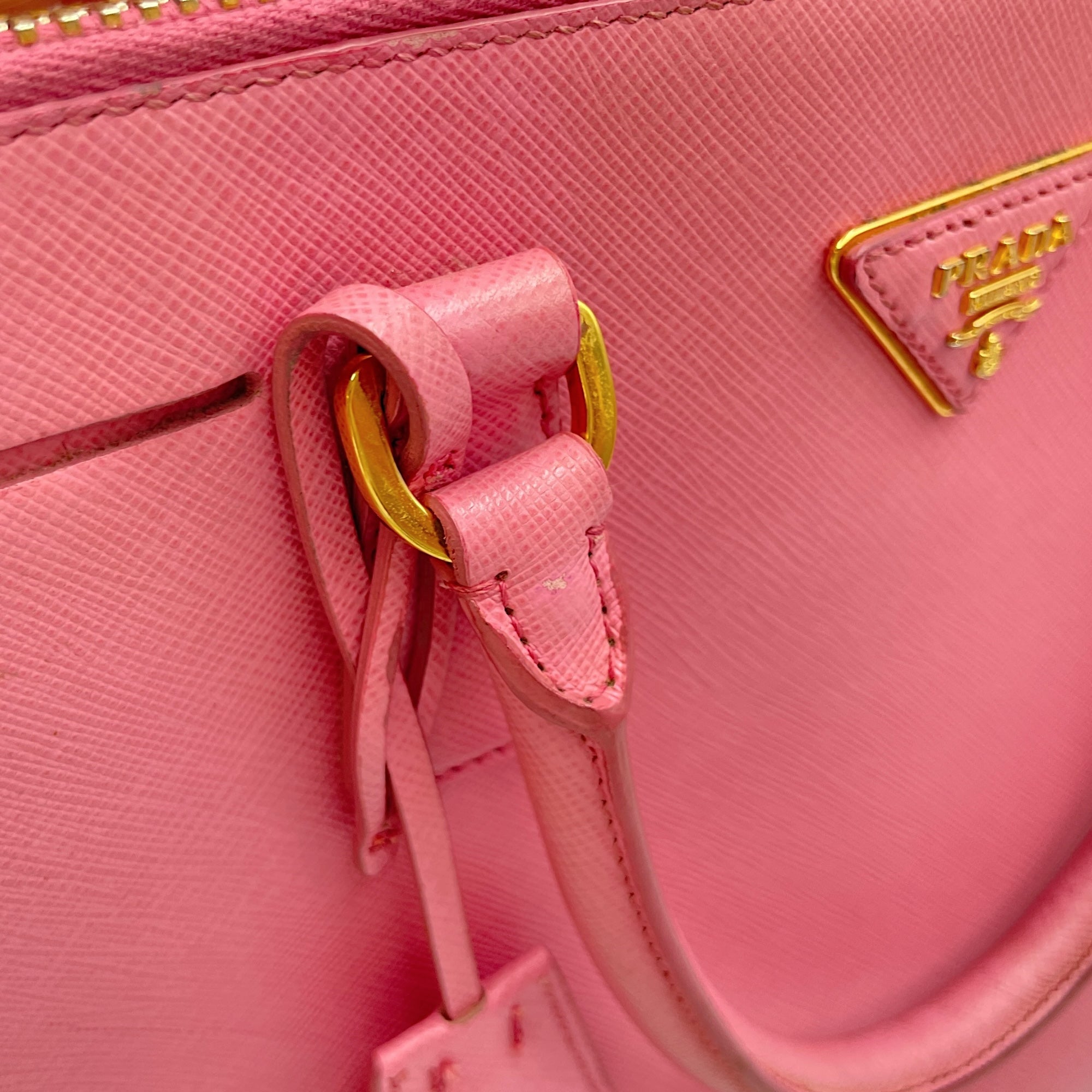 Be the first to review “Promenade Pink Top Handle Bag in Saffiano Leather, Gold hardware”