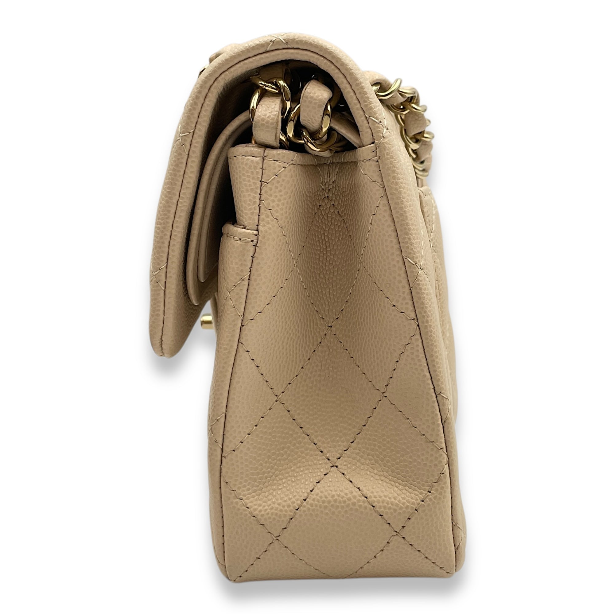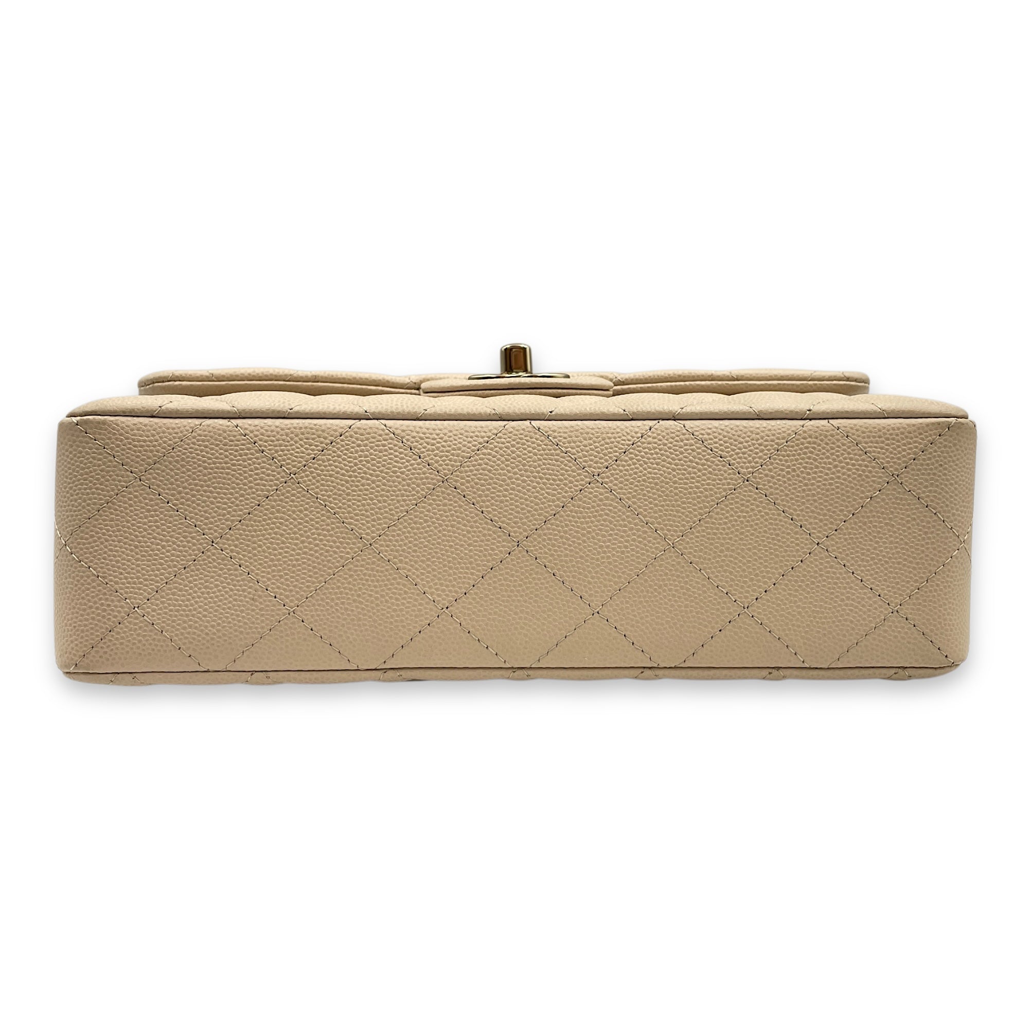 Quilted CC Classic Small Beige Double Flap Bag in Caviar Leather, Gold hardware