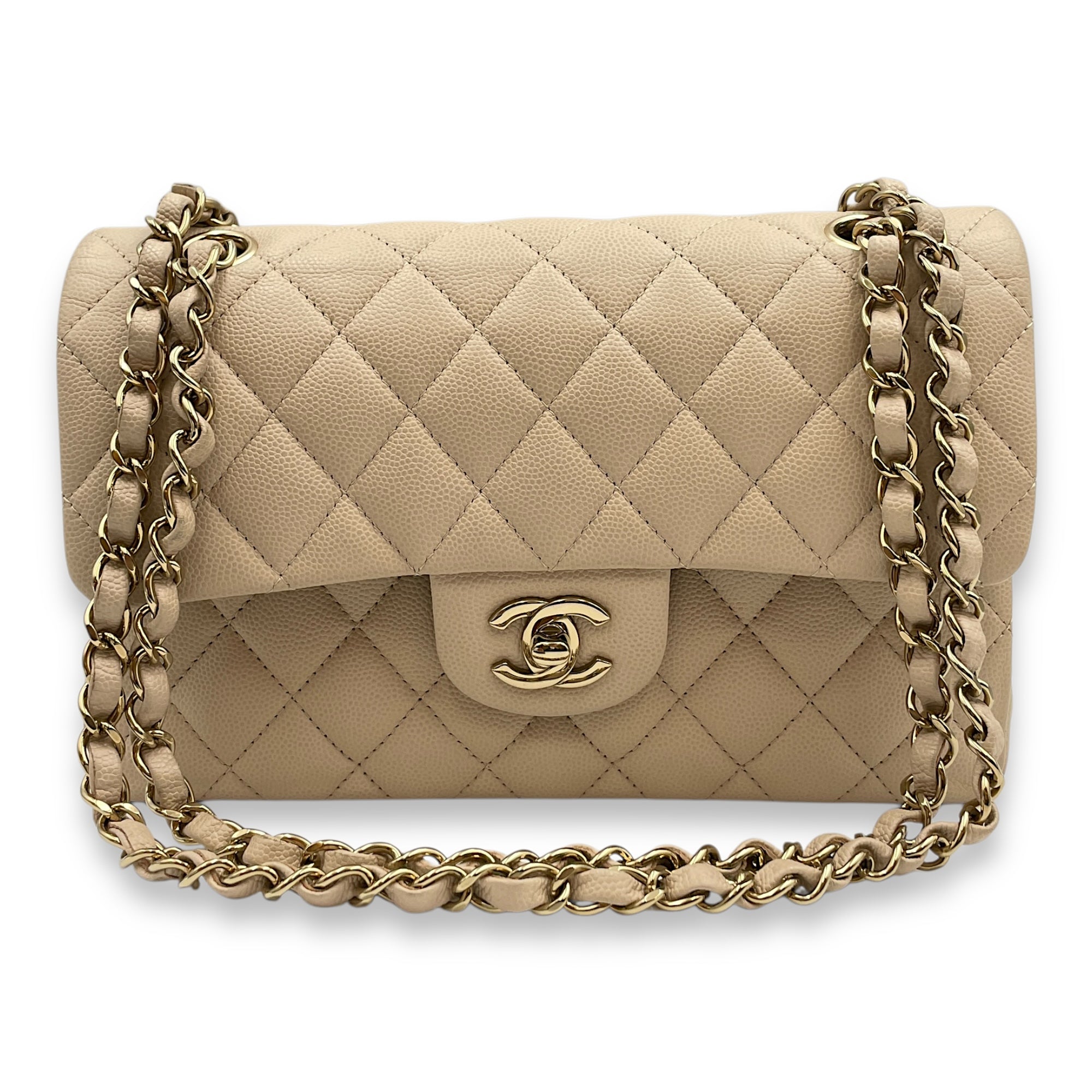 Be the first to review “Quilted CC Classic Small Beige Double Flap Bag in Caviar Leather, Gold hardware”