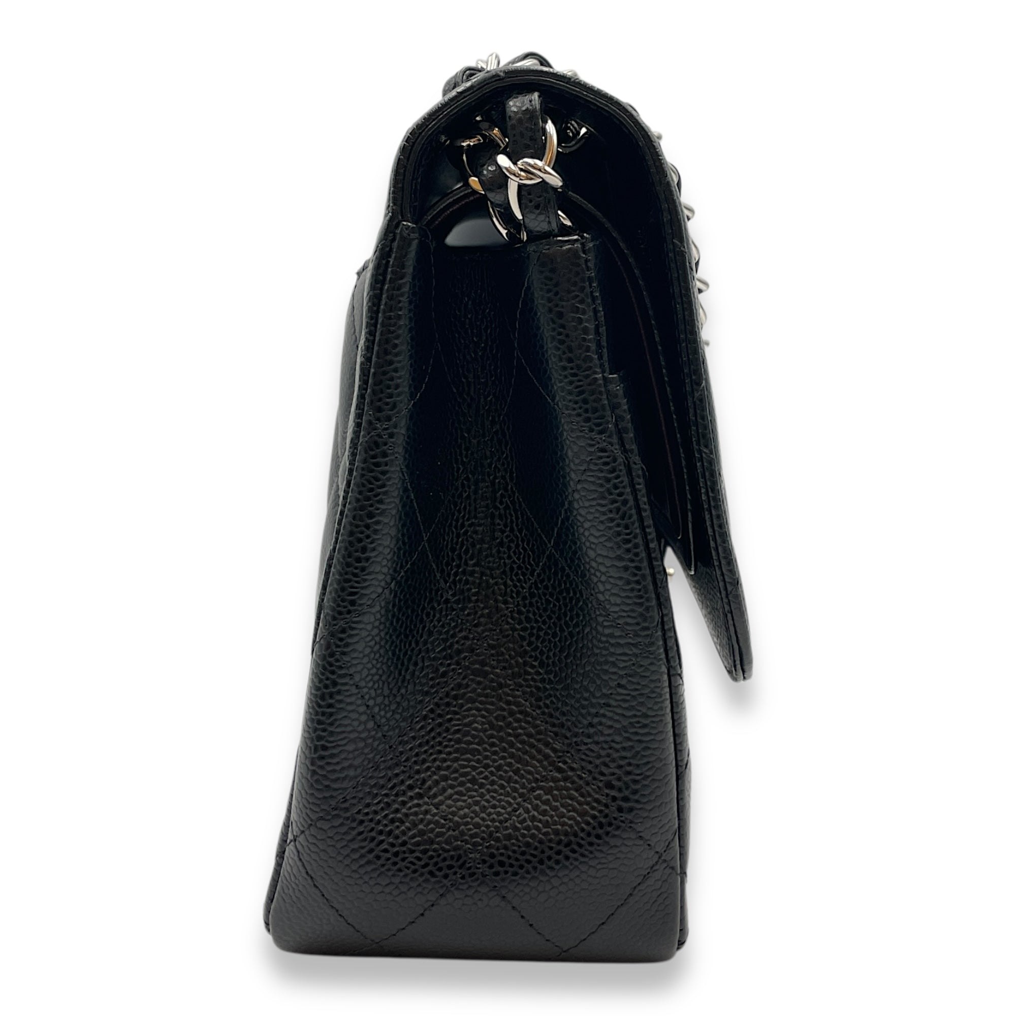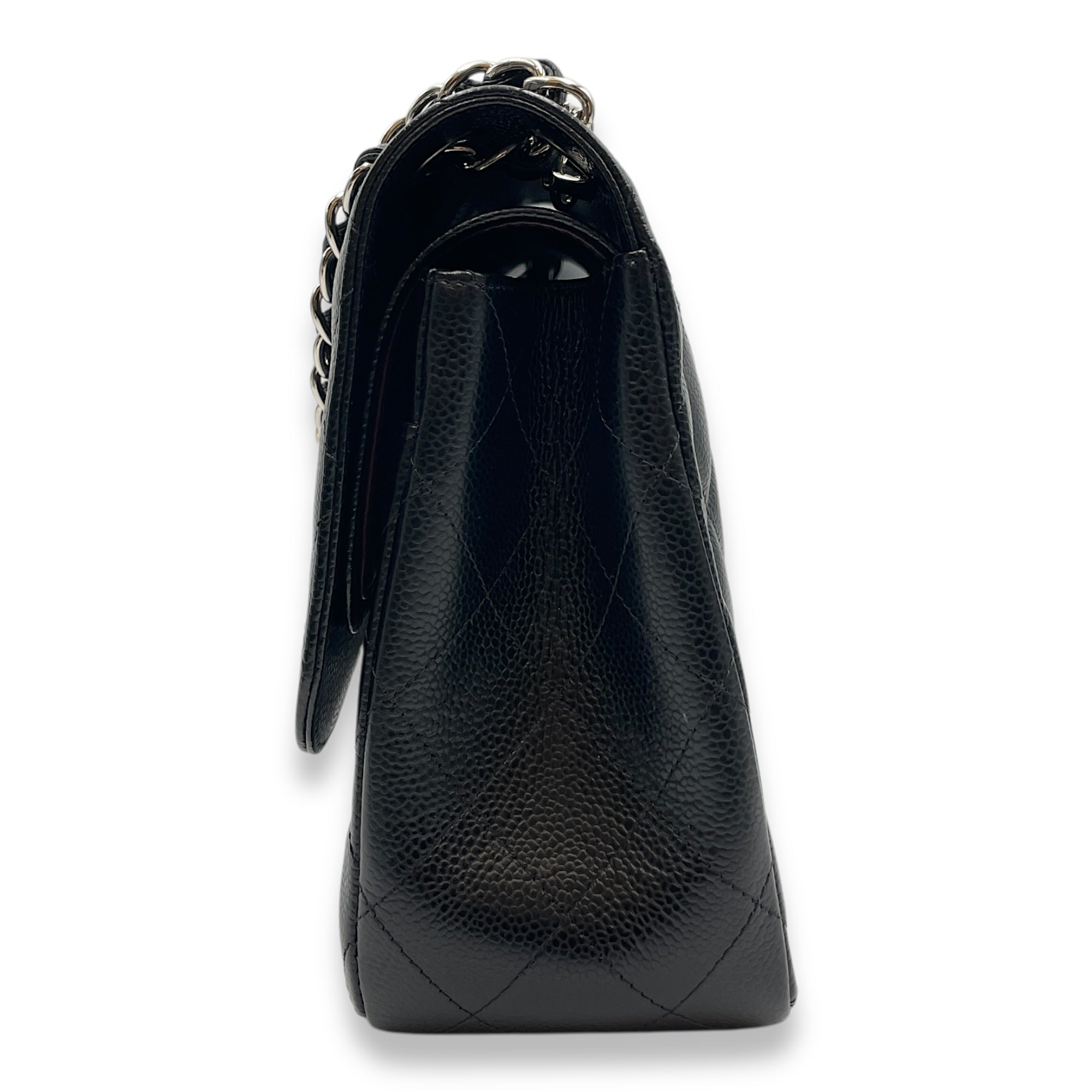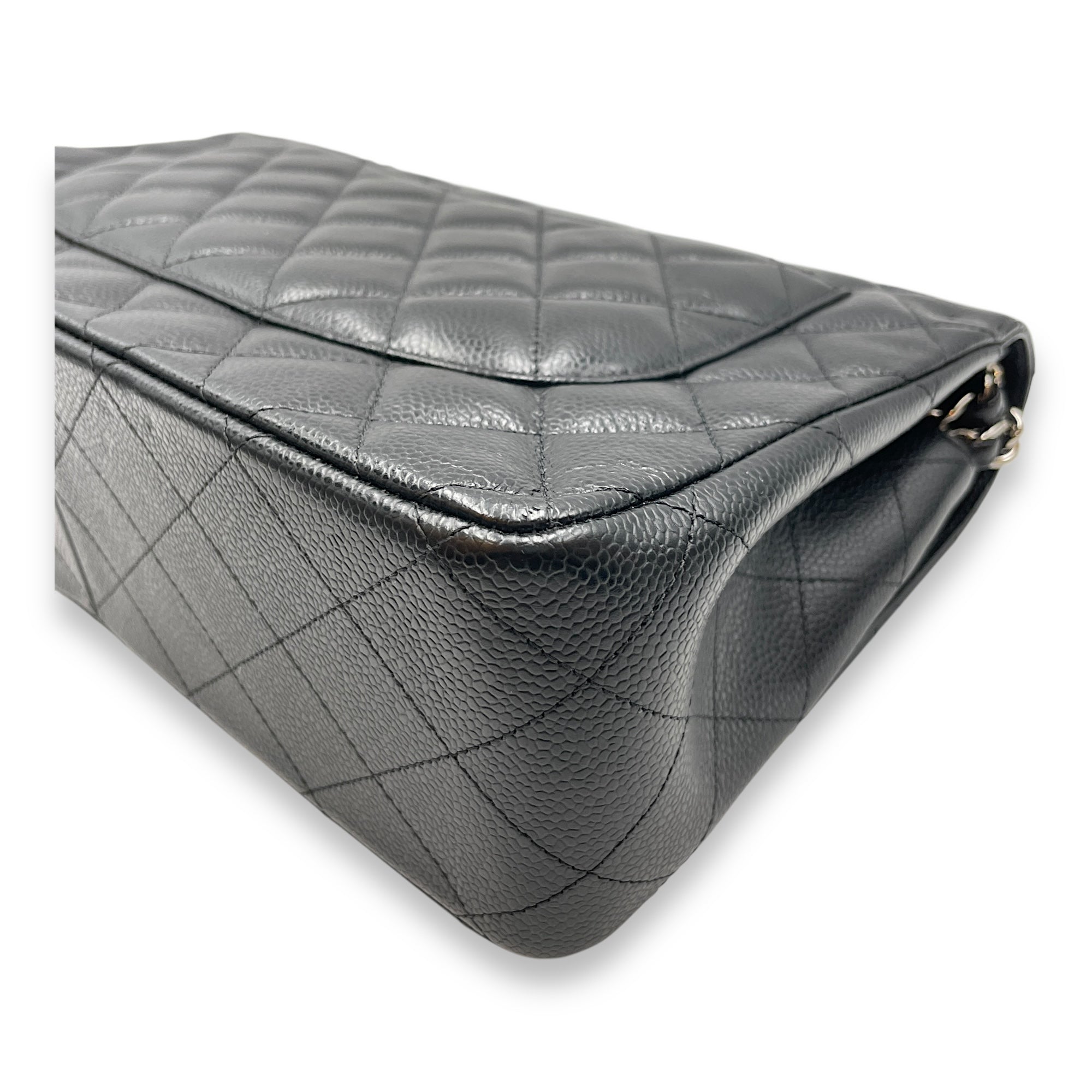 Quilted CC Jumbo Black Double Flap Bag in Caviar Leather, Silver hardware