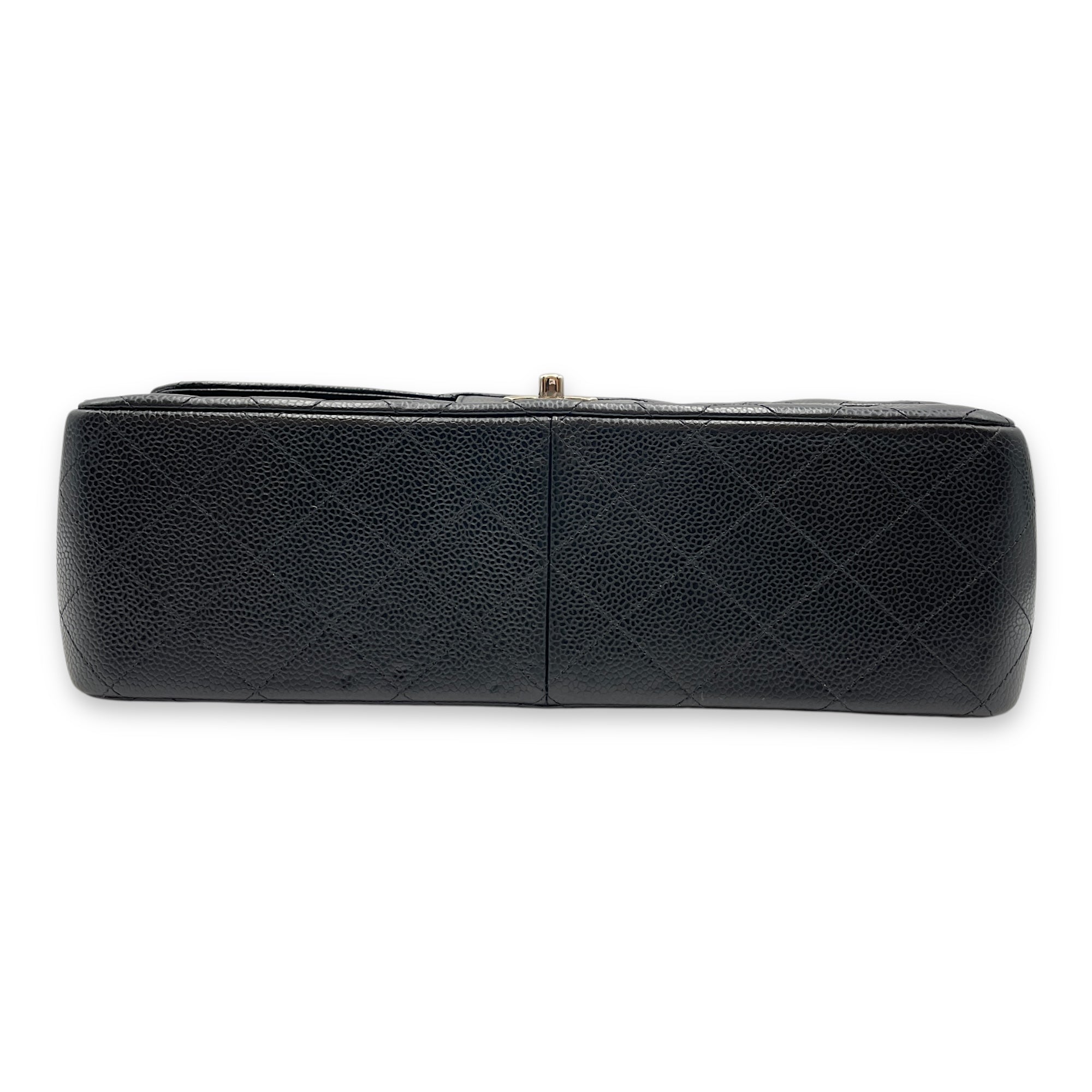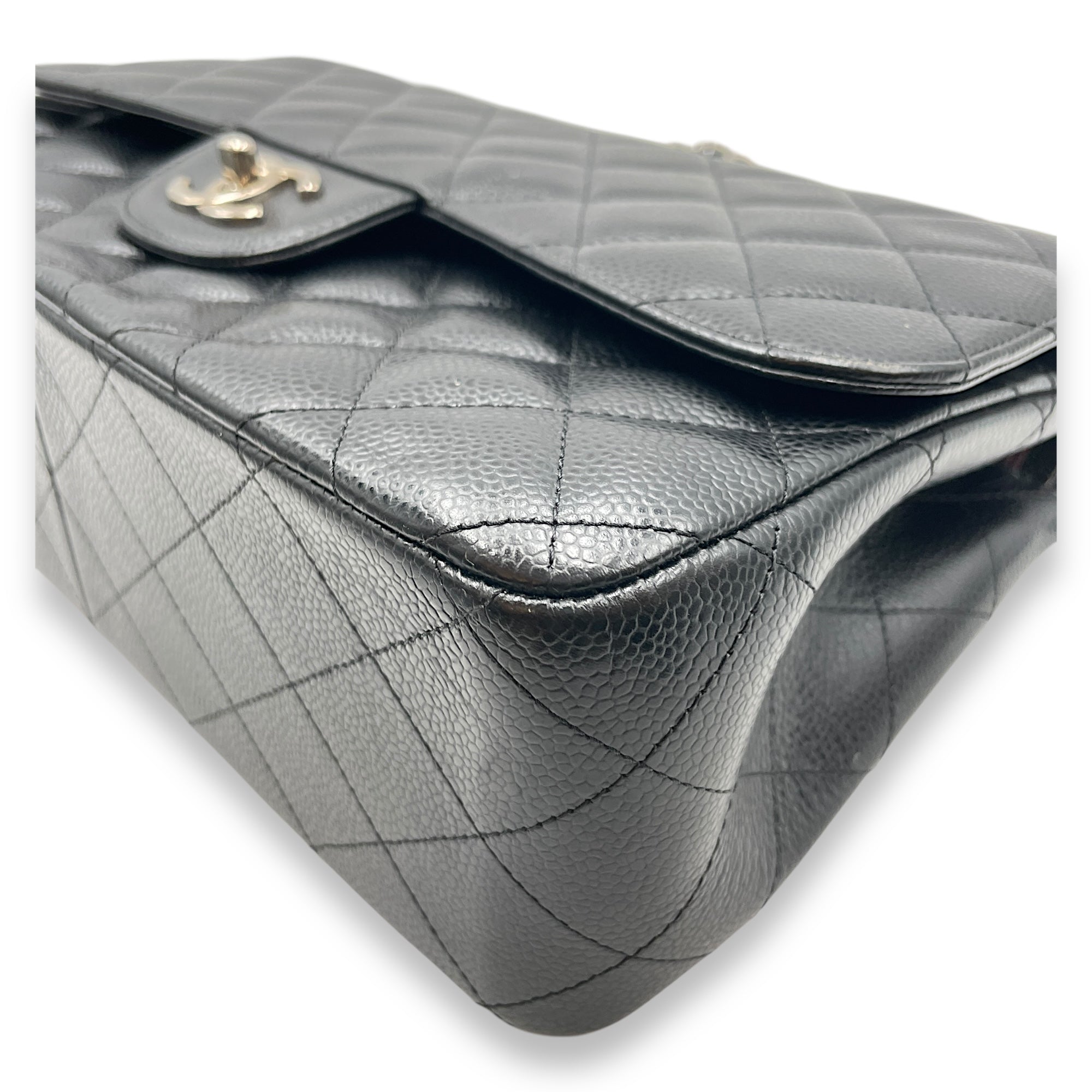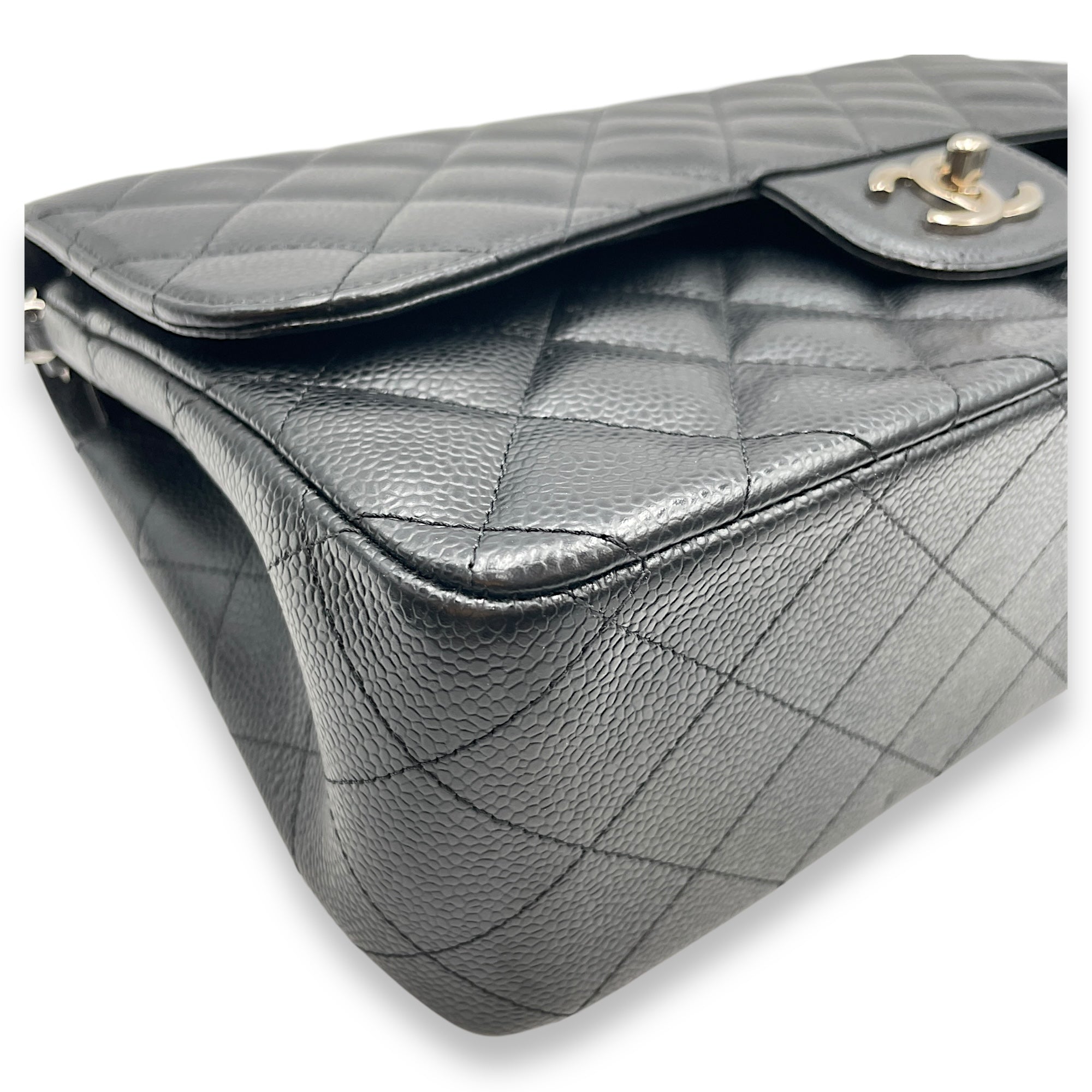 Quilted CC Jumbo Black Double Flap Bag in Caviar Leather, Silver hardware