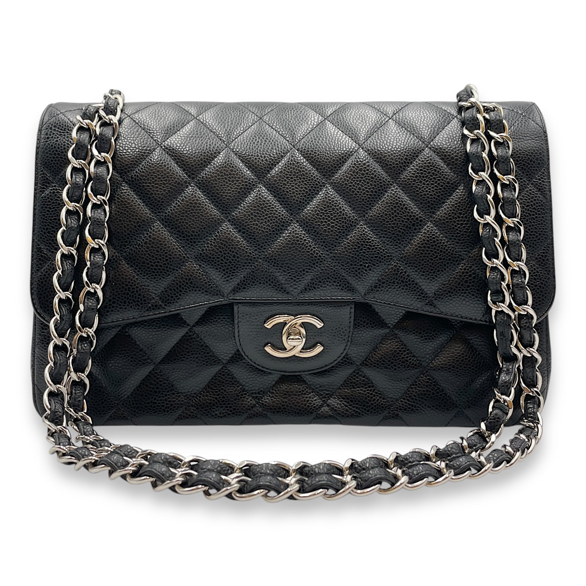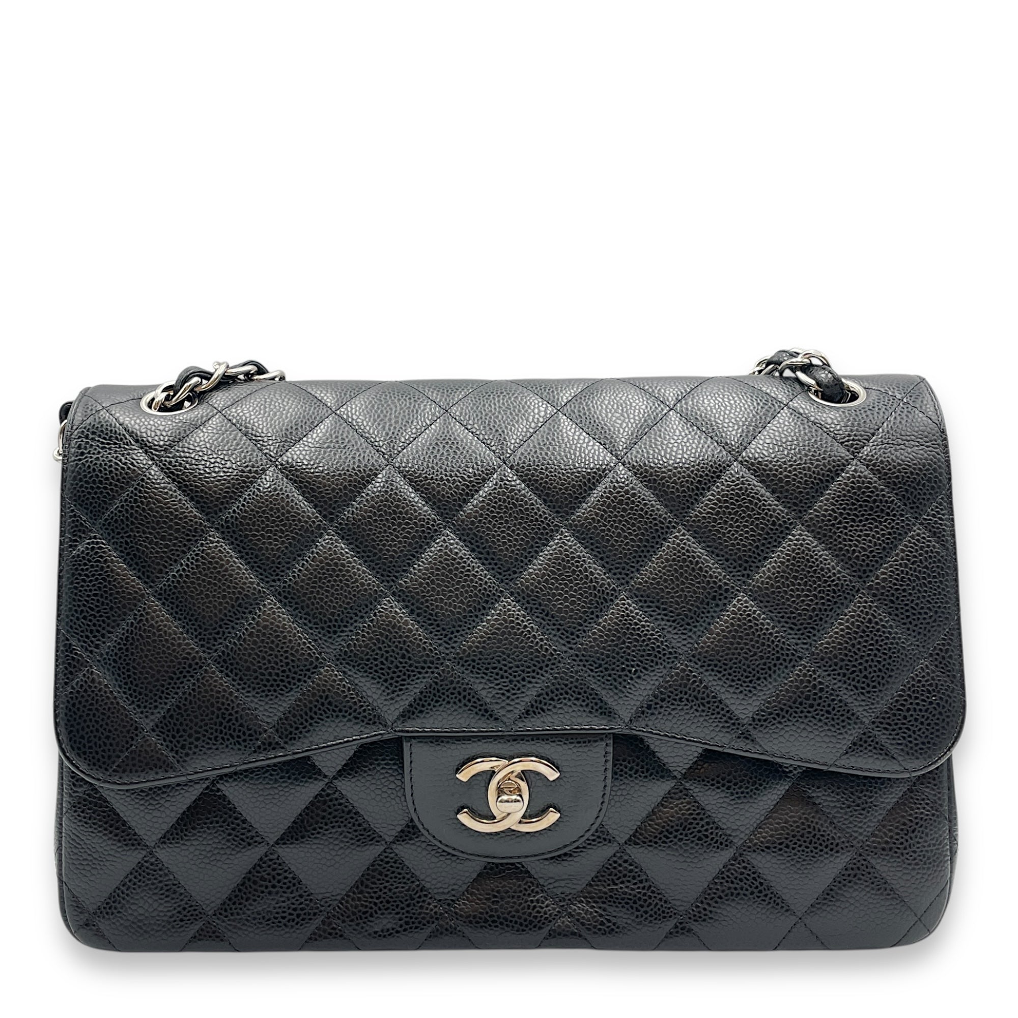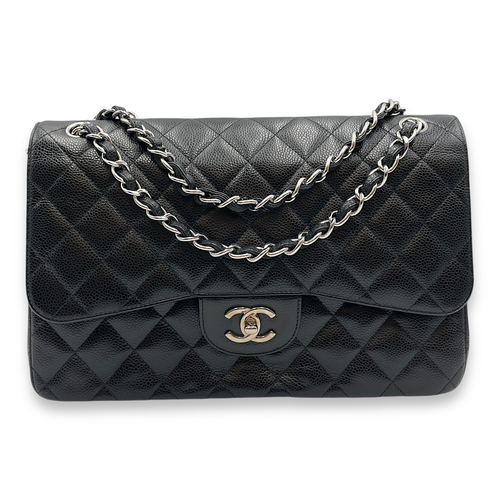 Be the first to review “Quilted CC Jumbo Black Double Flap Bag in Caviar Leather, Silver hardware”