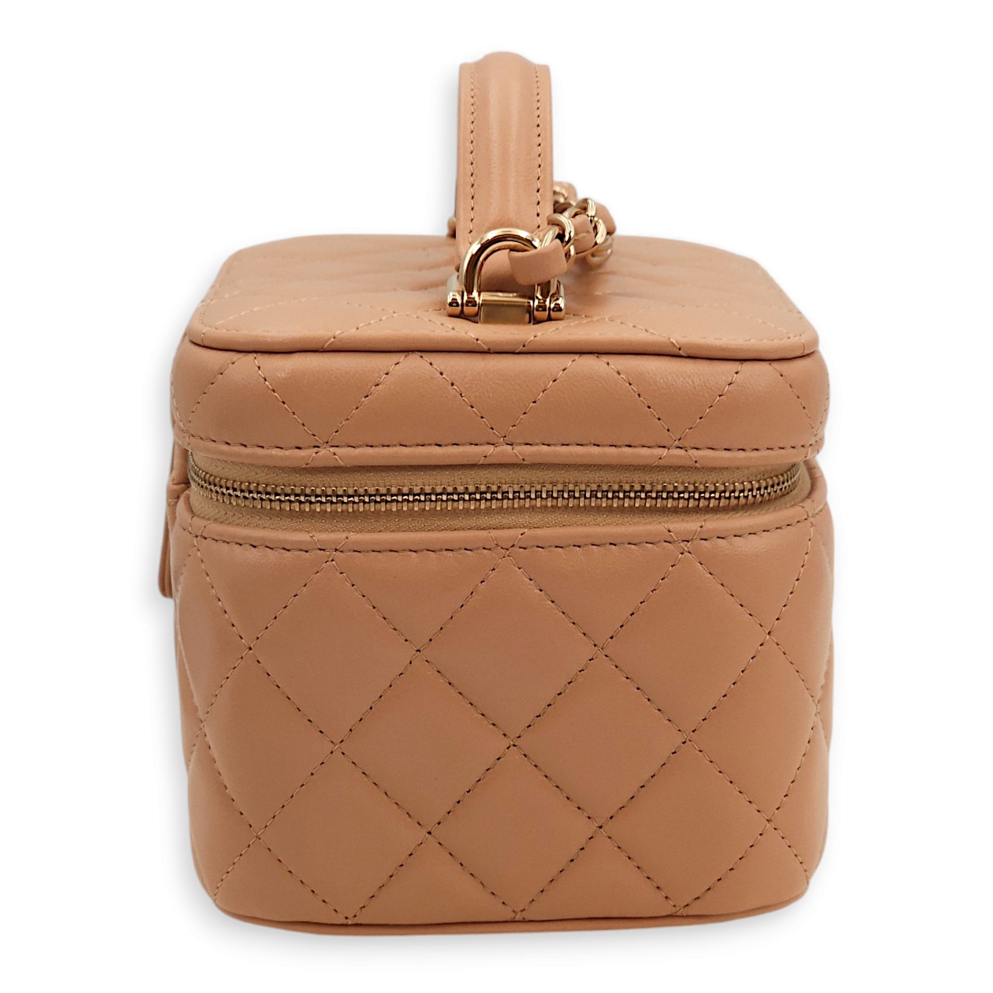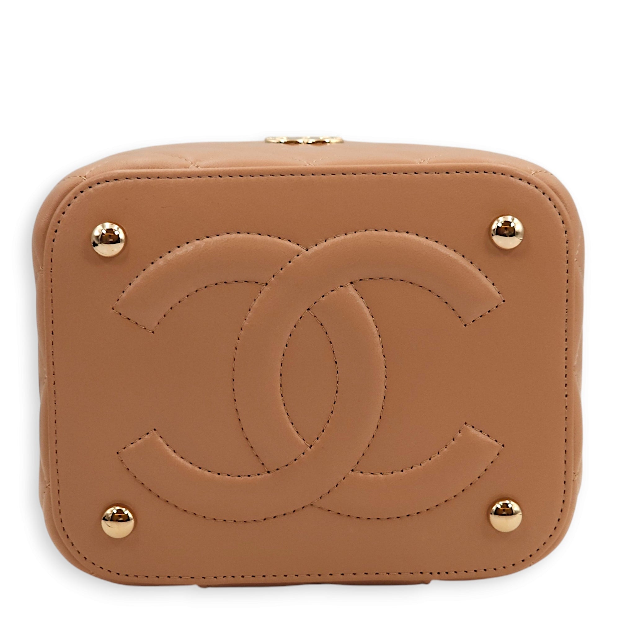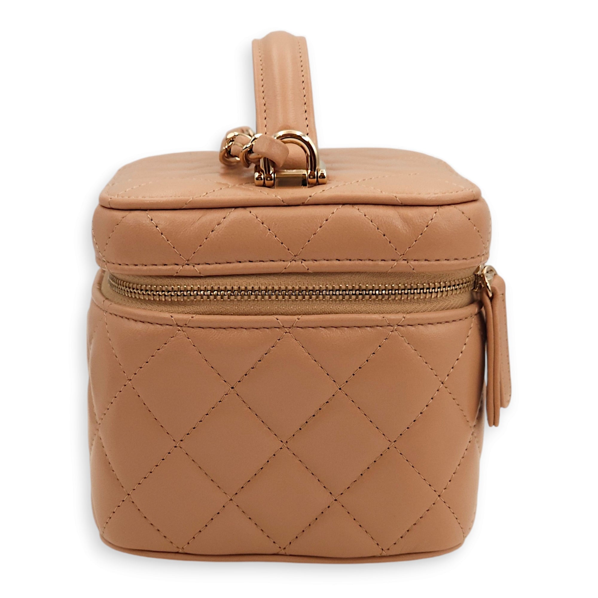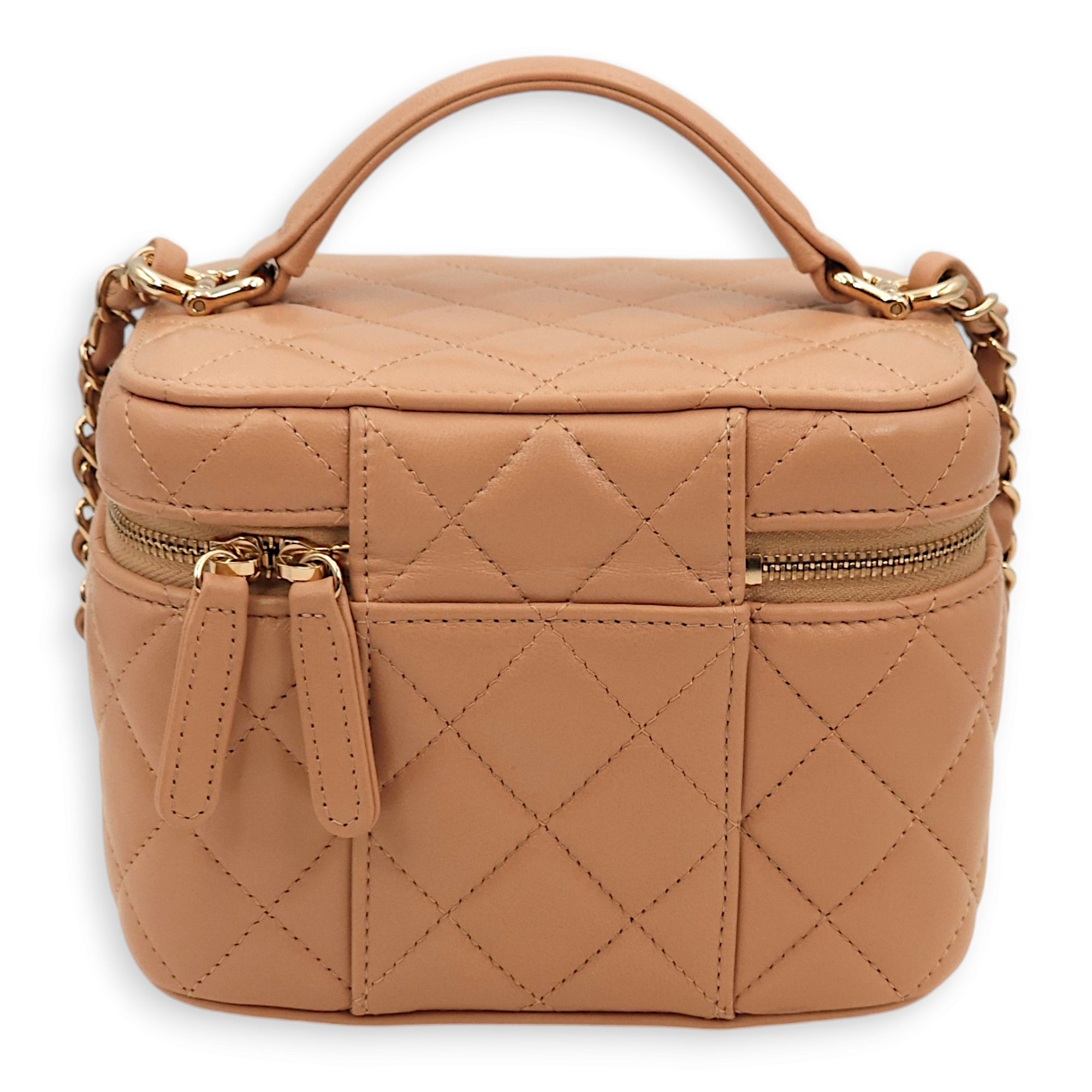 Quilted Vanity Beige Top Handle Bag in Lambskin, Gold hardware