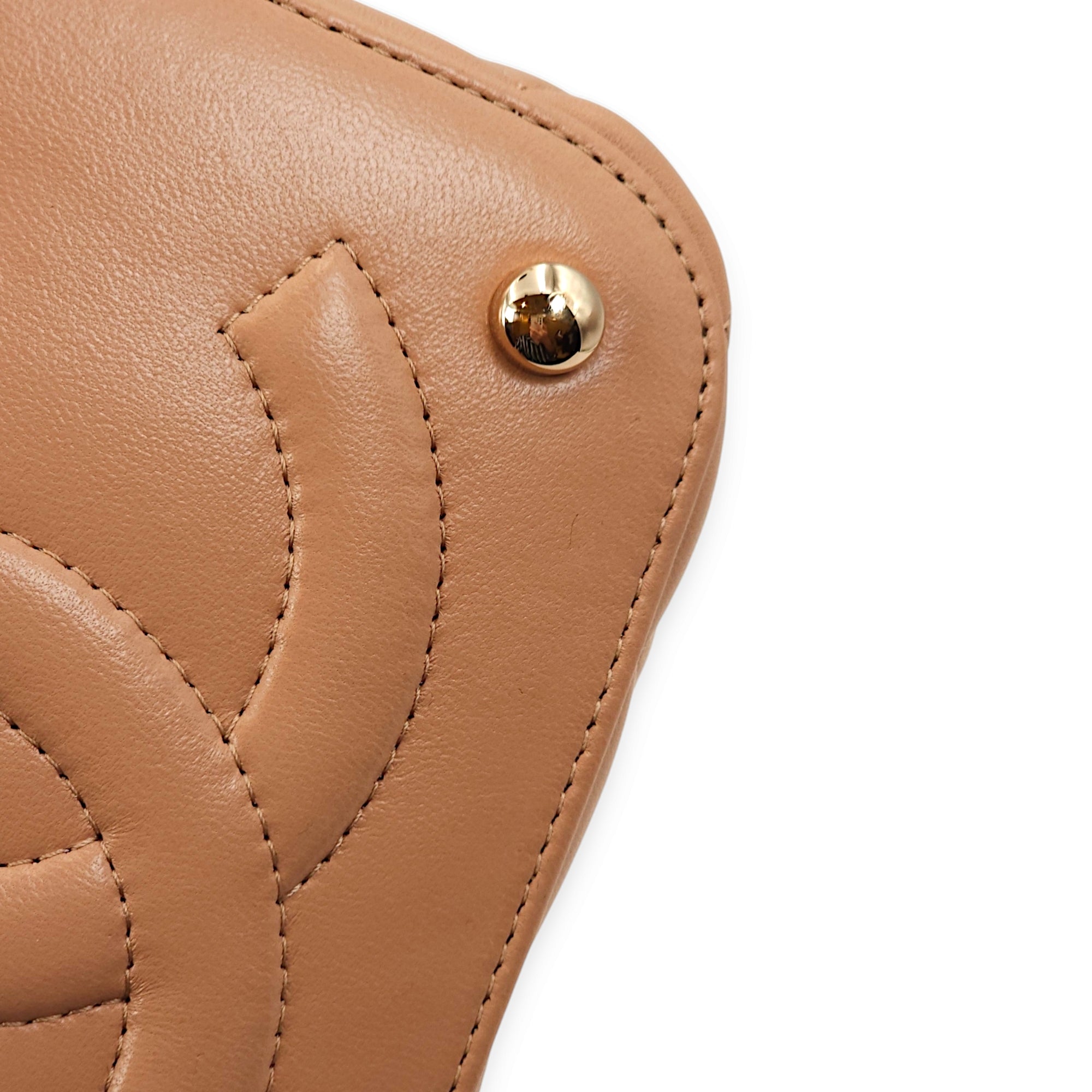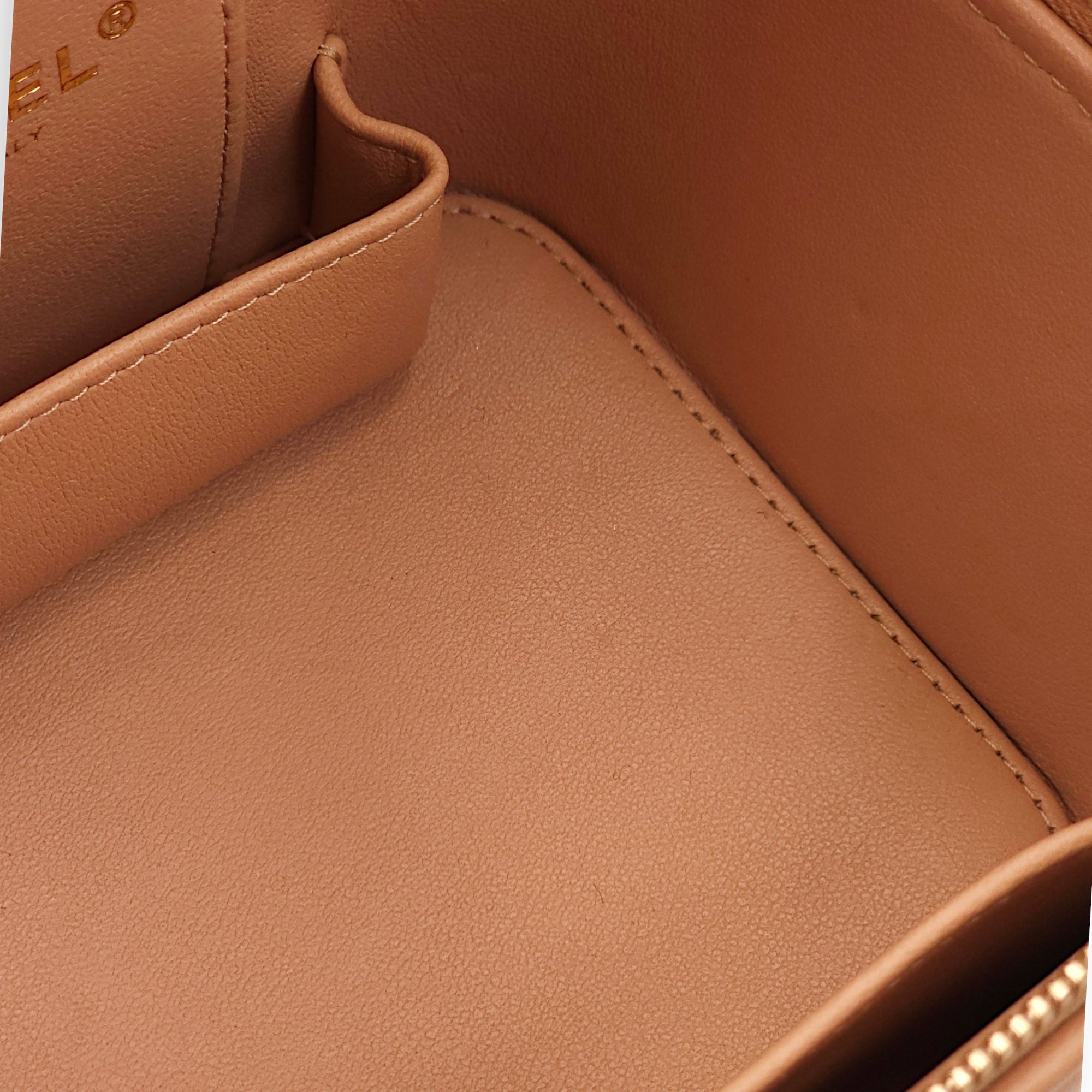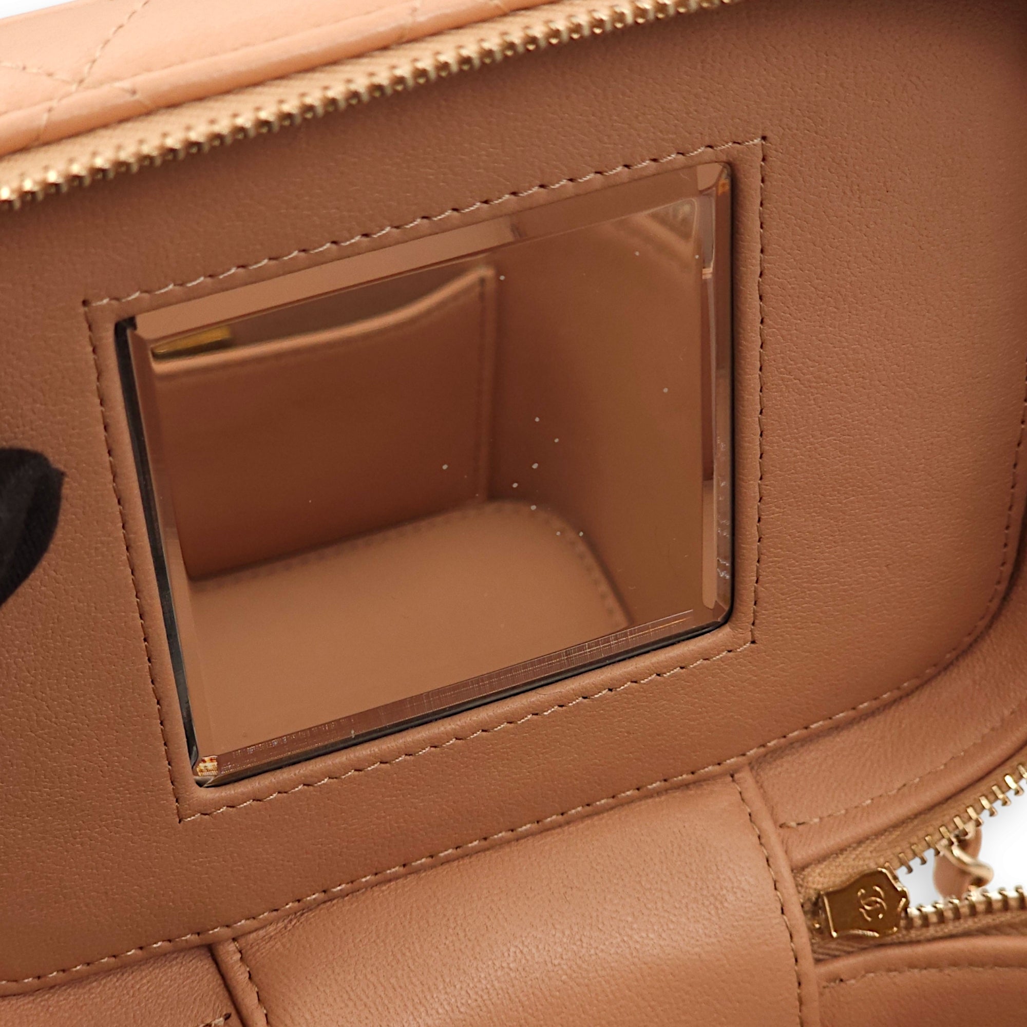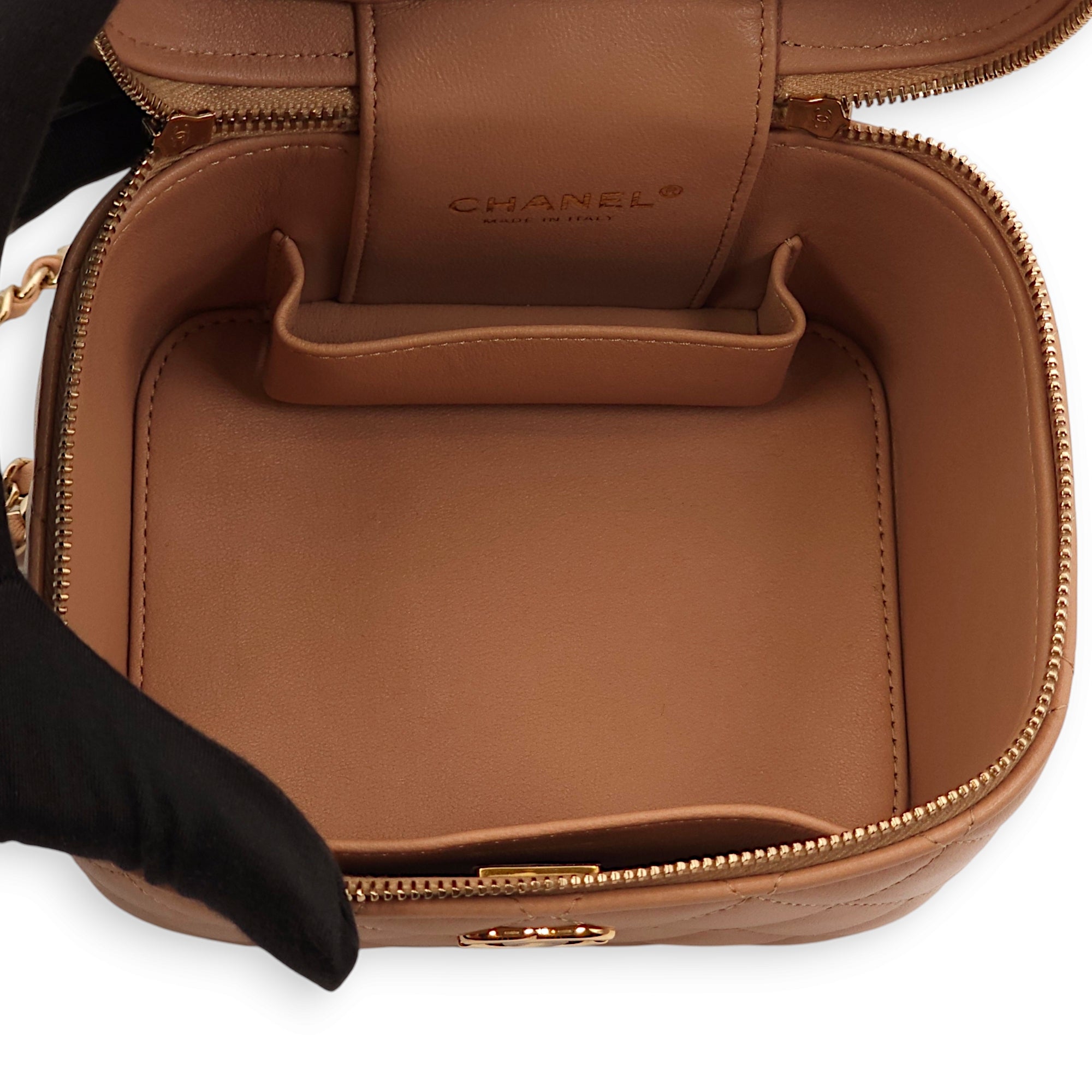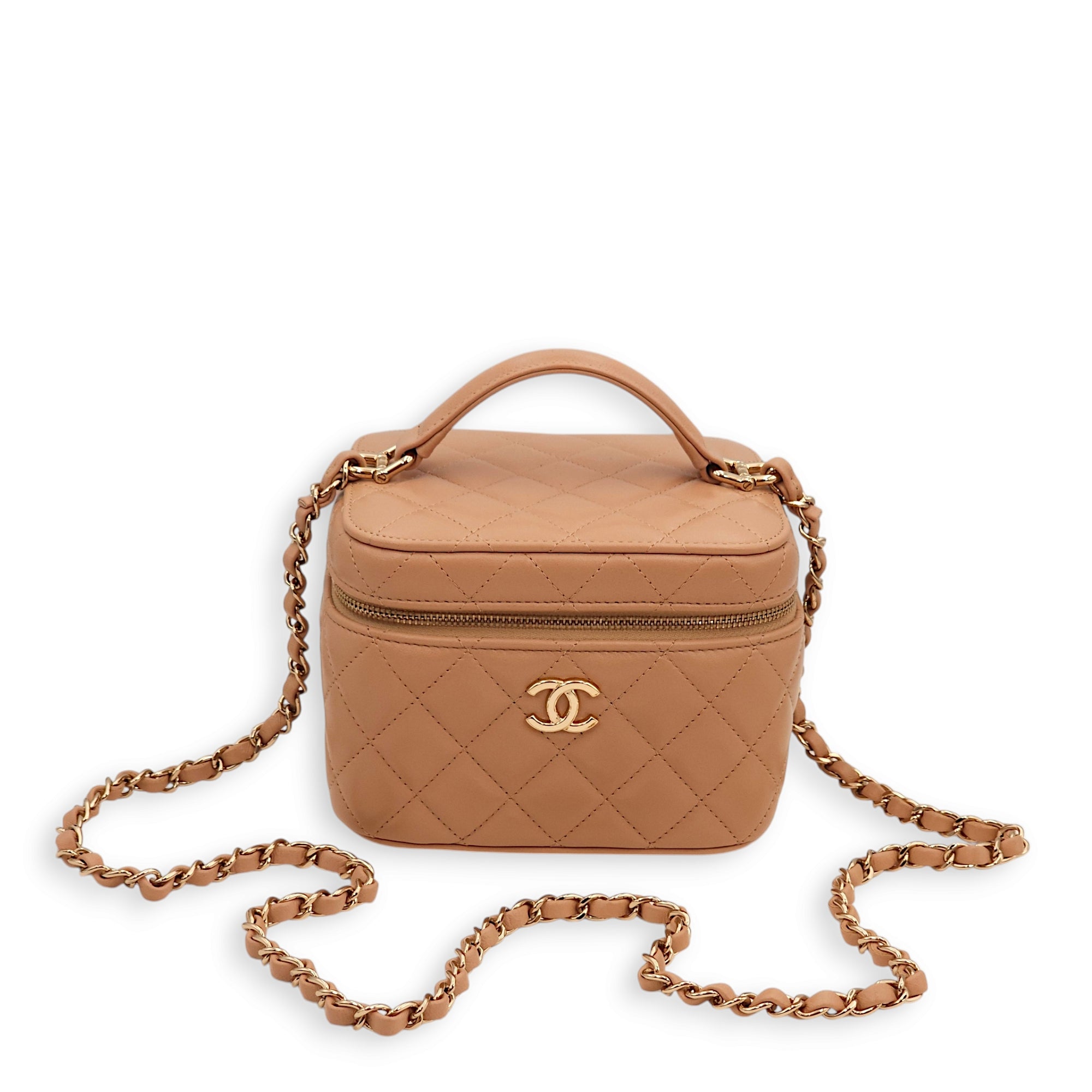 Quilted Vanity Beige Top Handle Bag in Lambskin, Gold hardware