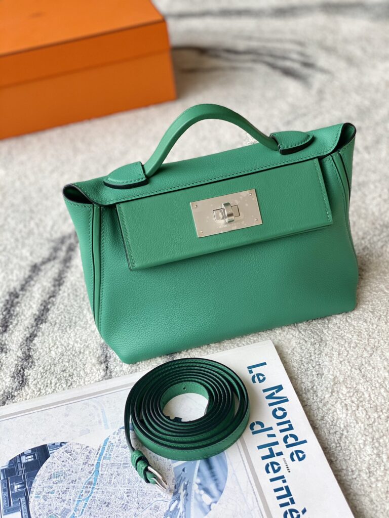 Includes ribbon, care booklet, dust bag, paper bag and box.