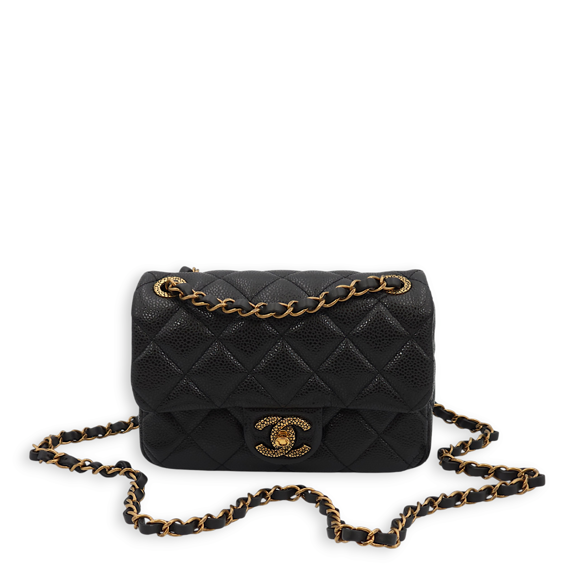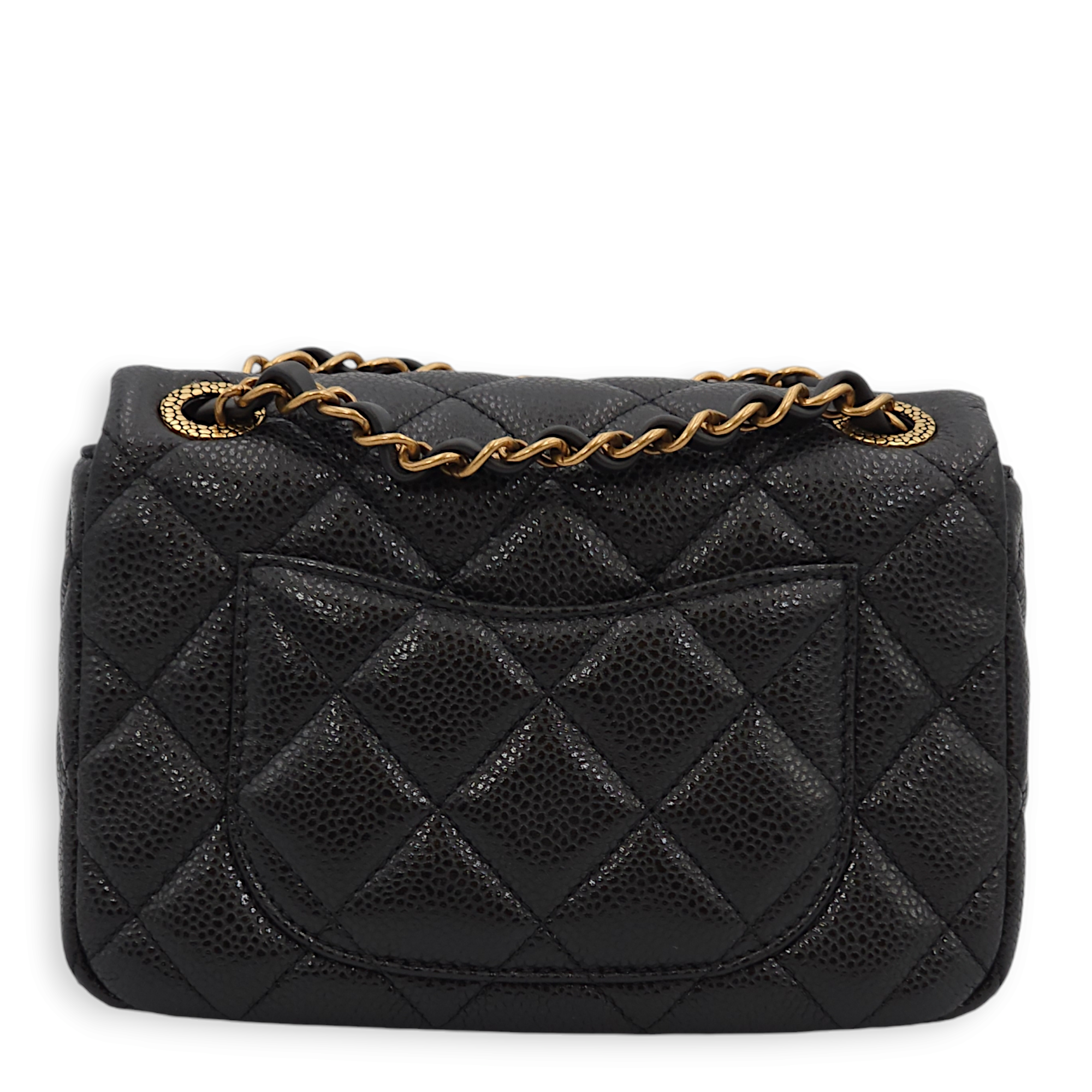 Be the first to review “Seasonal Quilted Flap Mini Black Crossbody Bag in Caviar Leather, Gold hardware”