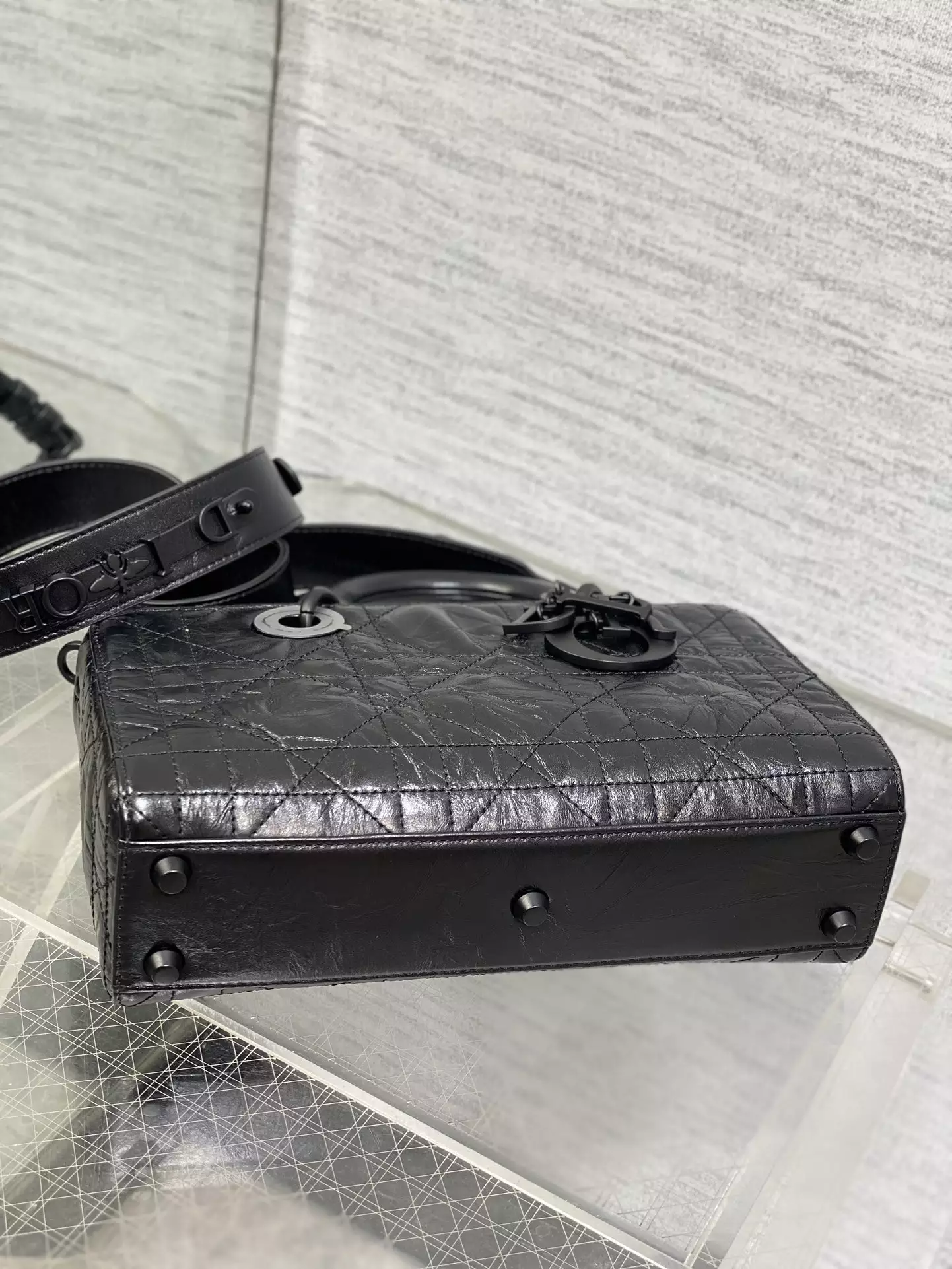#LadyDSireBag #BlackCrinkledCalfskin #MacrocannageTopstitching #DIORCharms #CustomizableStrap #UrbanChic #FashionAccessory #LuxuryBag #VersatileWear