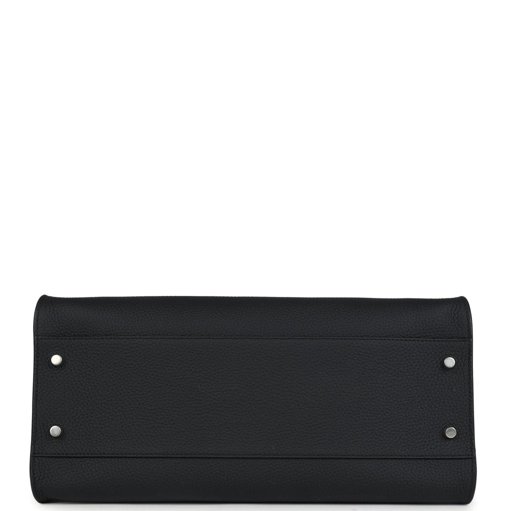 This Soft Margaux Shoulder 12 Top Handle Bag is in black matte grained calfskin leather with silver hardware, featuring tonal stitching, double rolled handles, adjustable belted gusseted side panels, a removable leather shoulder strap, and an interior toggle closure.The interior is lined in black calfskin leather and beige canvas and has two interior card slots and one interior zip pocket.Origin: ItalyCondition: New and never worn (plastic on hardware)Accompanied by: Dustbag, carebookMeasurements: 14.25″ x 8″ x 6″; Top Handles: 10″