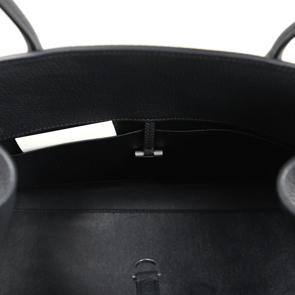 The Row Soft Margaux Shoulder 12 Bag Black Calfskin Silver Hardware Shop for an authentic The Row Soft Margaux 12 Top Handle Bag is in black calfskin leather with silver hardware in new and never worn condition at Madison Avenue Couture.