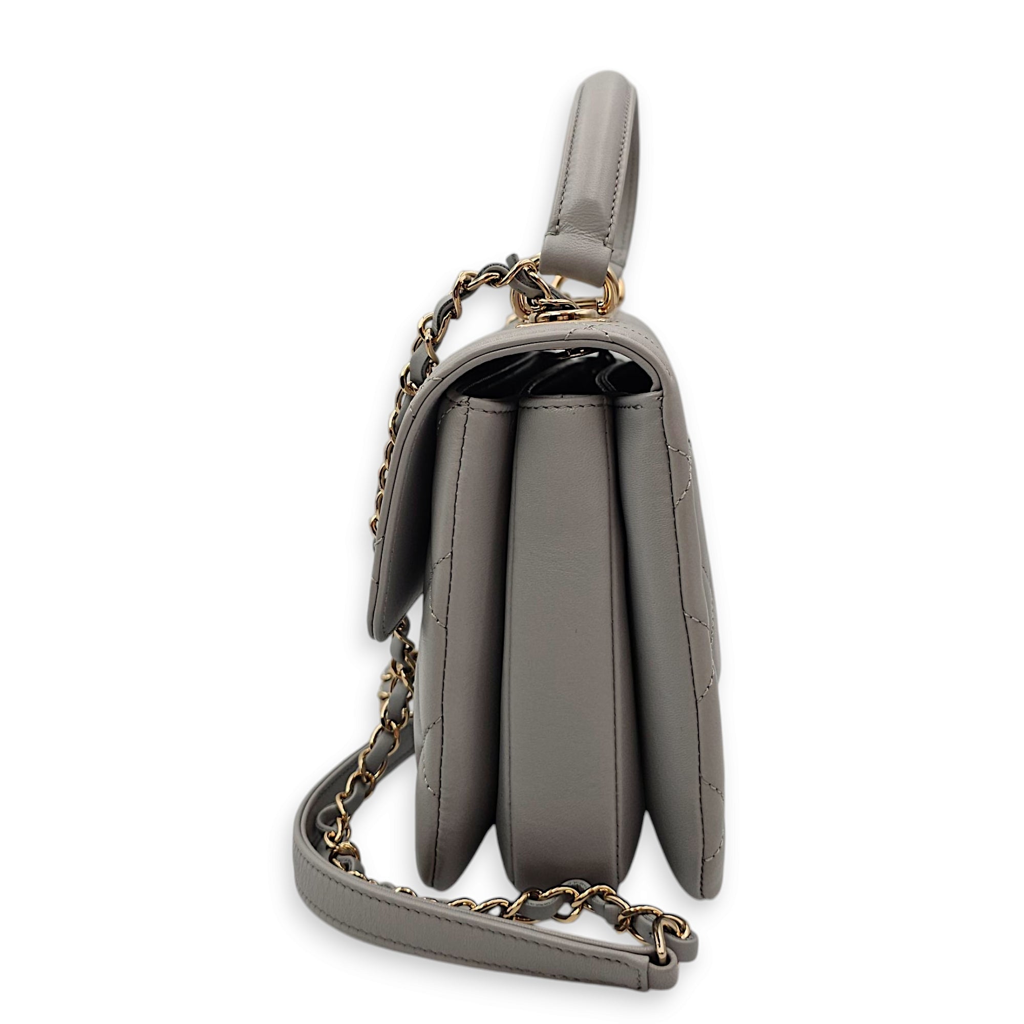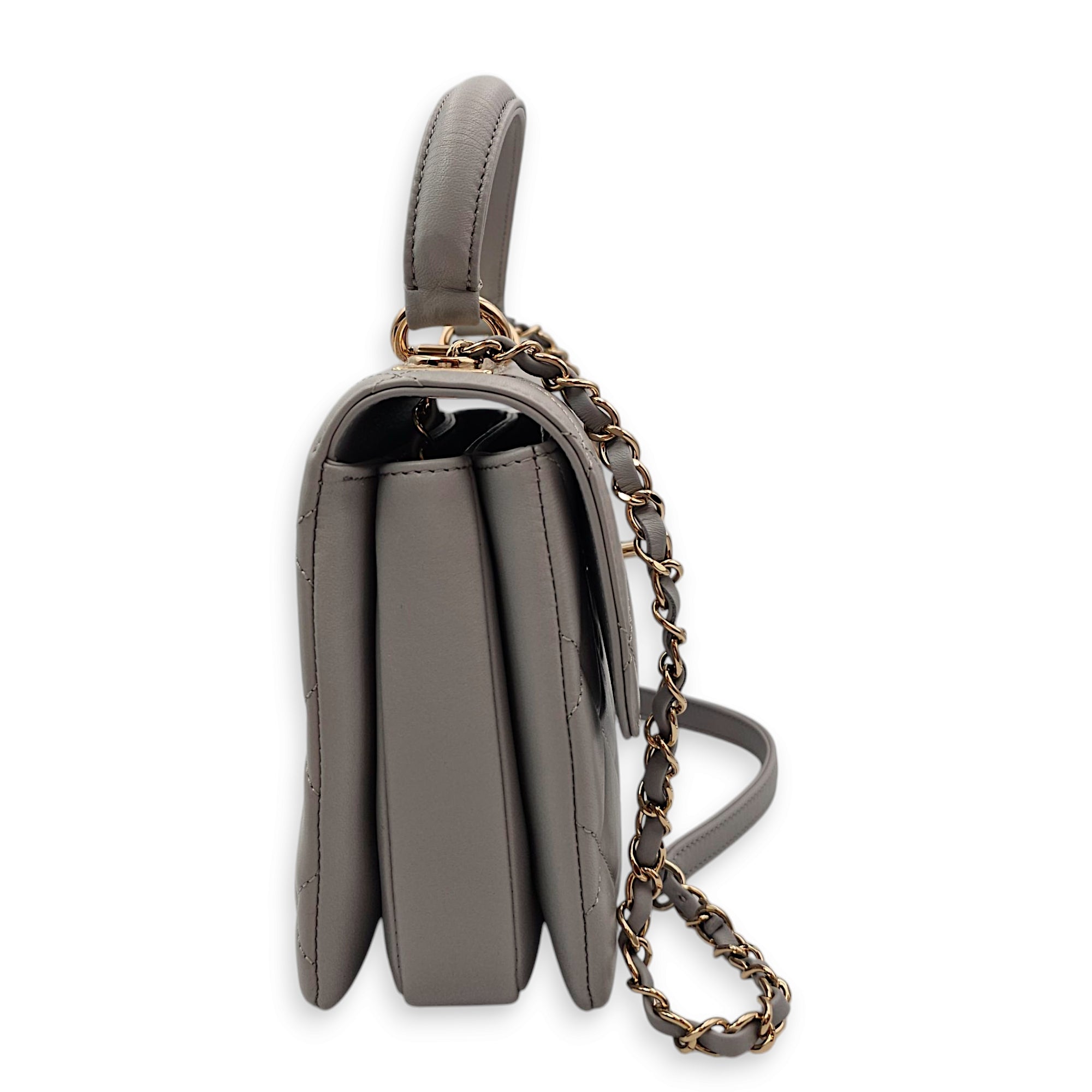 Trendy CC Flap Small Grey Shoulder Bag in Lambskin, Gold hardware