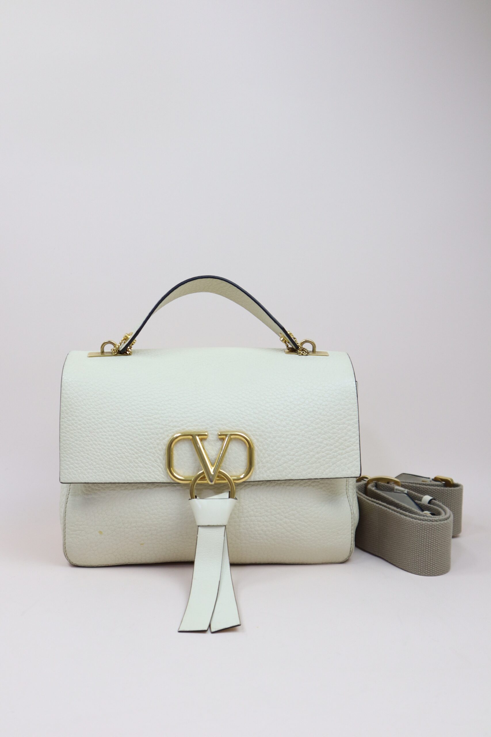 Valentino Off White V Ring Flap Chain Crossbody Bag