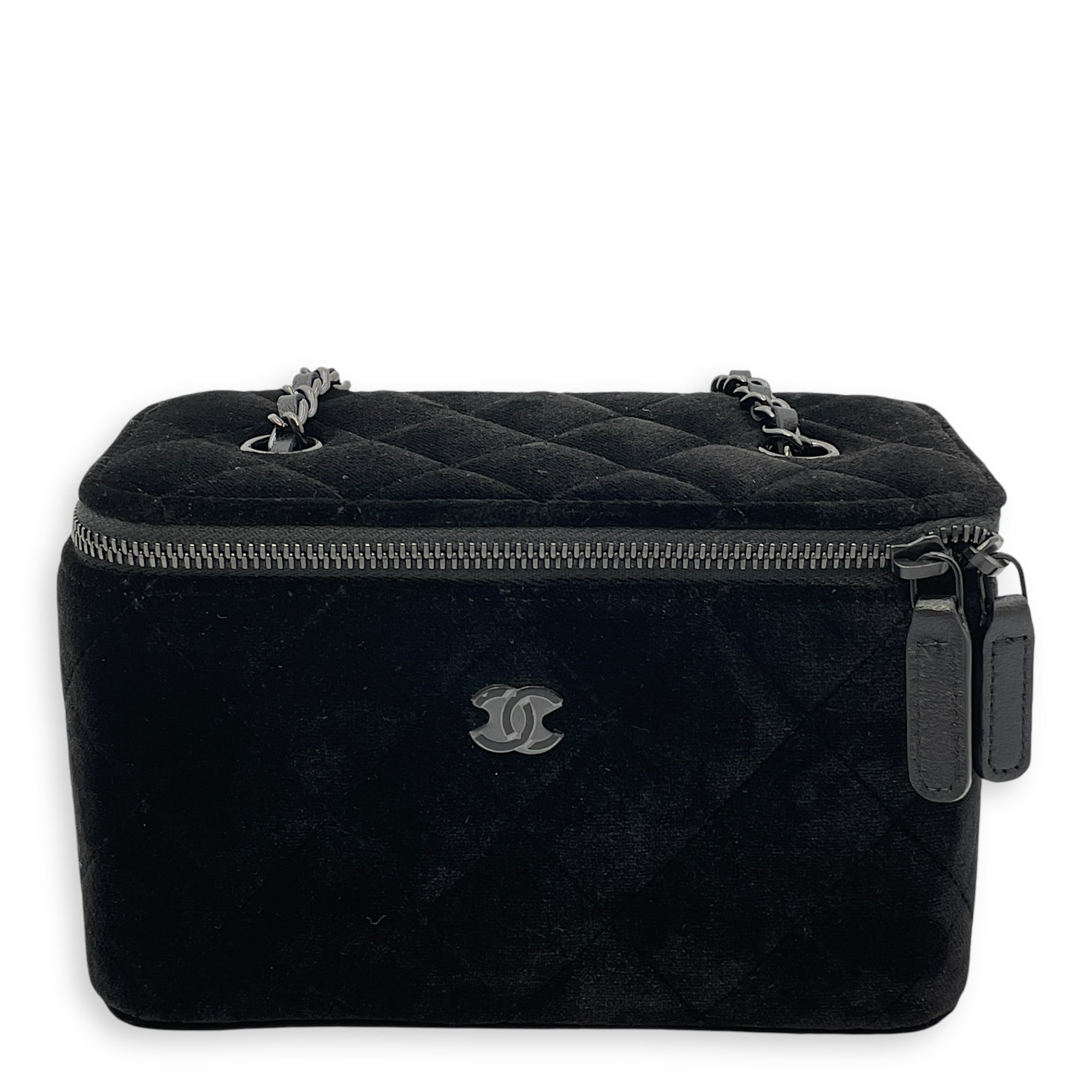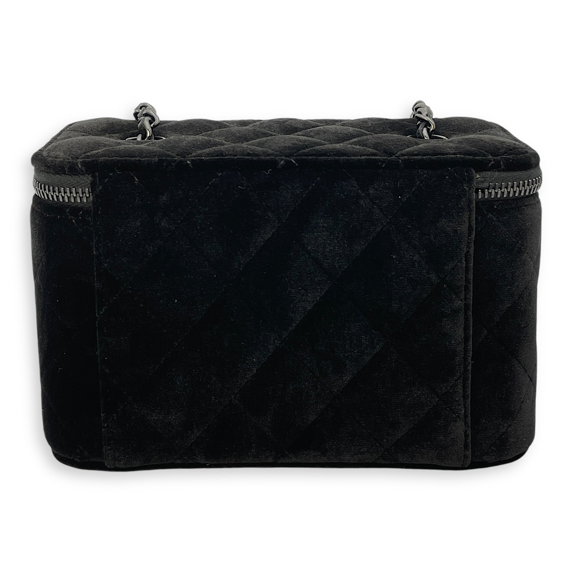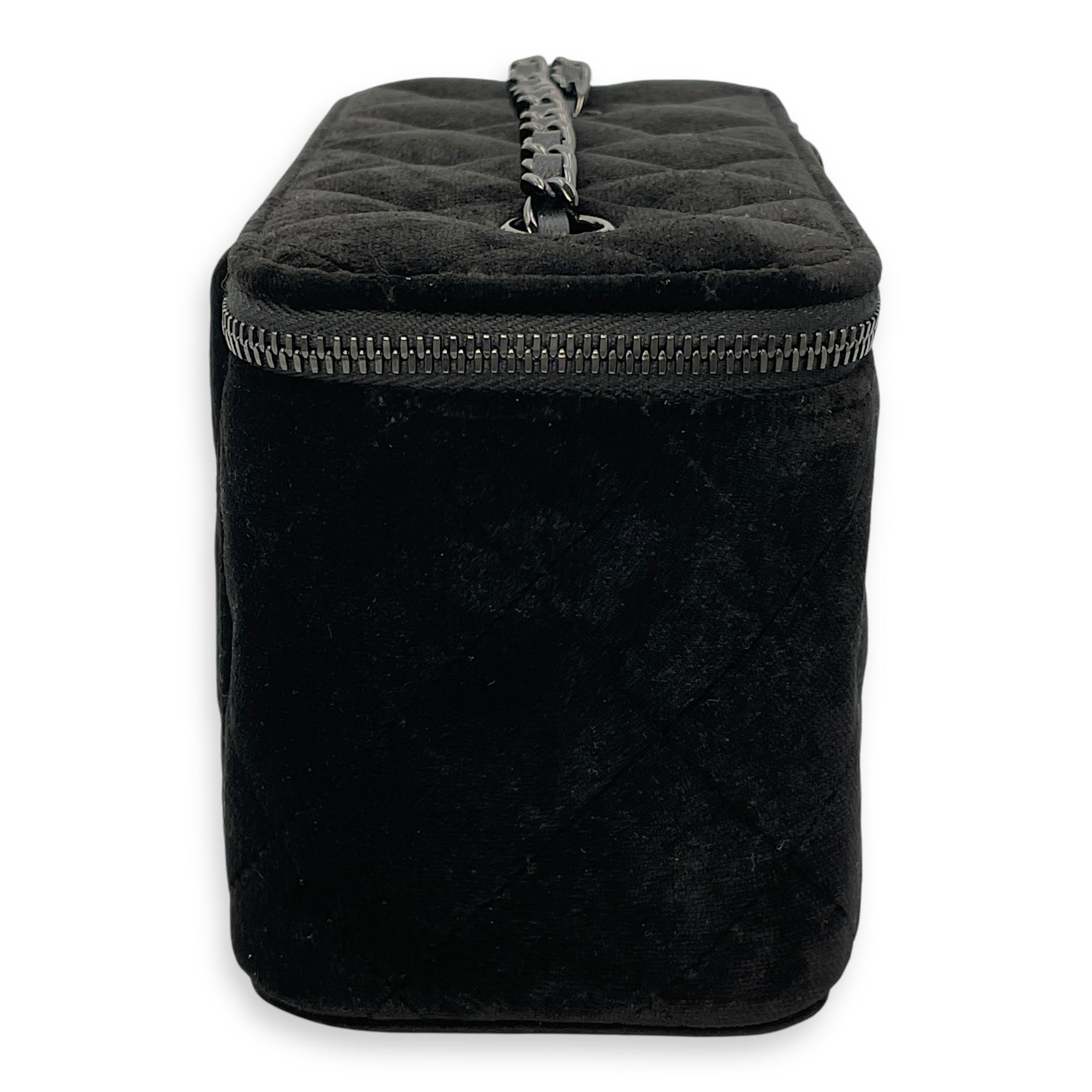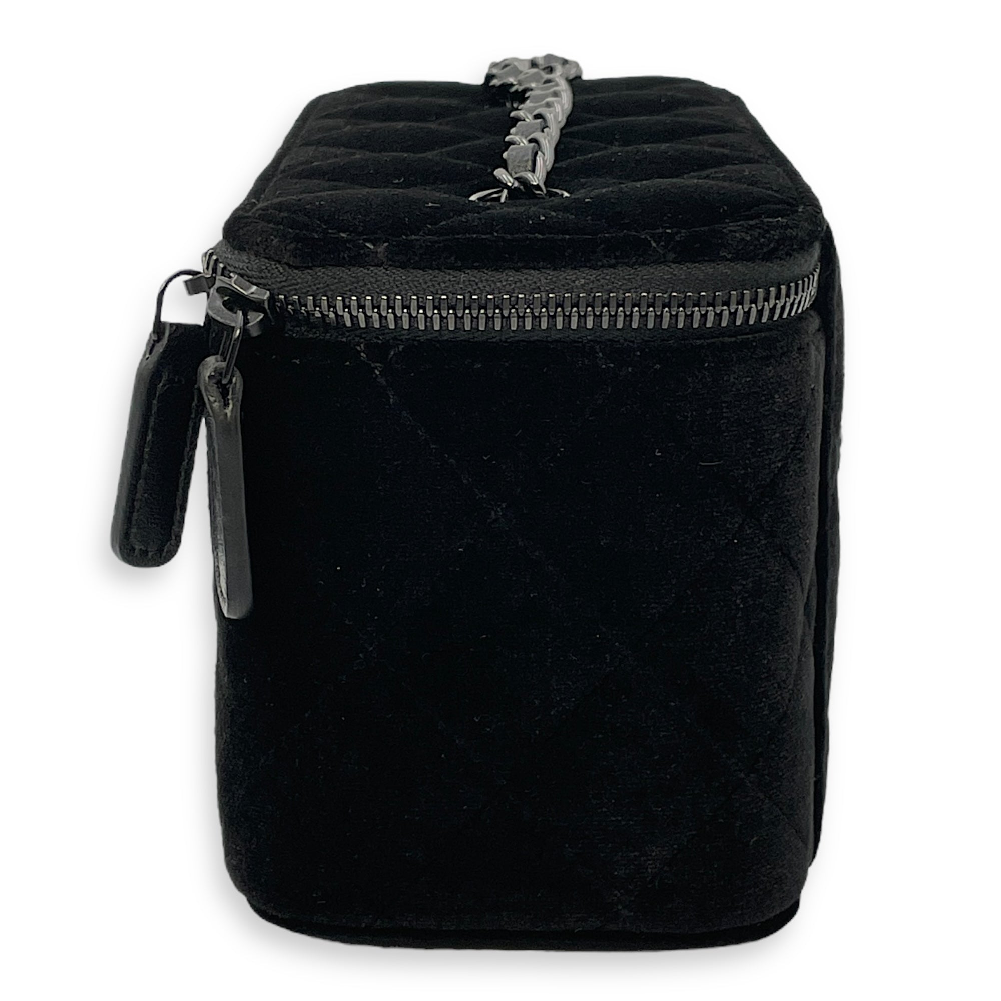 Vanity Black Crossbody Bag in Velvet, Silver hardware