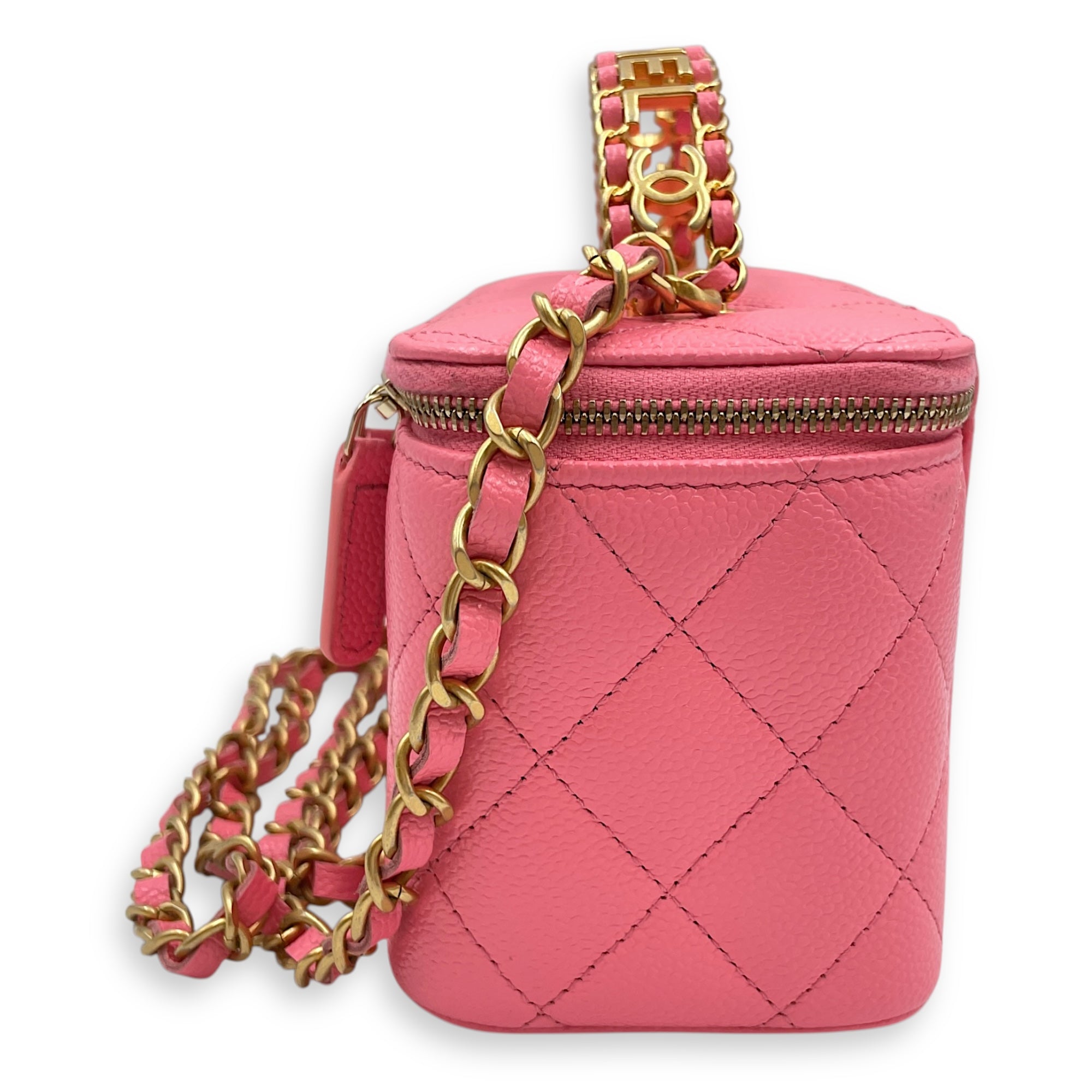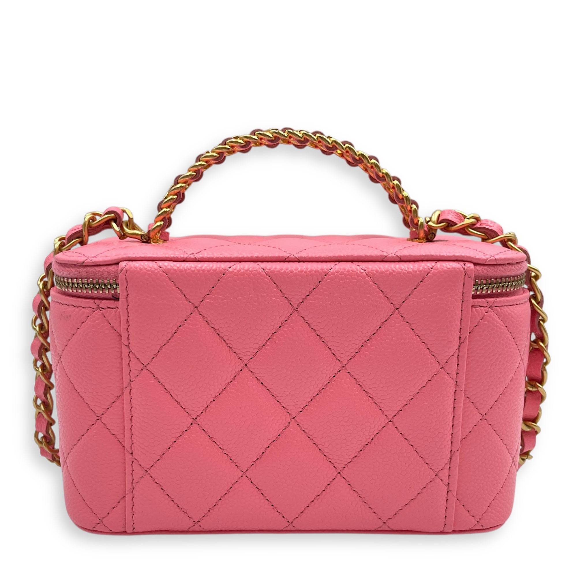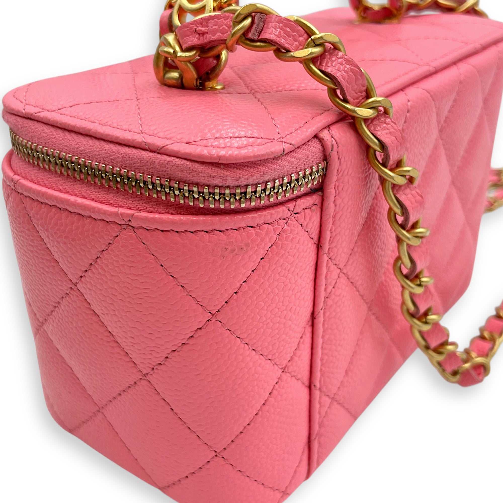 Vanity Rectangular Case Mini Pink Crossbody Bag in Caviar Leather, Gold hardware