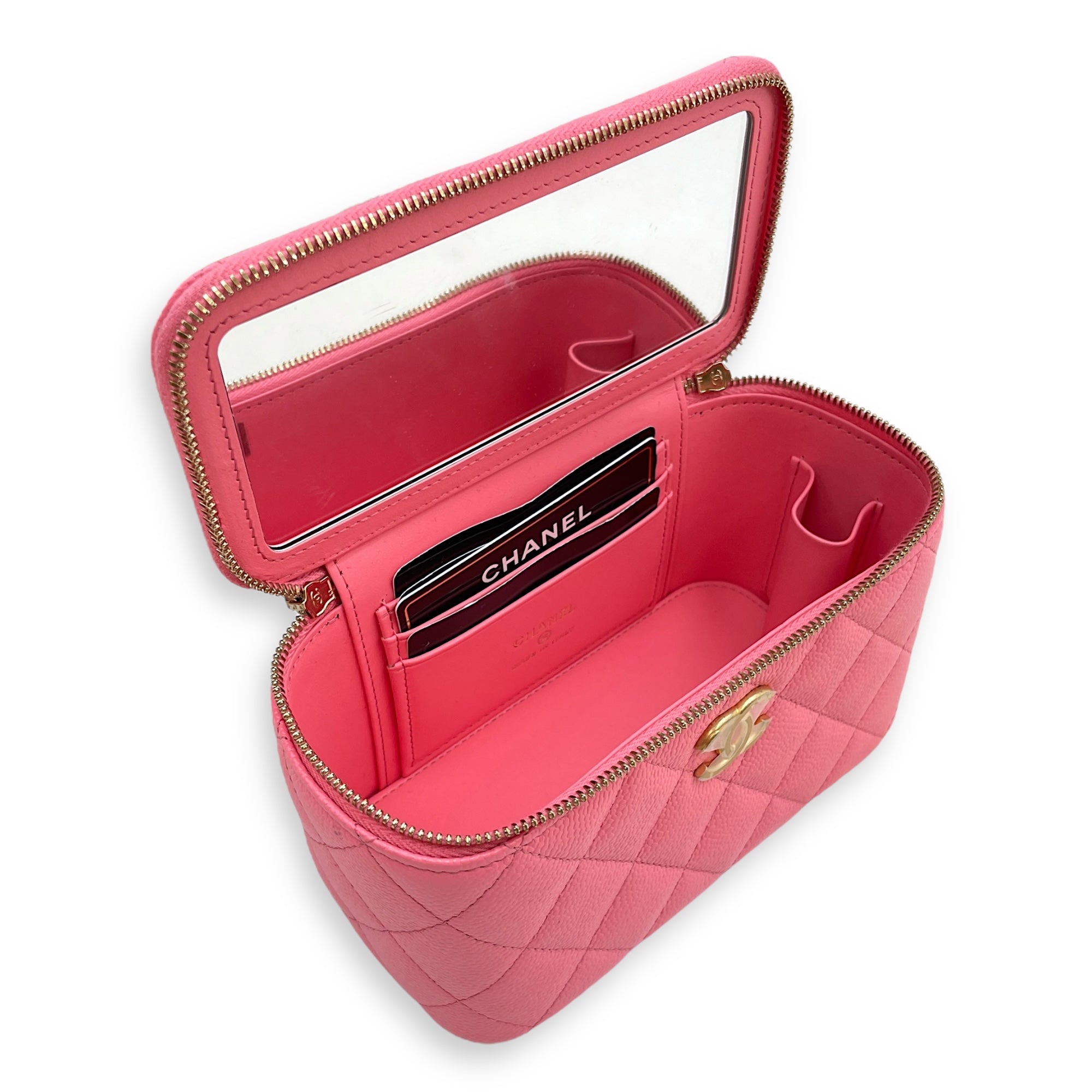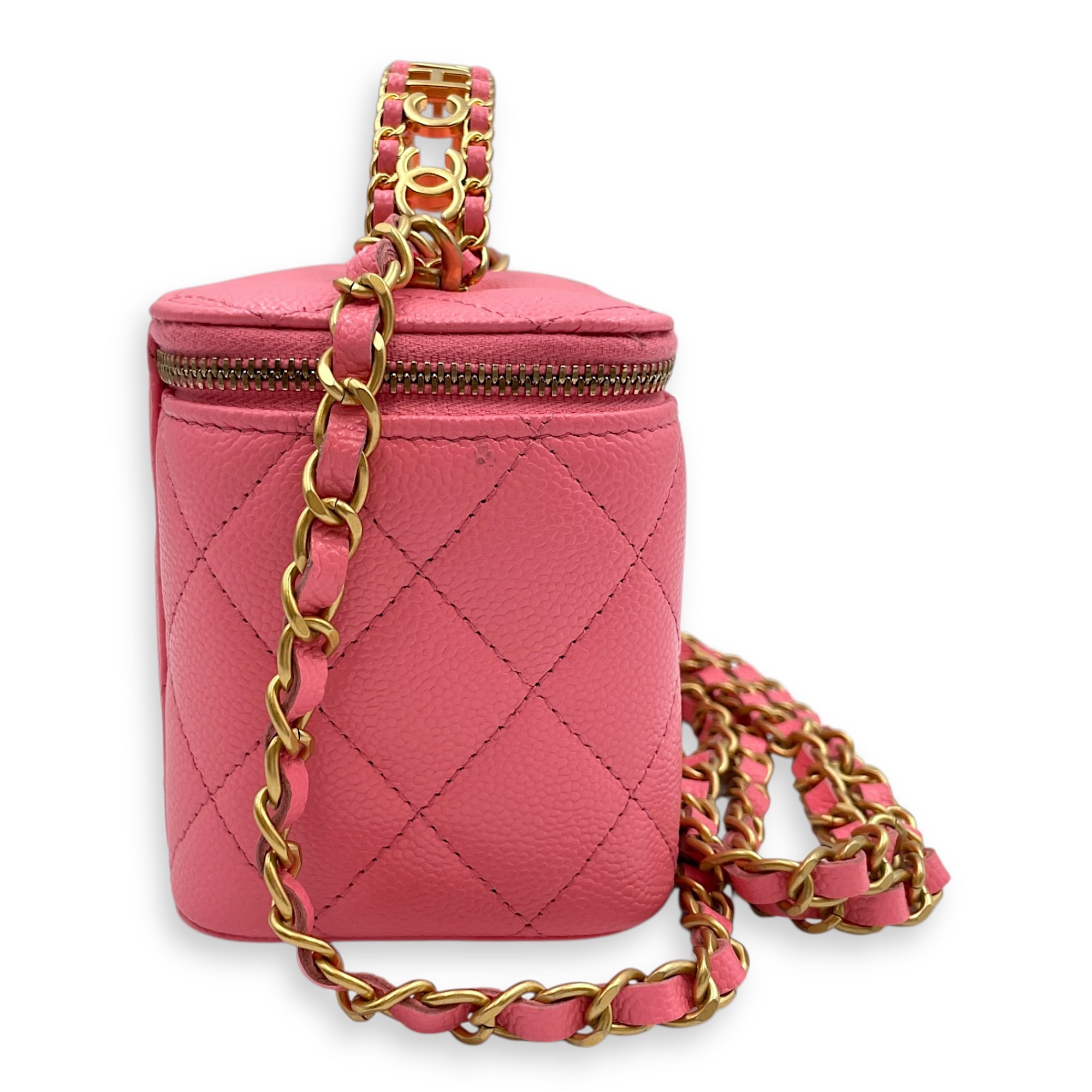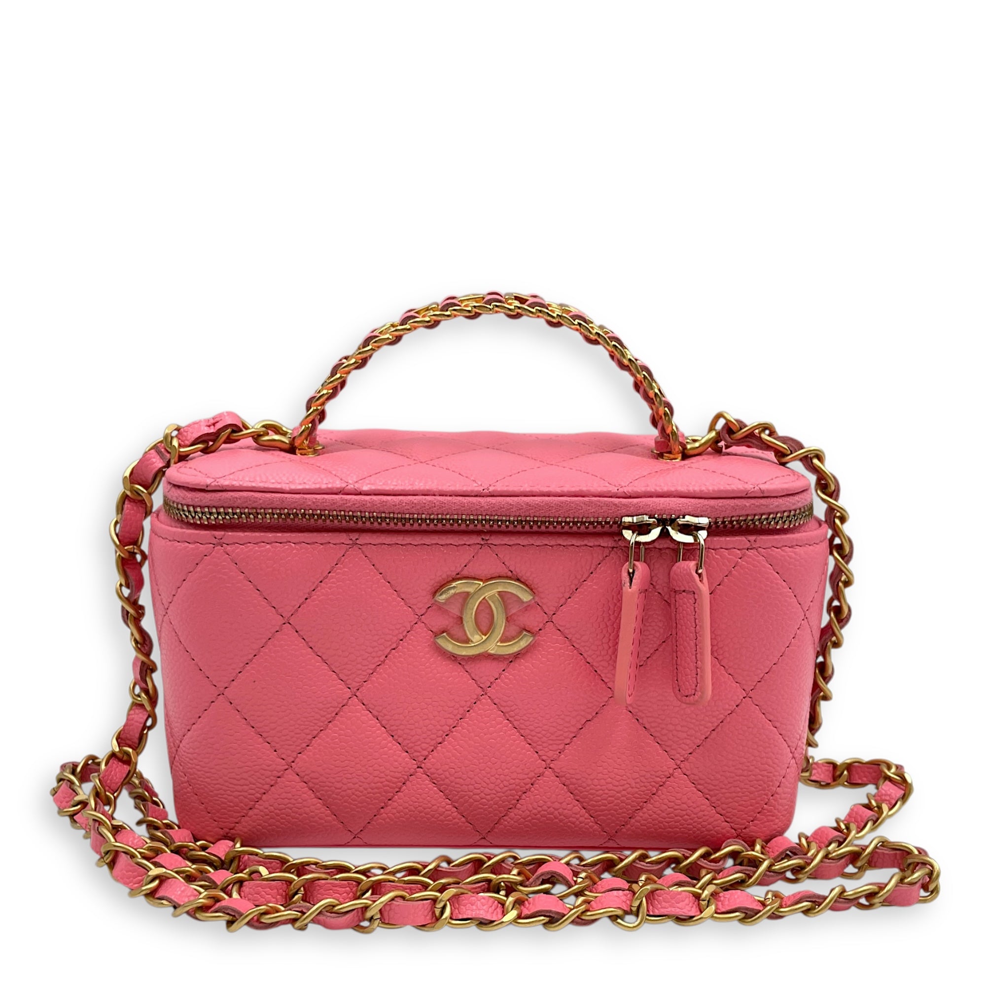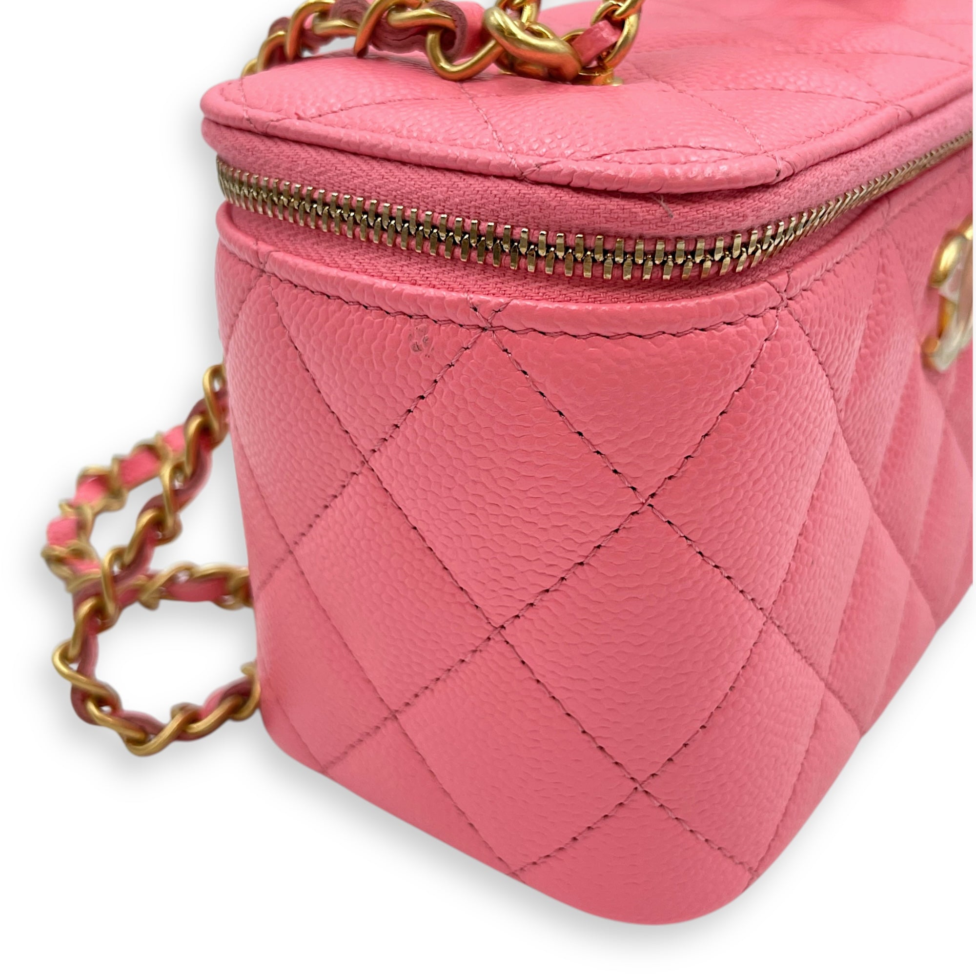 Vanity Rectangular Case Mini Pink Crossbody Bag in Caviar Leather, Gold hardware