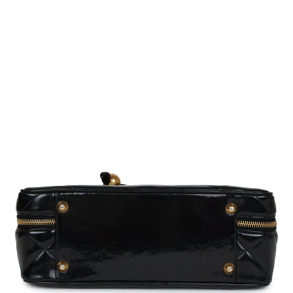 Vintage Chanel Lunchbox Vanity Black Patent Leather Gold Hardware