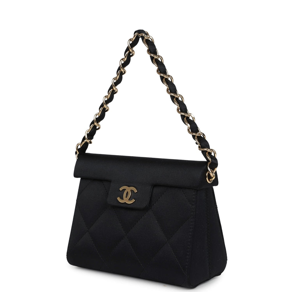 Vintage Chanel Mini Evening Handbag Bag Black Satin Gold Hardware Shop for an authentic vintage Chanel Mini evening handbag in black satin with gold hardware in mint condition at Madison Avenue Couture.