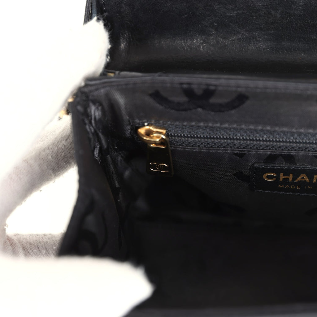 Vintage Chanel Mini Evening Handbag Bag Black Satin Gold Hardware